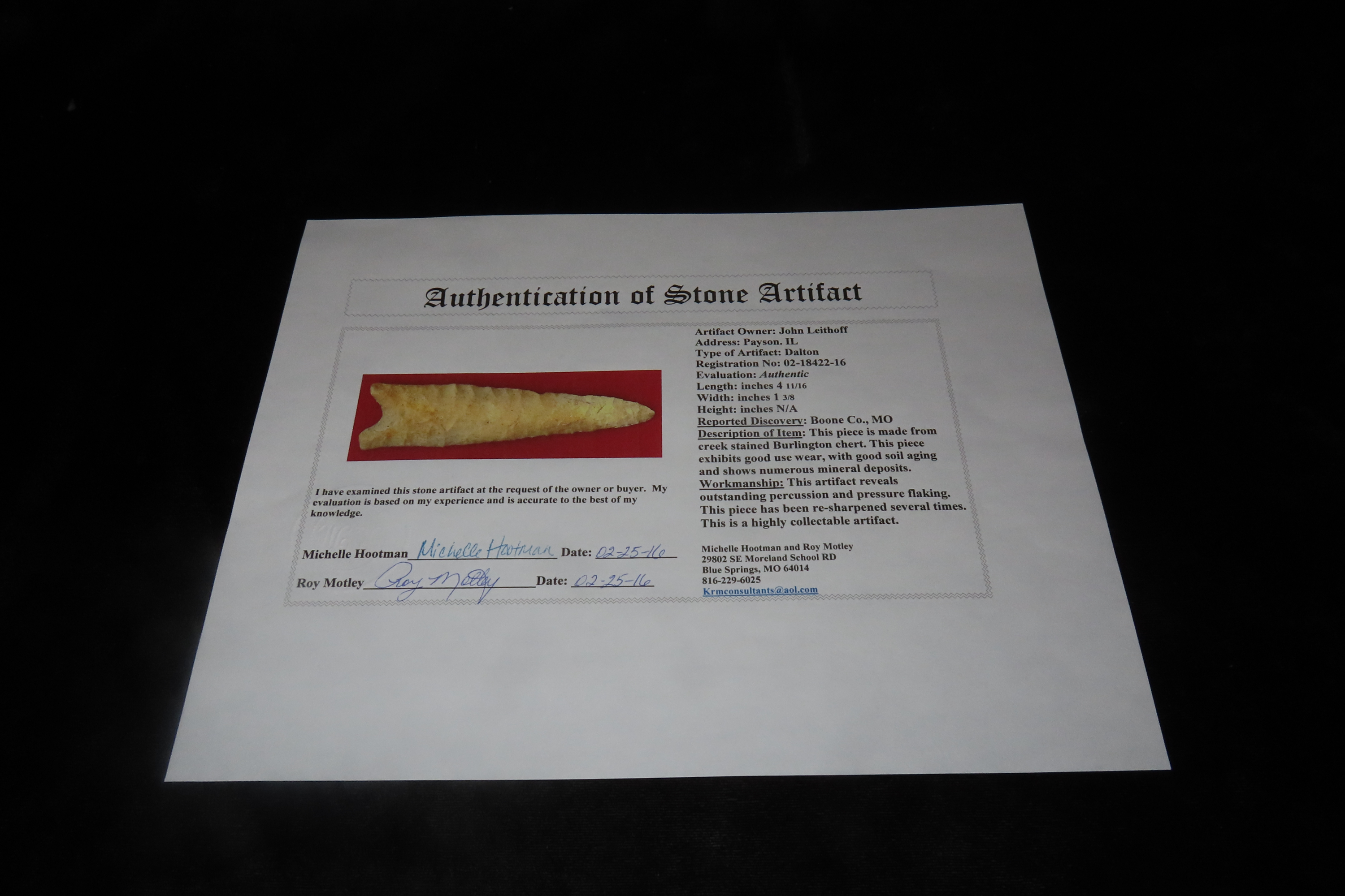4 11/16″ Dalton, Motley COA, found in Boone Co., Missouri