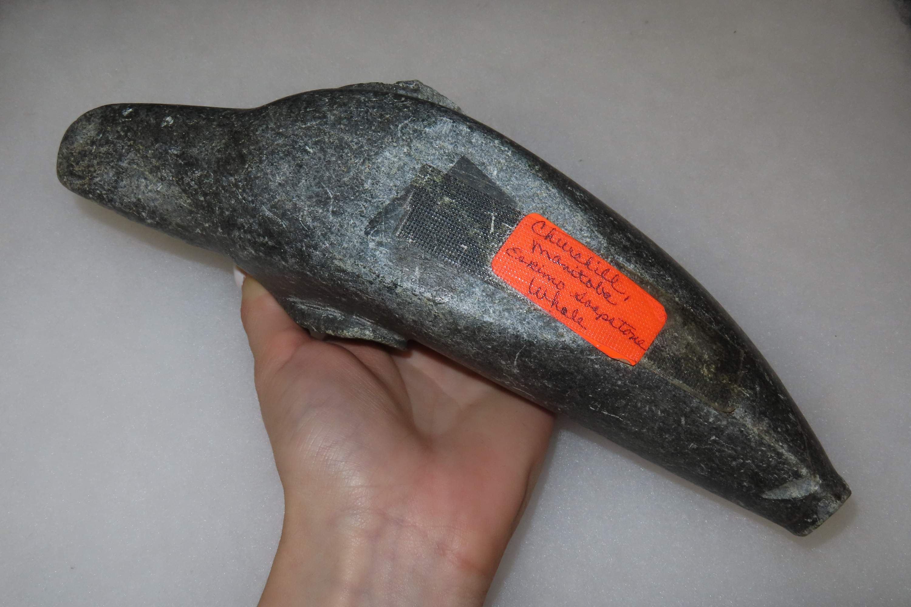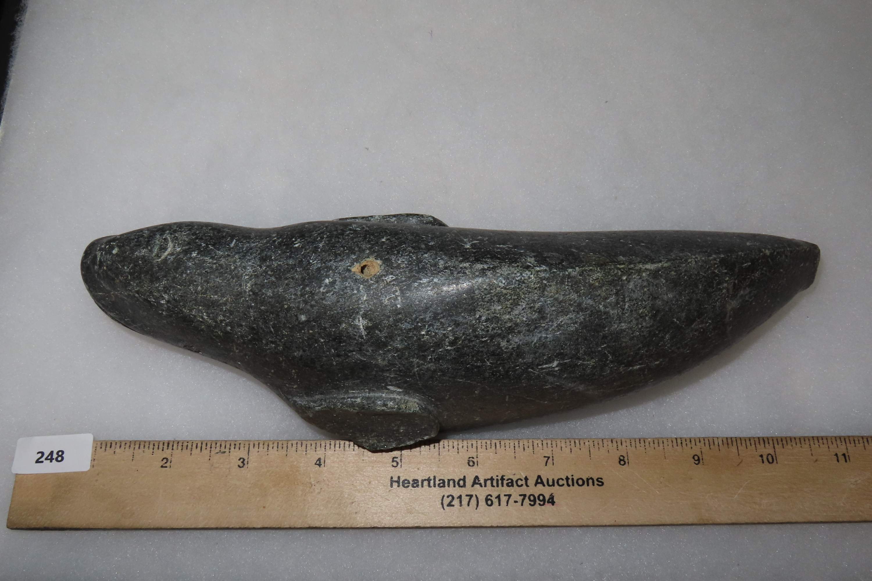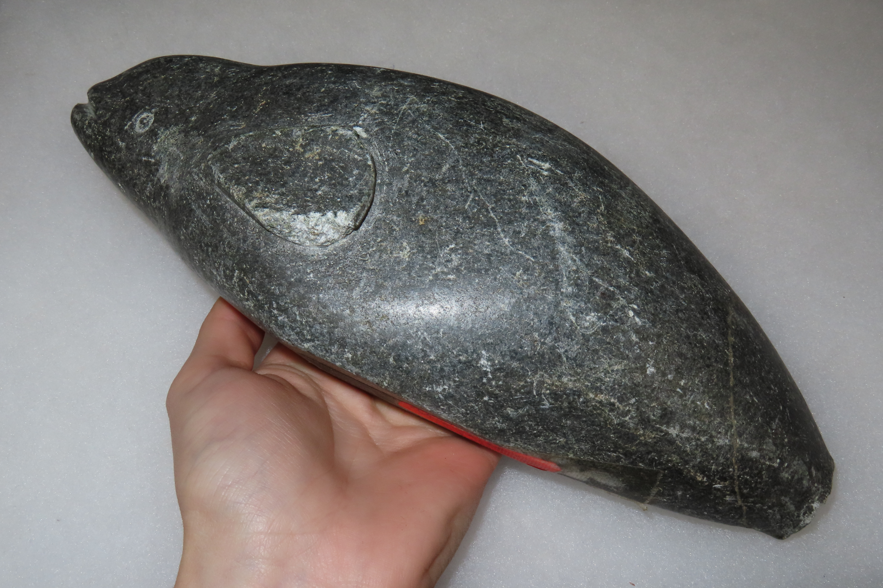9 1/2″ Hand Carved Soapstone Beluga Whale, from Churchill Manitoba, Inuit/Aluet, tail broken off