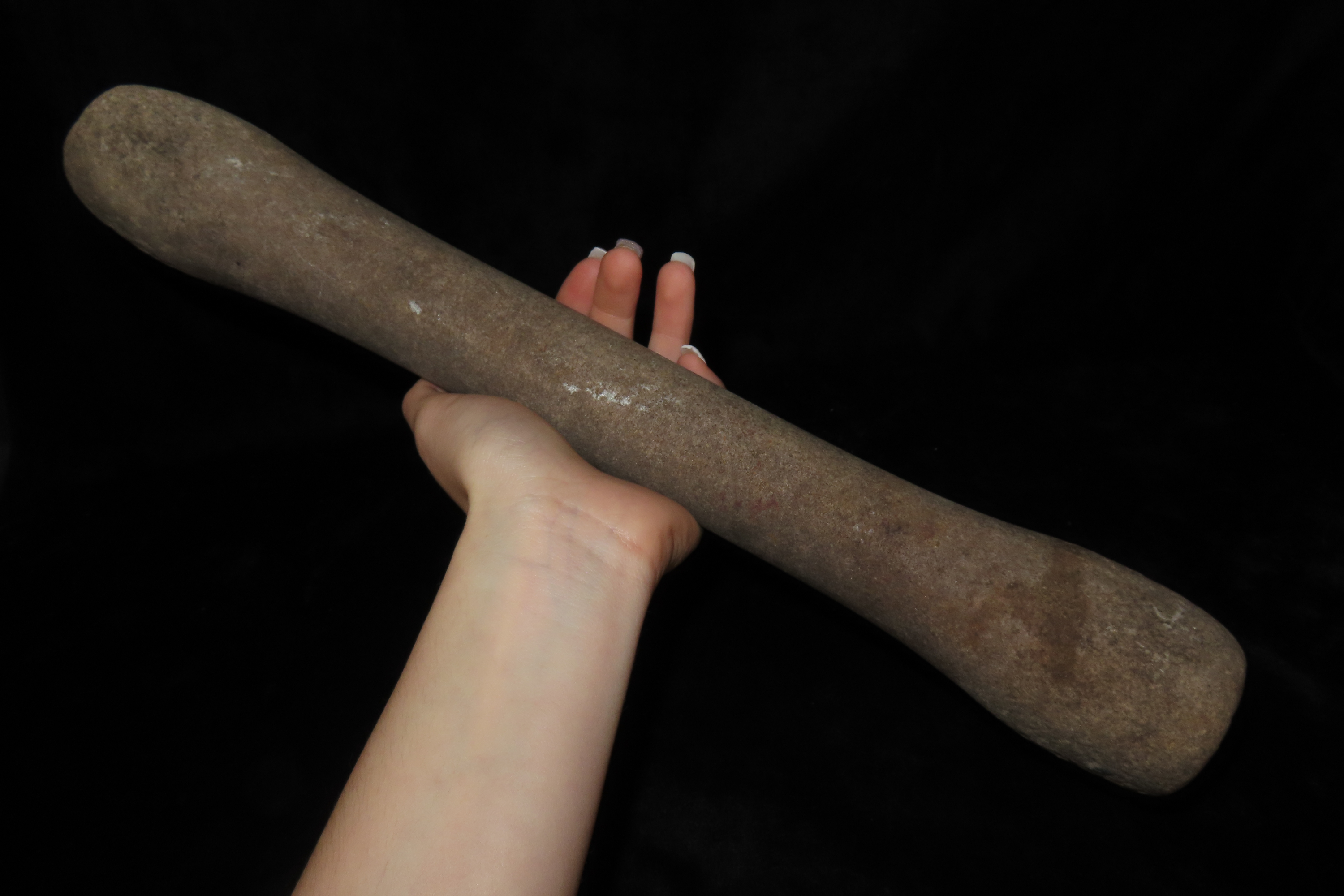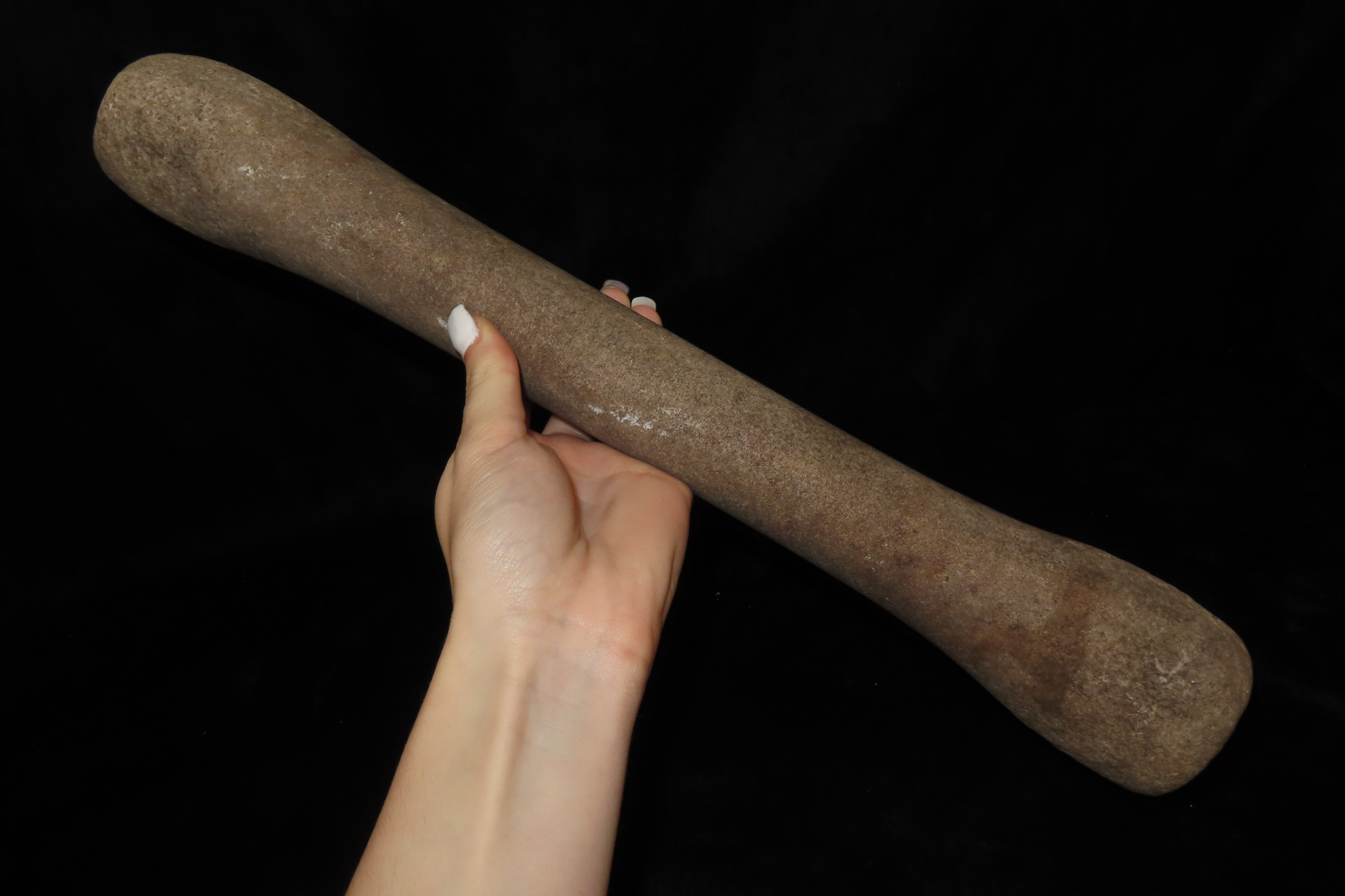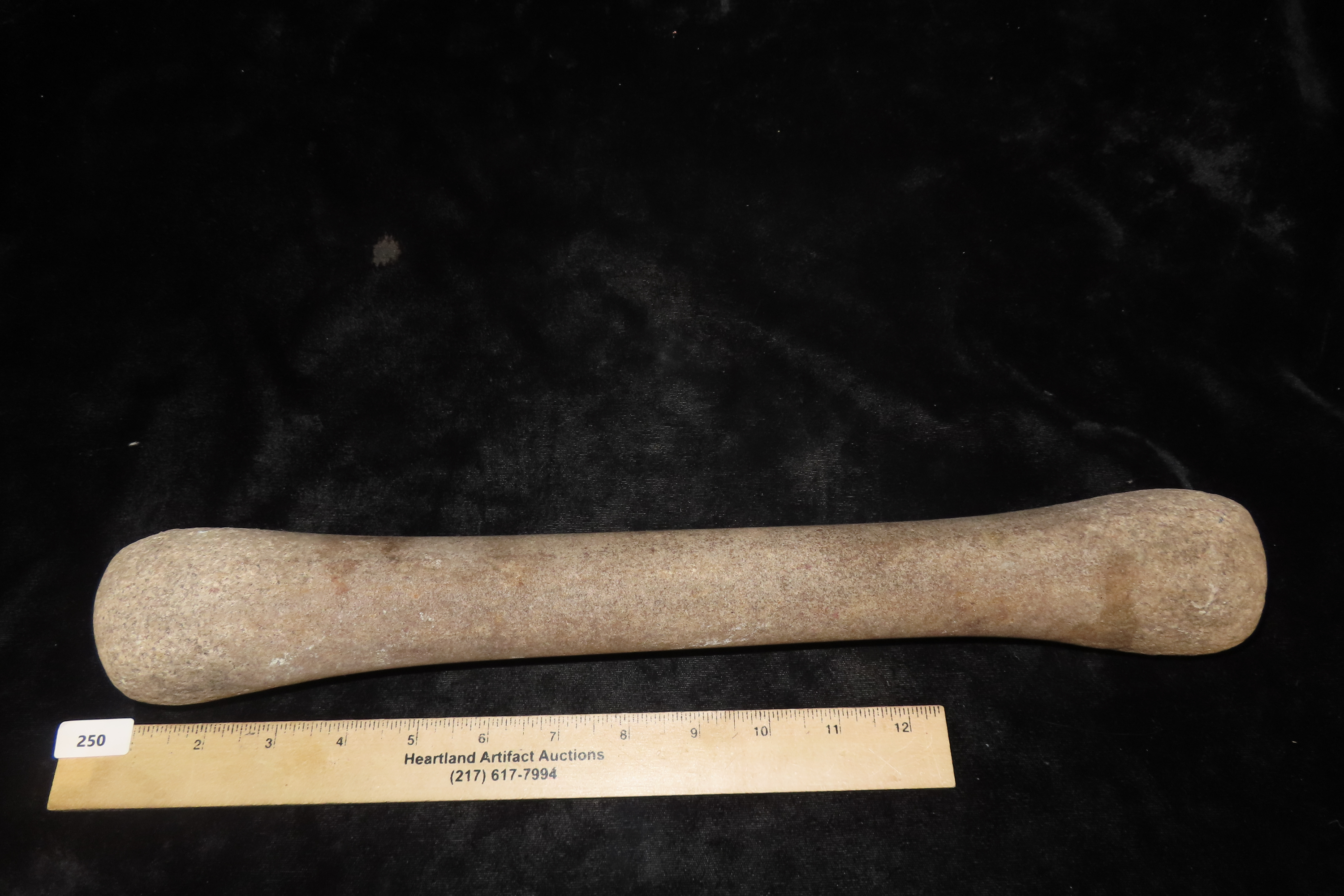 15 7/8″ Hourglass Pestle, Ex Jerry Maloney Collection, Eaton, Ohio. Jerry had a shop in Webb’s Antique Mall in Centerville, Indiana for 20 years and continued collecting and selling for another 15 years.