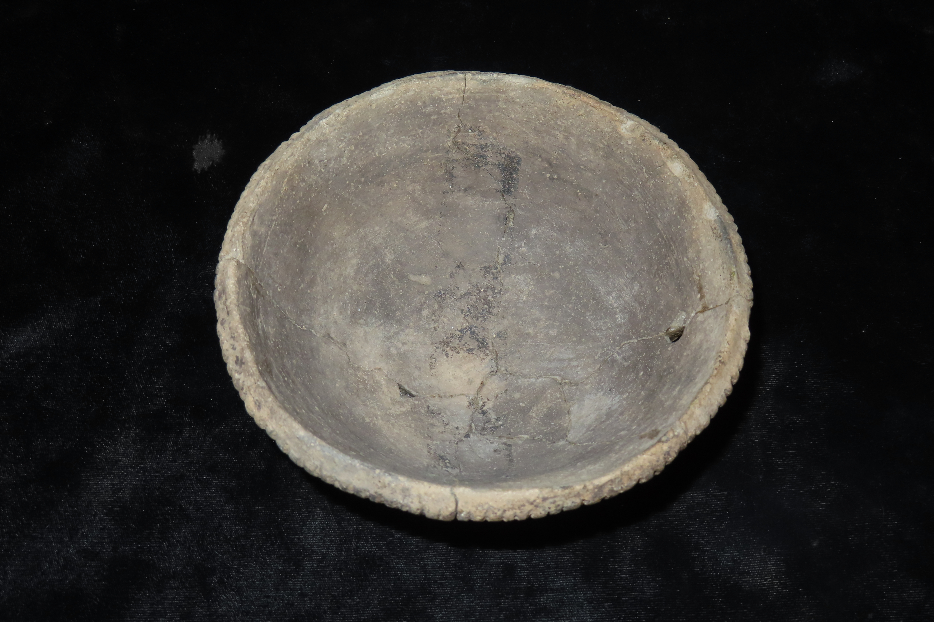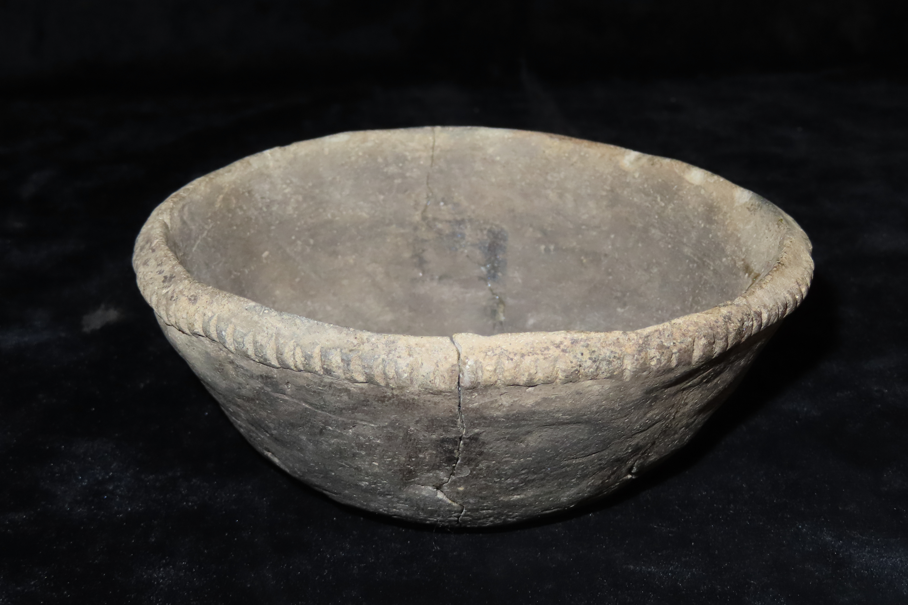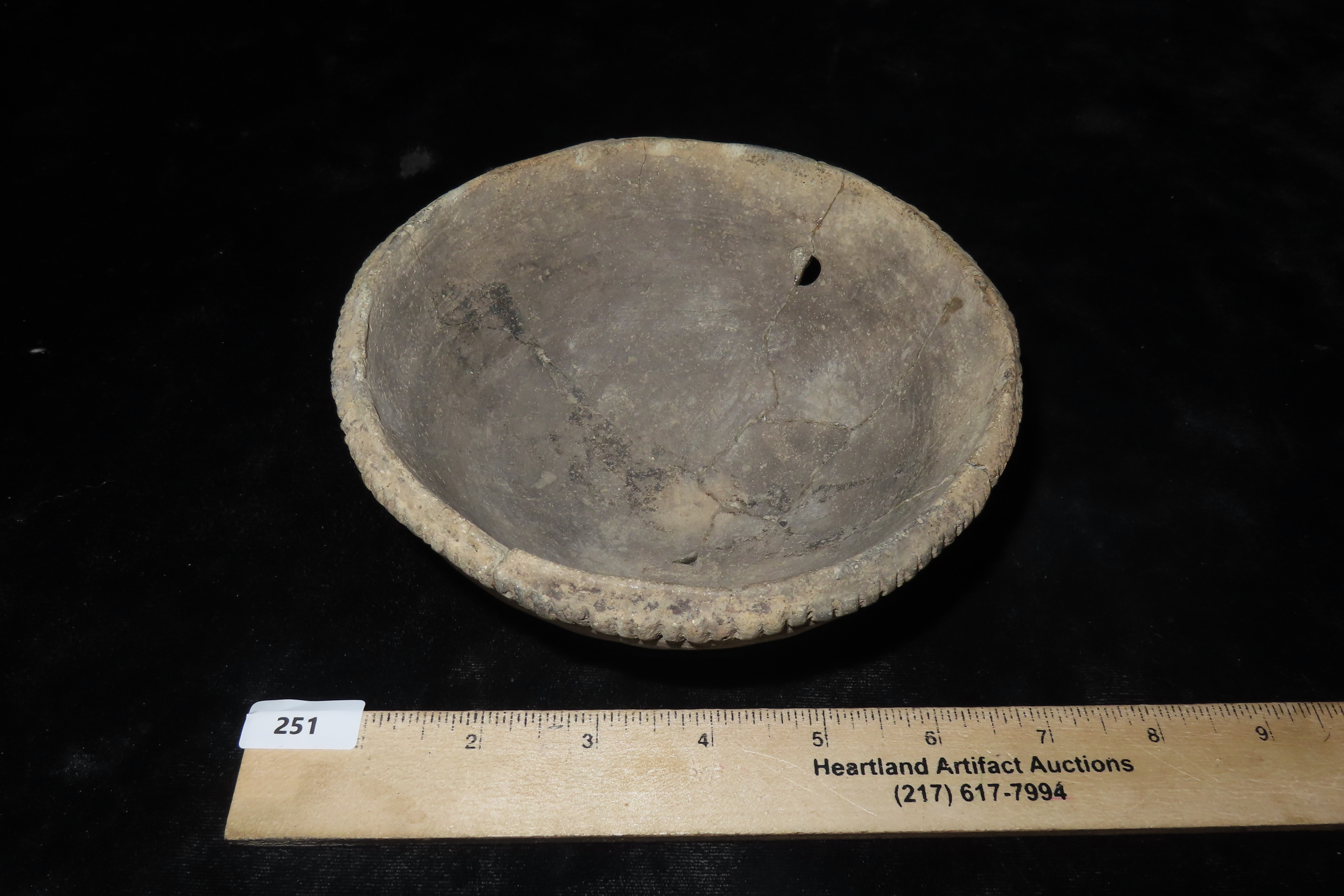 6 3/16″ X 2 1/2″ Mississippian Bowl, retored, Ex Jerry Maloney Collection, Eaton, Ohio. Jerry had a shop in Webb’s Antique Mall in Centerville, Indiana for 20 years and continued collecting and selling for another 15 years.
