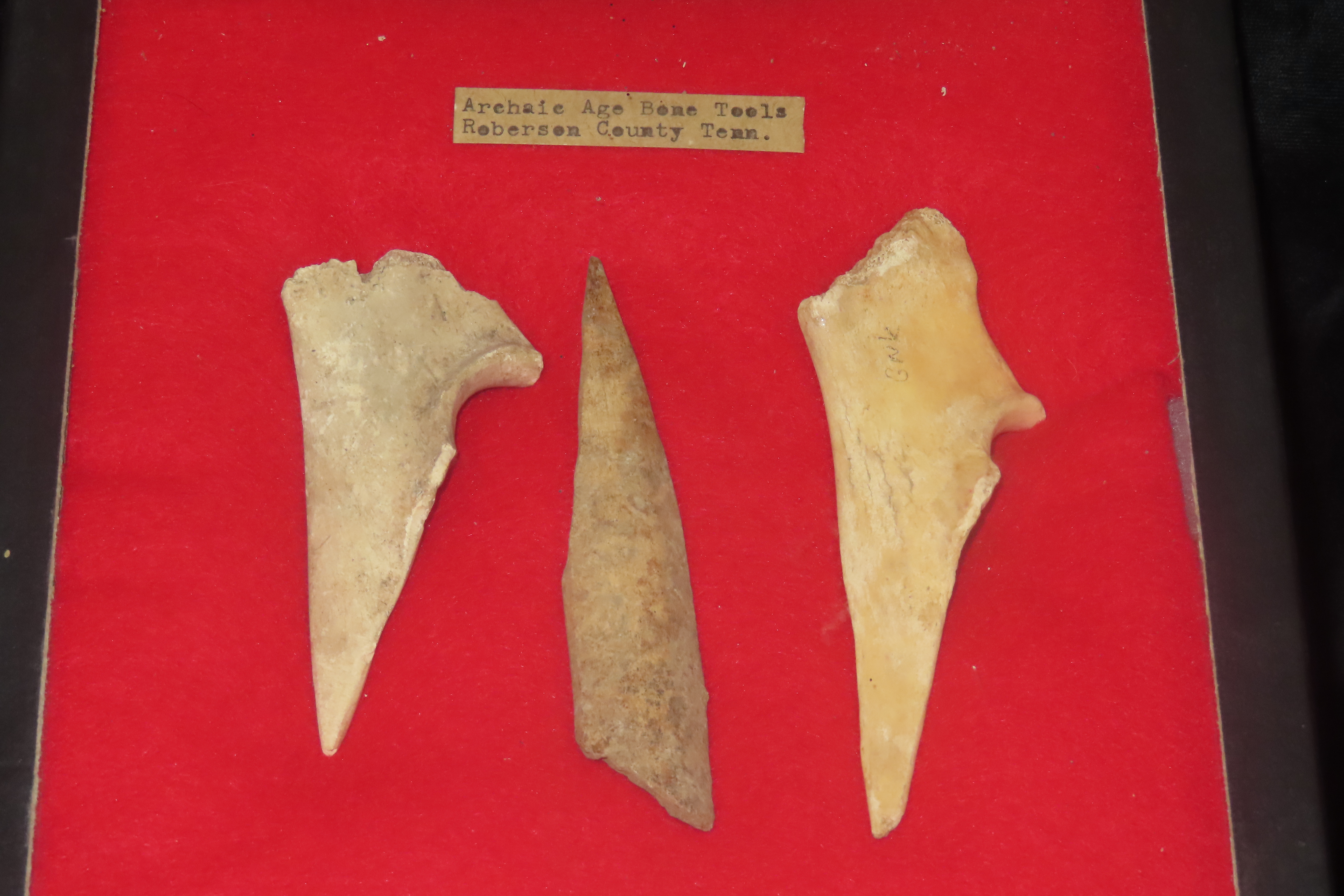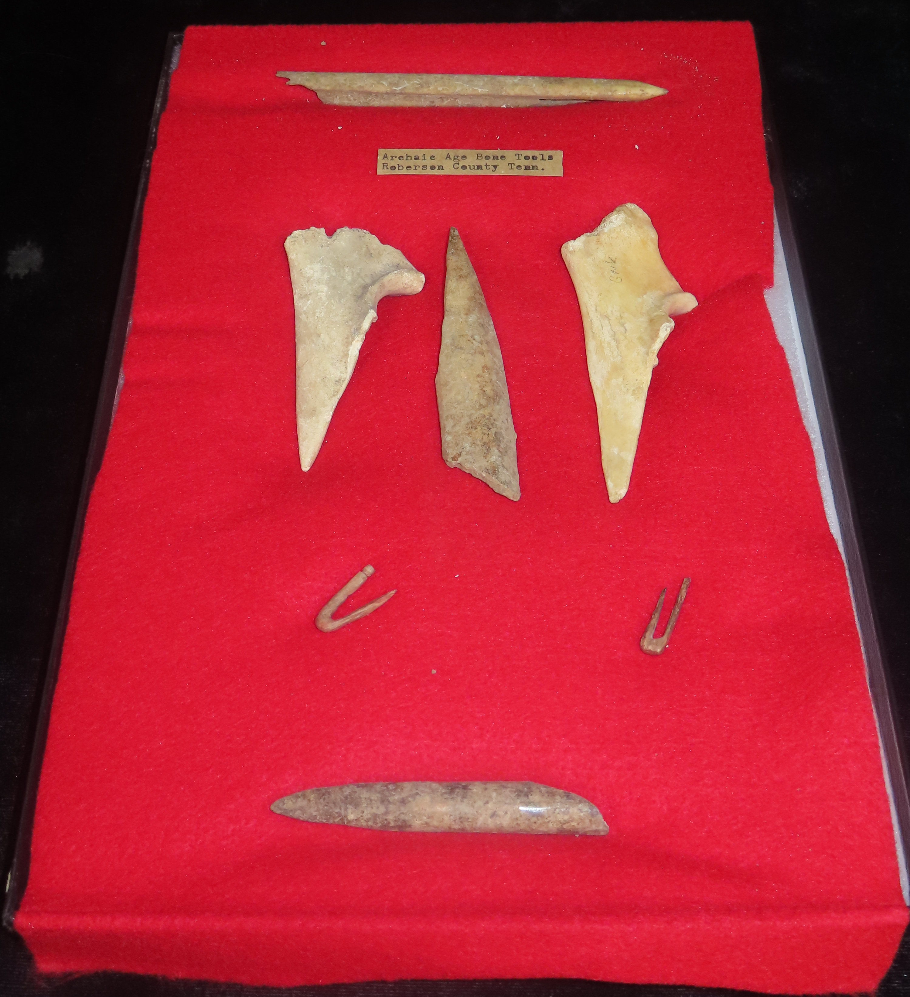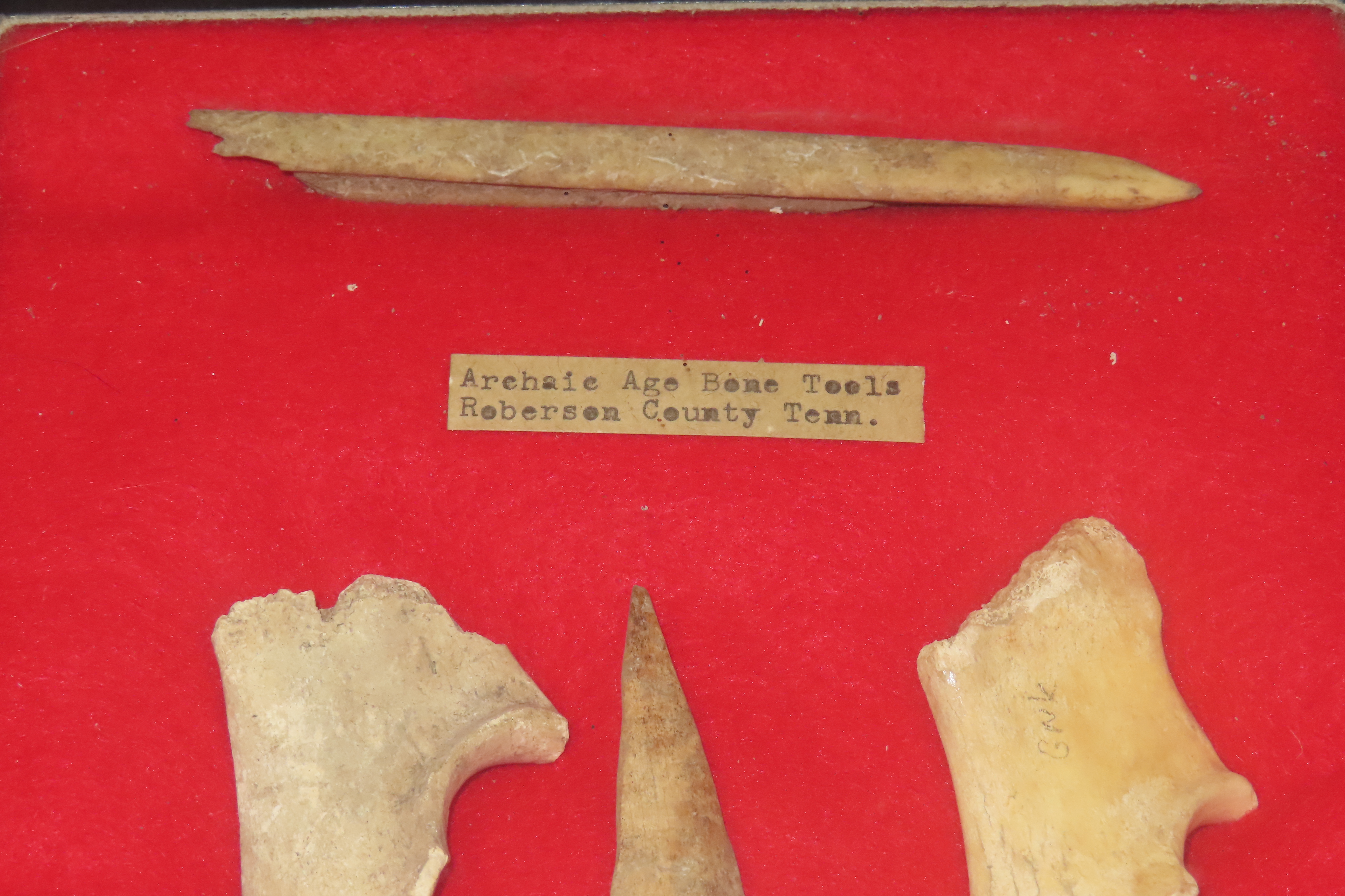 12 3/8″ 9 3/8″ Frame containing Archaic Bone Tools, found in Roberson Co., Tennessee, Ex Jerry Maloney Collection, Eaton, Ohio. Jerry had a shop in Webb’s Antique Mall in Centerville, Indiana for 20 years and continued collecting and selling for another 15 years.