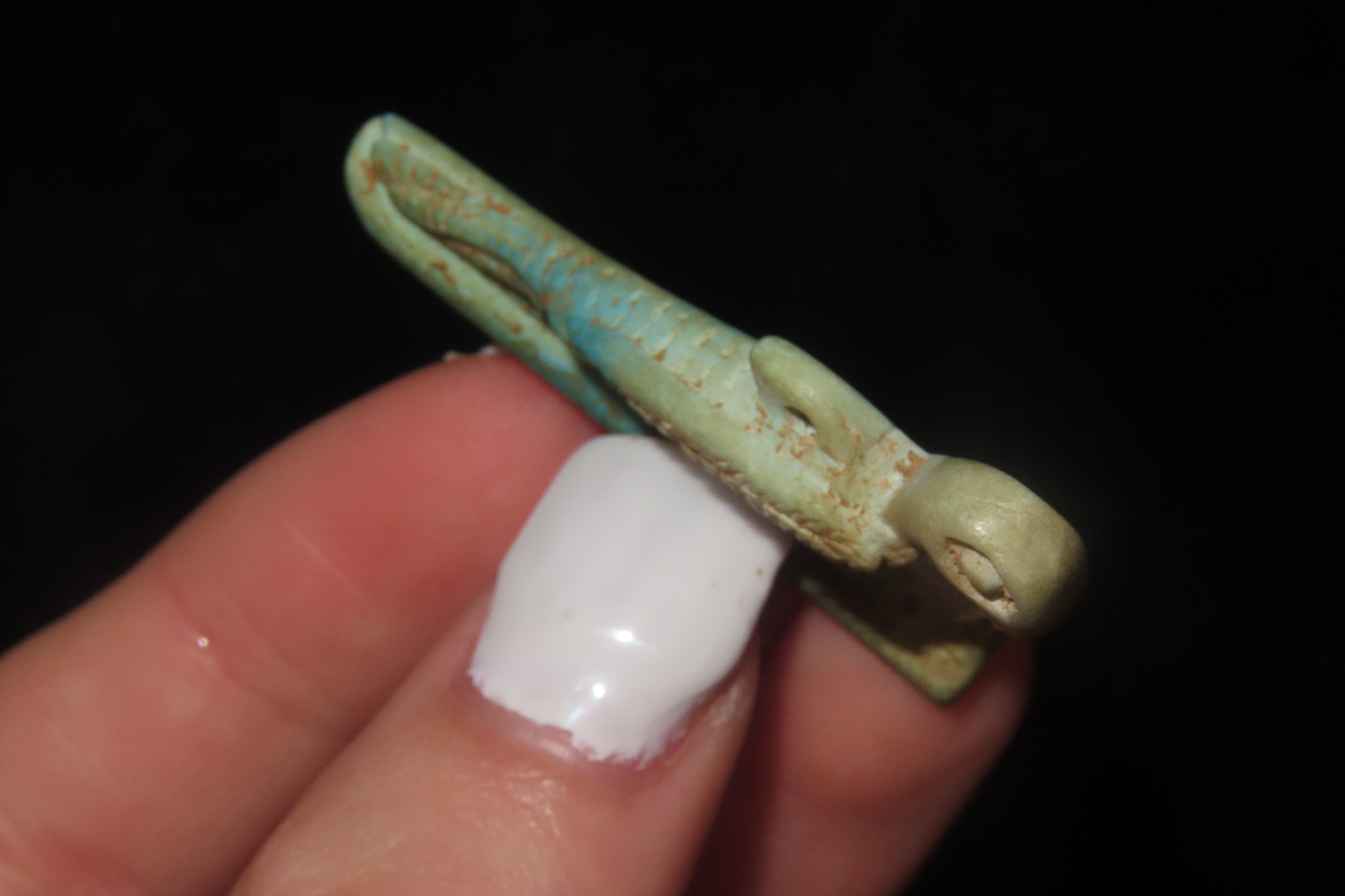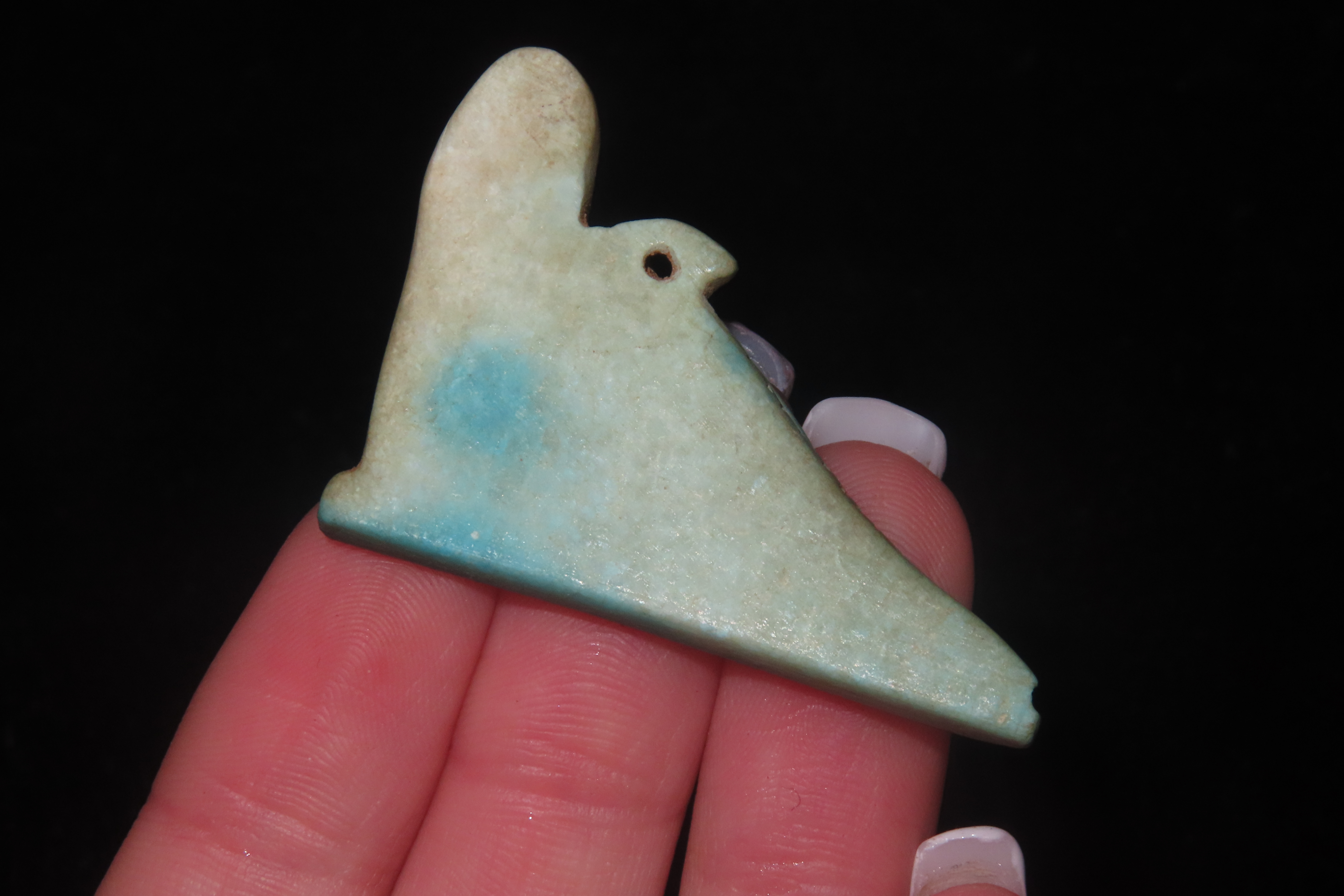 1 5/8″ x 1/8″ Egyptian Pendant, Pelican Amulet, Late Kingdom