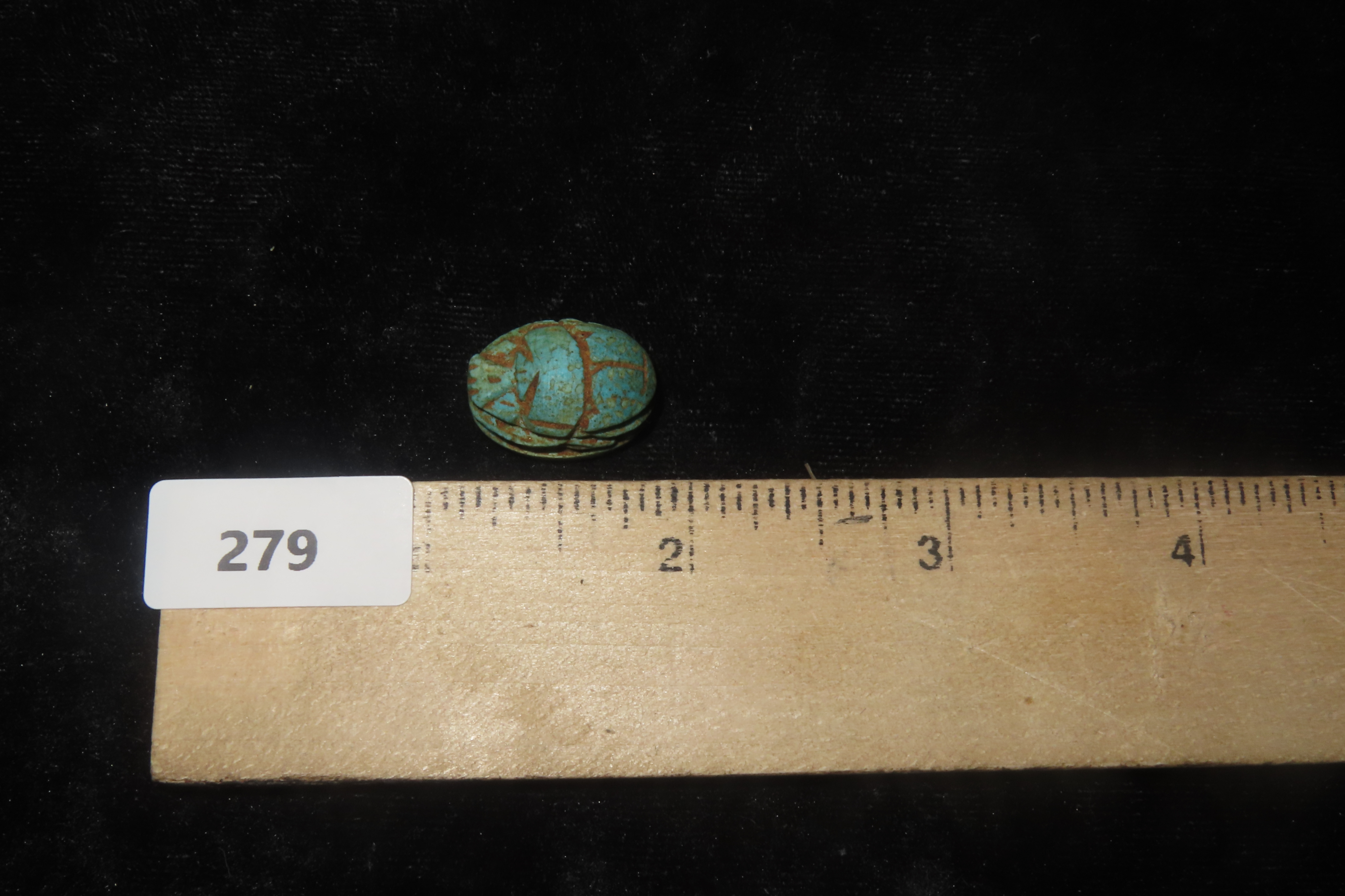 7/8" x 5/8" Antique Egyptian Green Scarab with an Inscription on the bottom, Middle to Late Kingdom