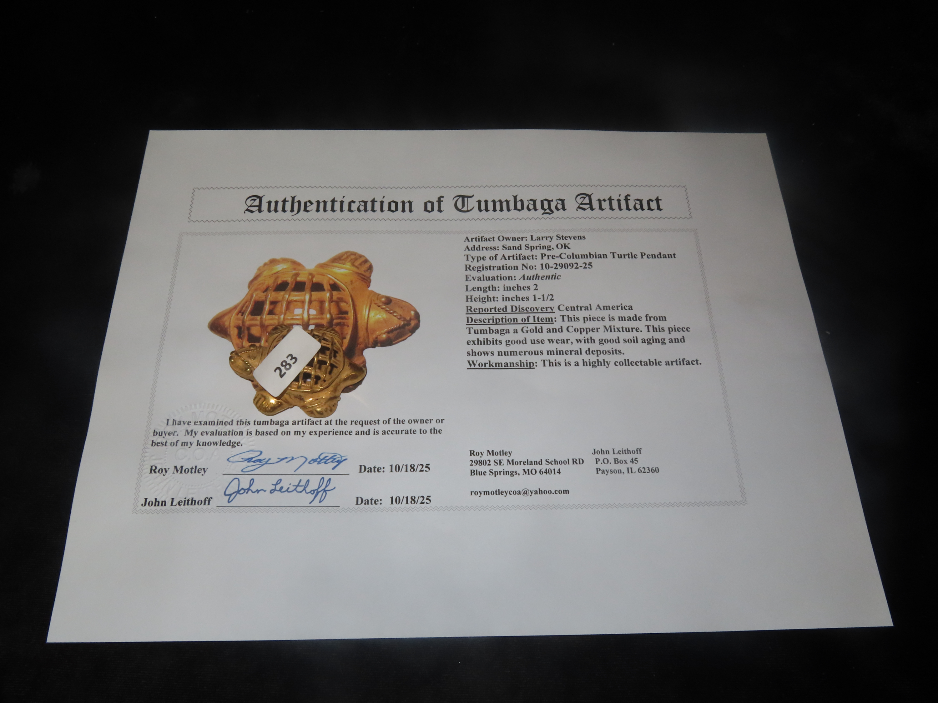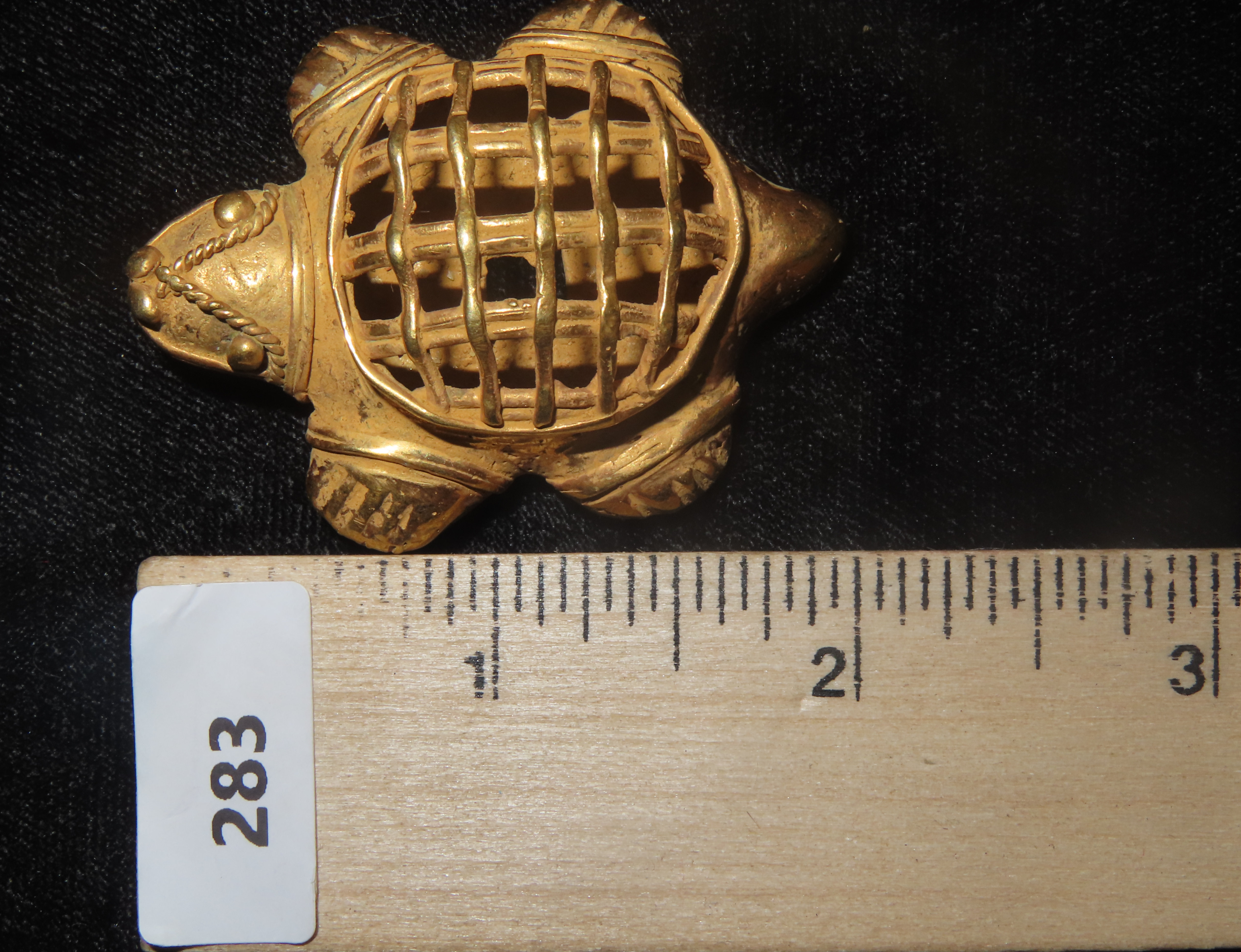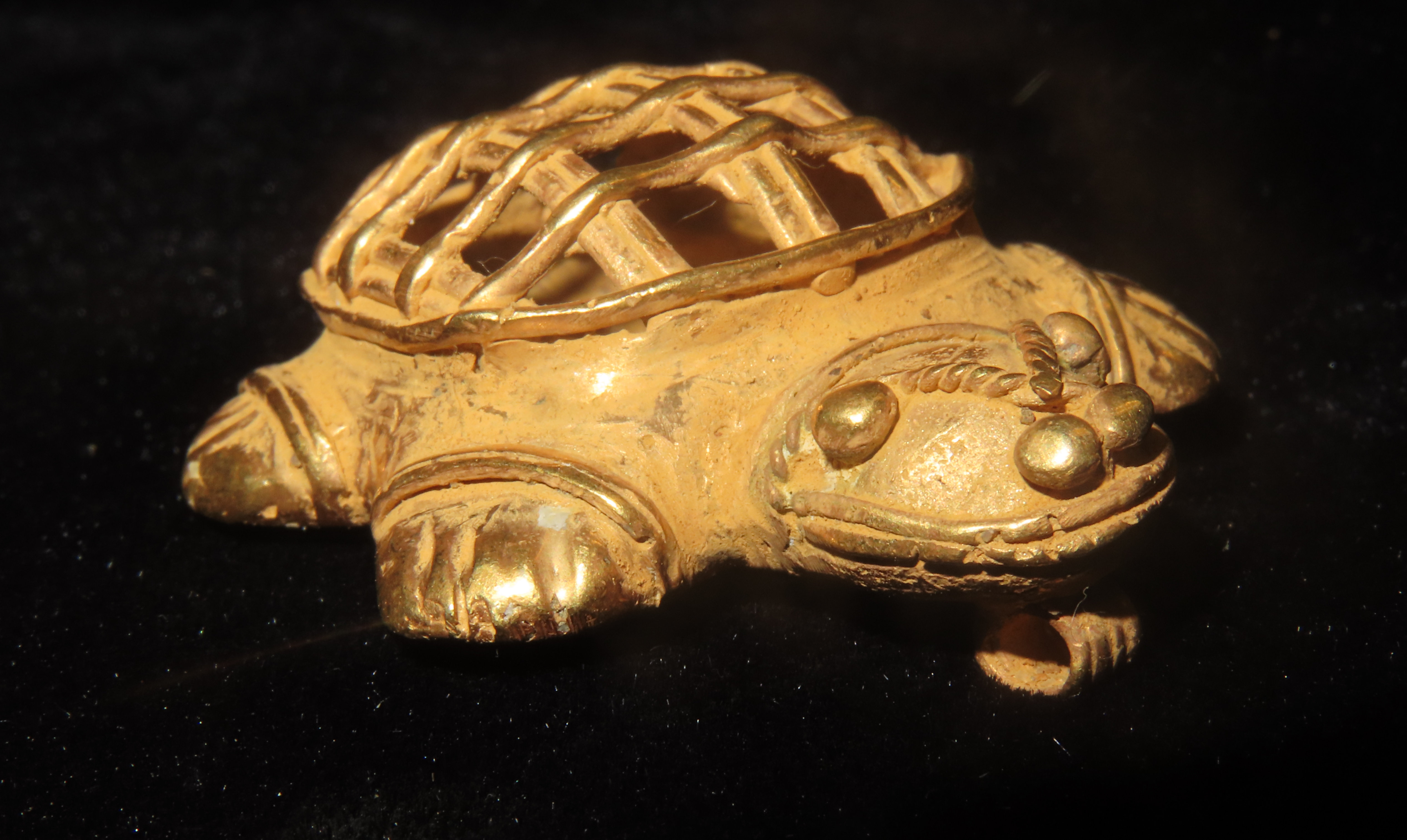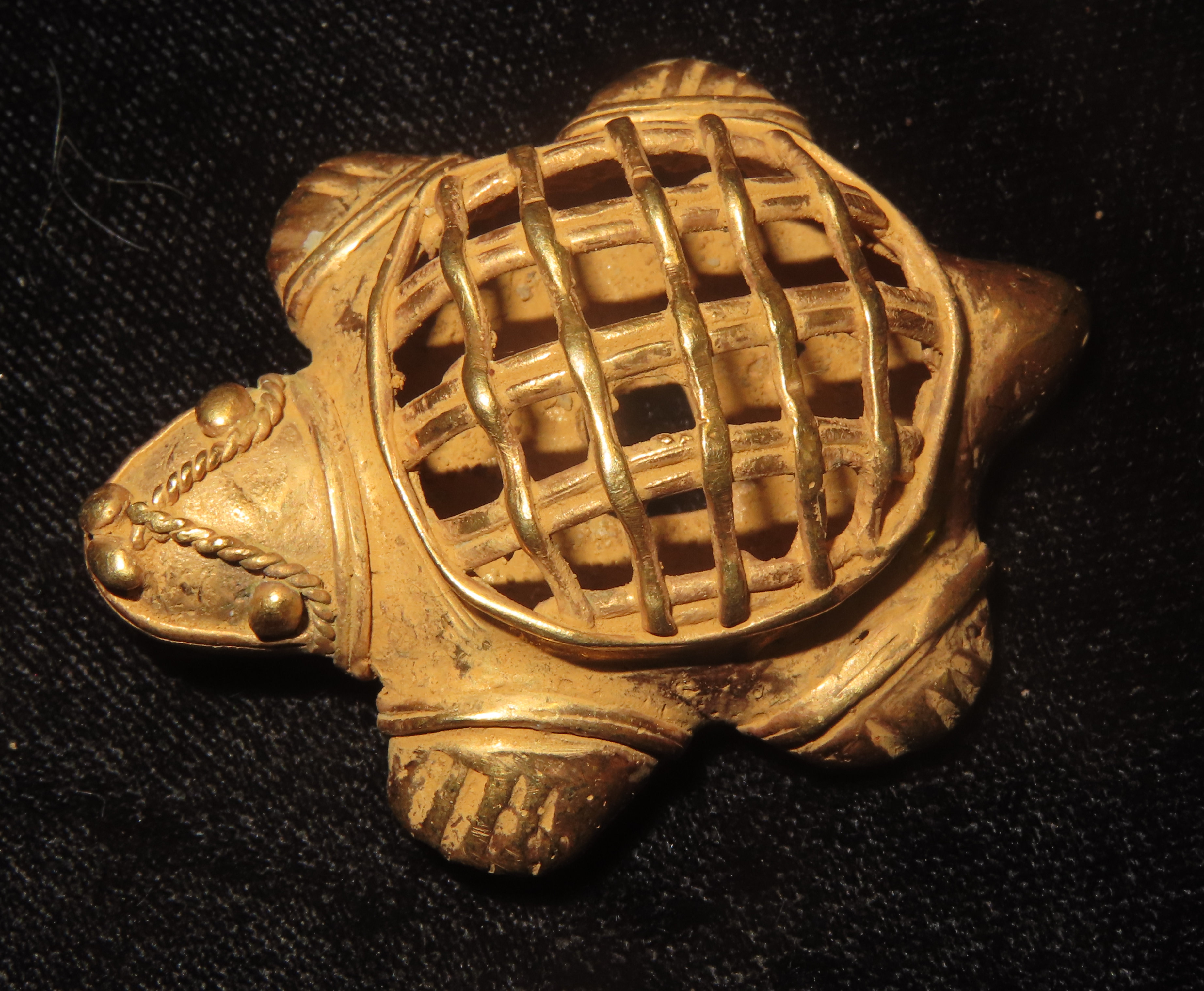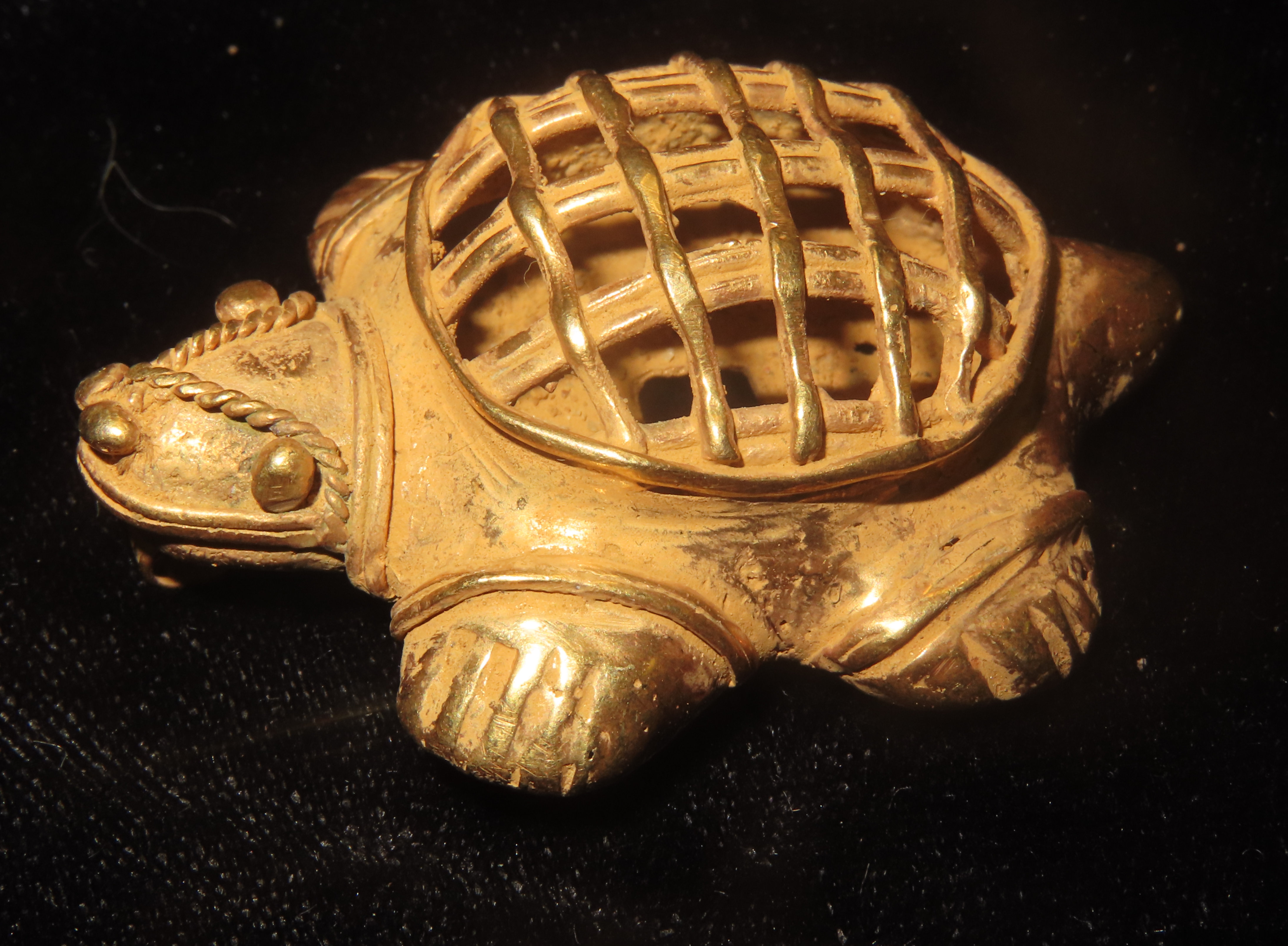 2″ x 1 1/2″ Pre Columbian Tumbaga Tutle Pendant, Central America, Exact Gold Content Unknown