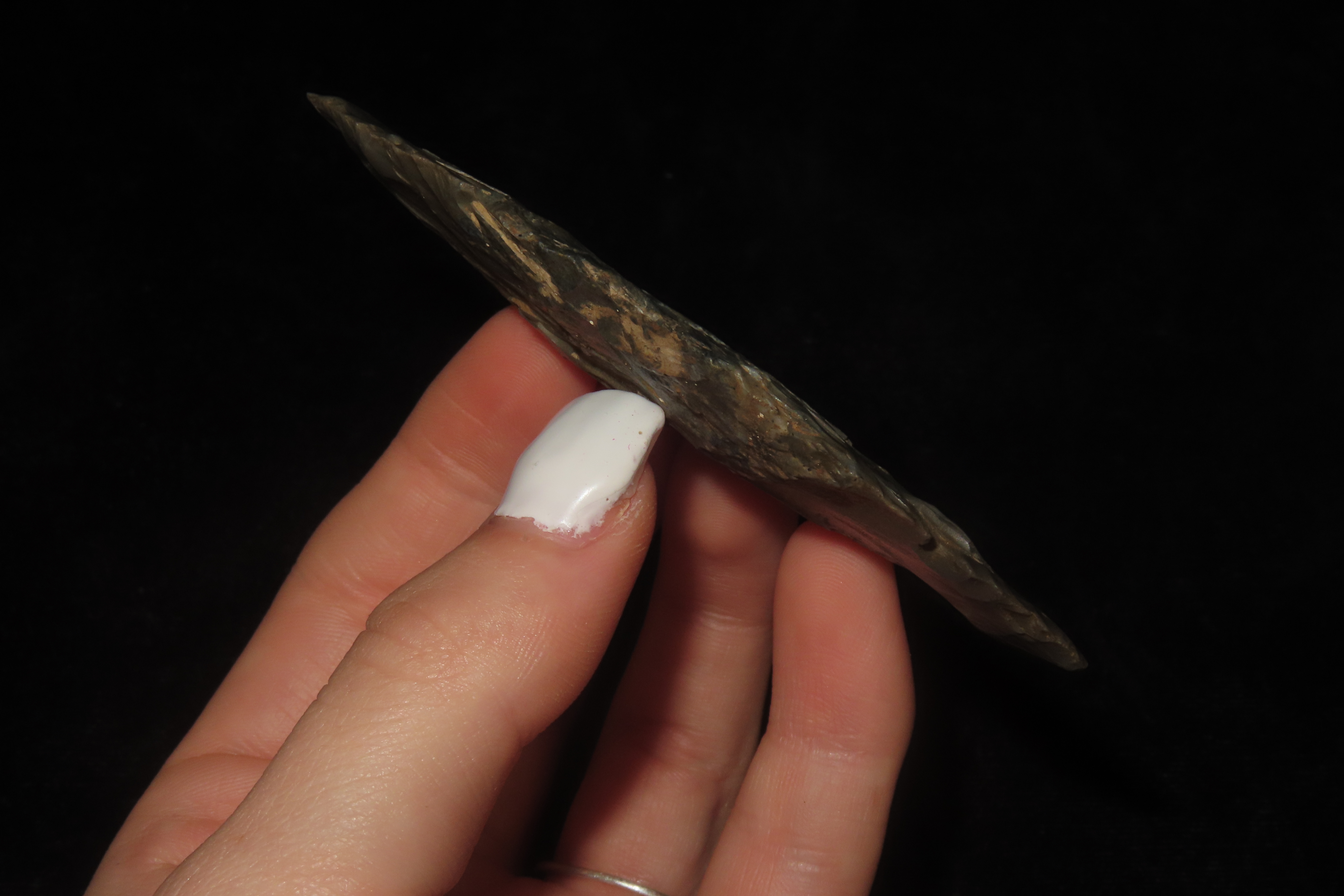 3 1/2" x 1 5/8" Turkey Tail Point, Found in Indiana, Ex Smith Collection