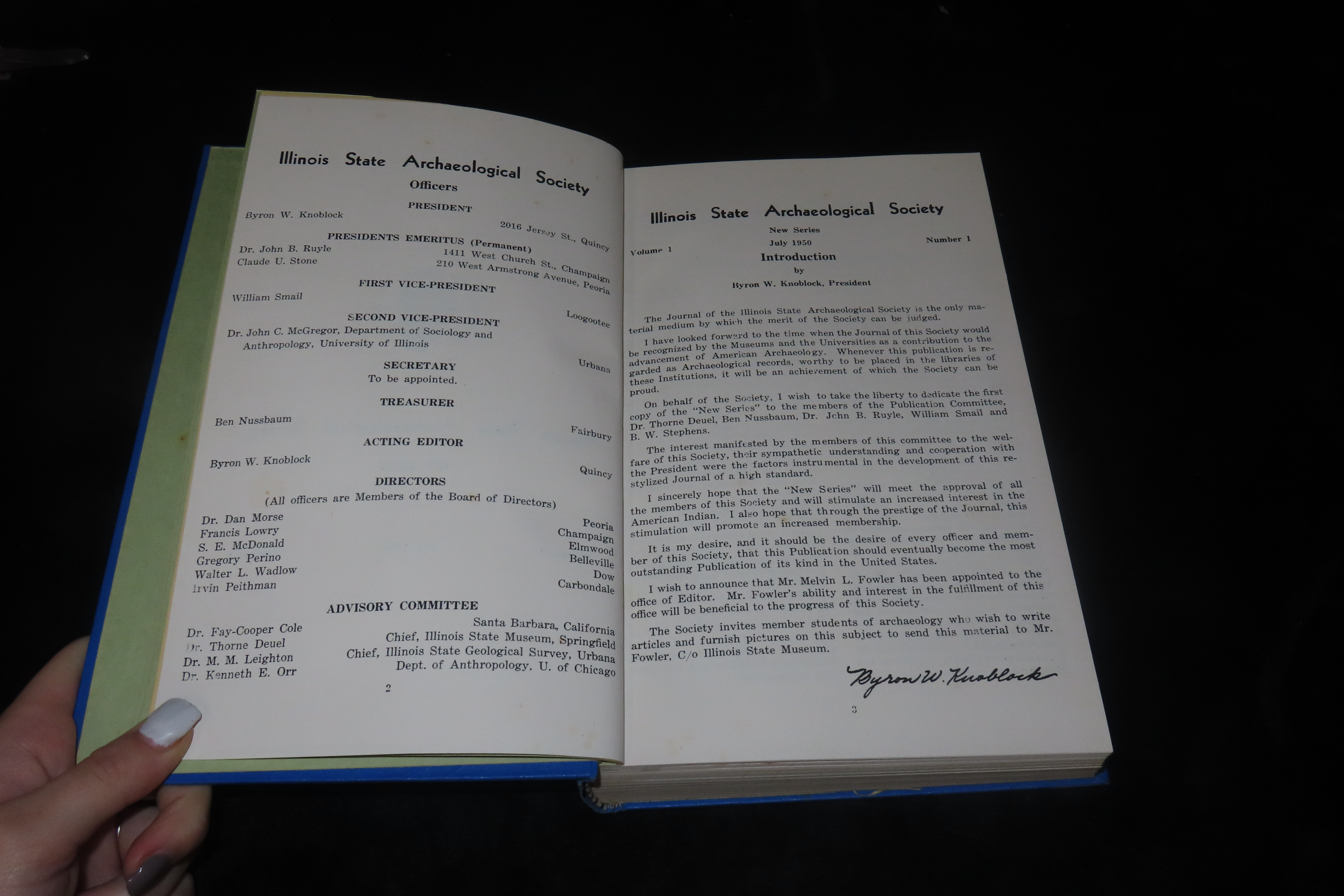 Book Containing Illinois State Archaeological Journal’s Bound Together Featuring Publications from July 1950 – January 1954