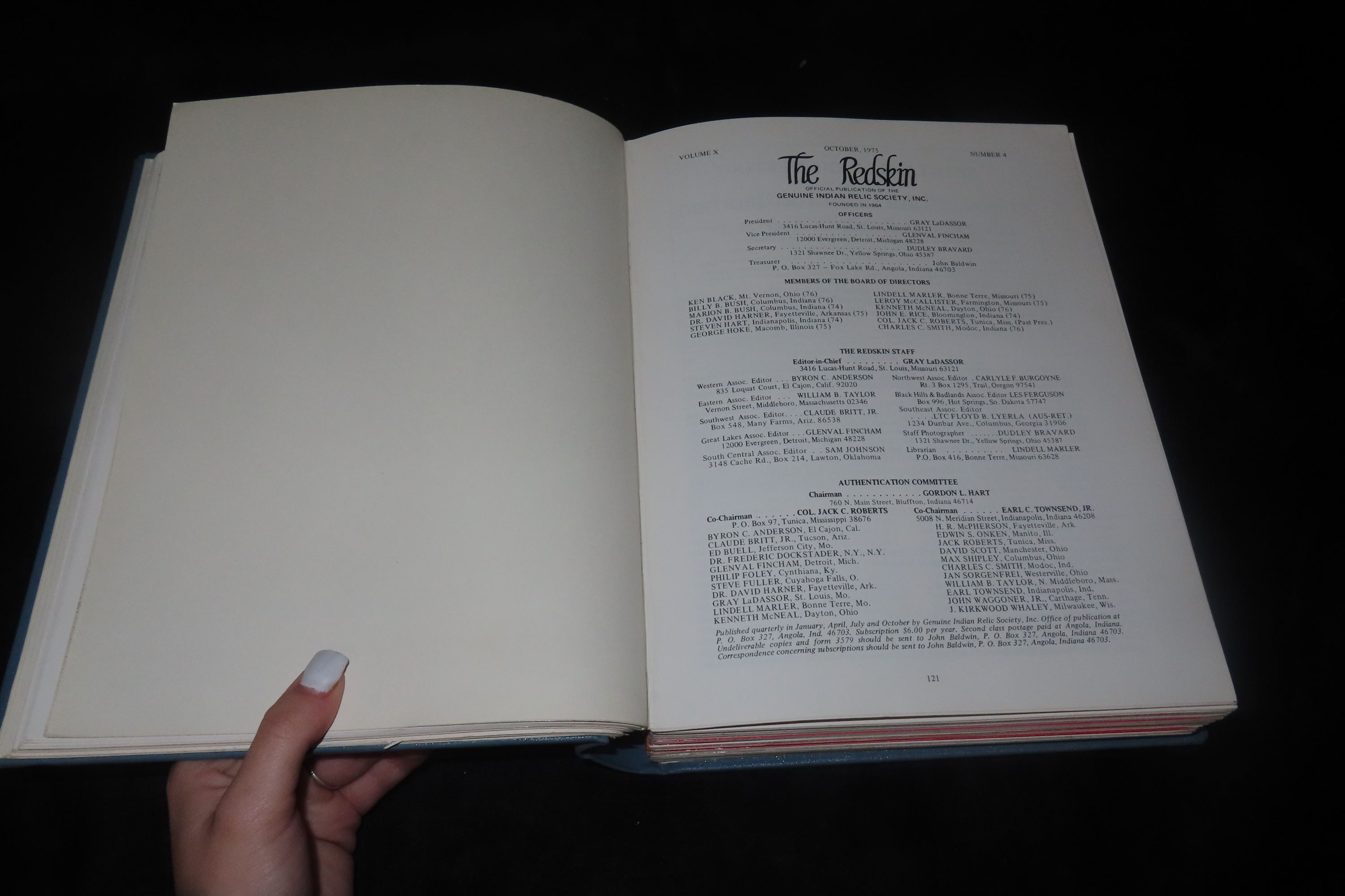 Book Containing Multiple Publications of The Red Skin by The Genuine Indian Relic Society, Inc., Founded in 1964, Contains Volume 10 – 14 of the Years 1975 – 1979