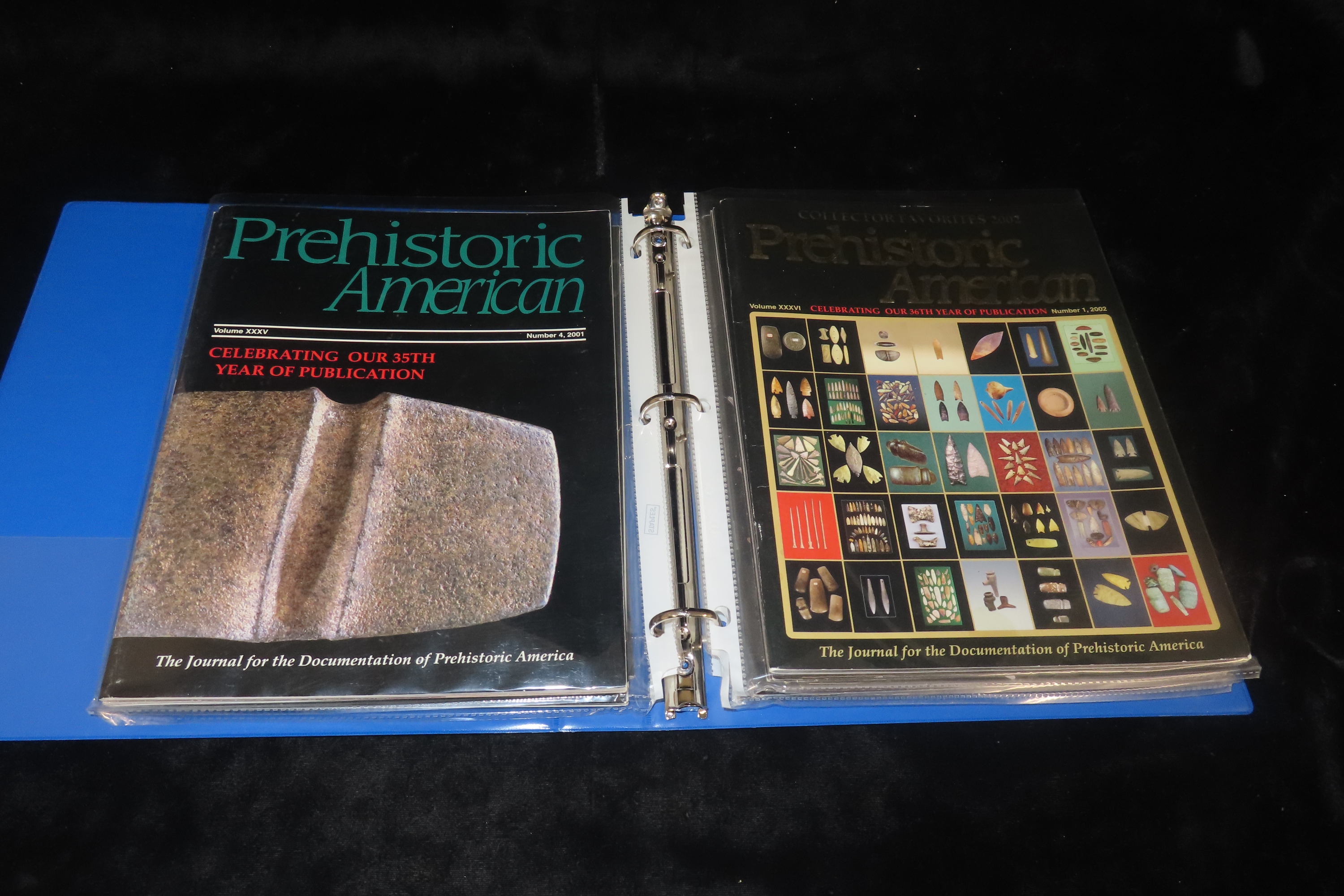 Binder of Prehistoric American 2001 – 2003 by The Genuine Indian Relic Society, Inc., Founded in 1964, Includes 10 Publications
