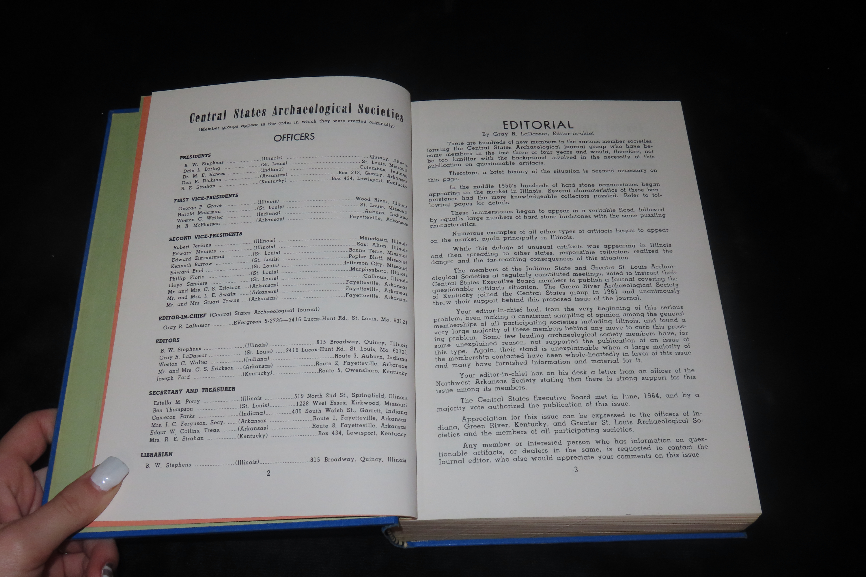 Book Containing Multiple Publications of the Central States Archaeological Journal by the Greater St. Louis, Indiana, Illinois State, Northwest Arkansas, Green River (Kentucky) Archaeological Societies, Volume 12 – 14 of the Years 1965 – 1967