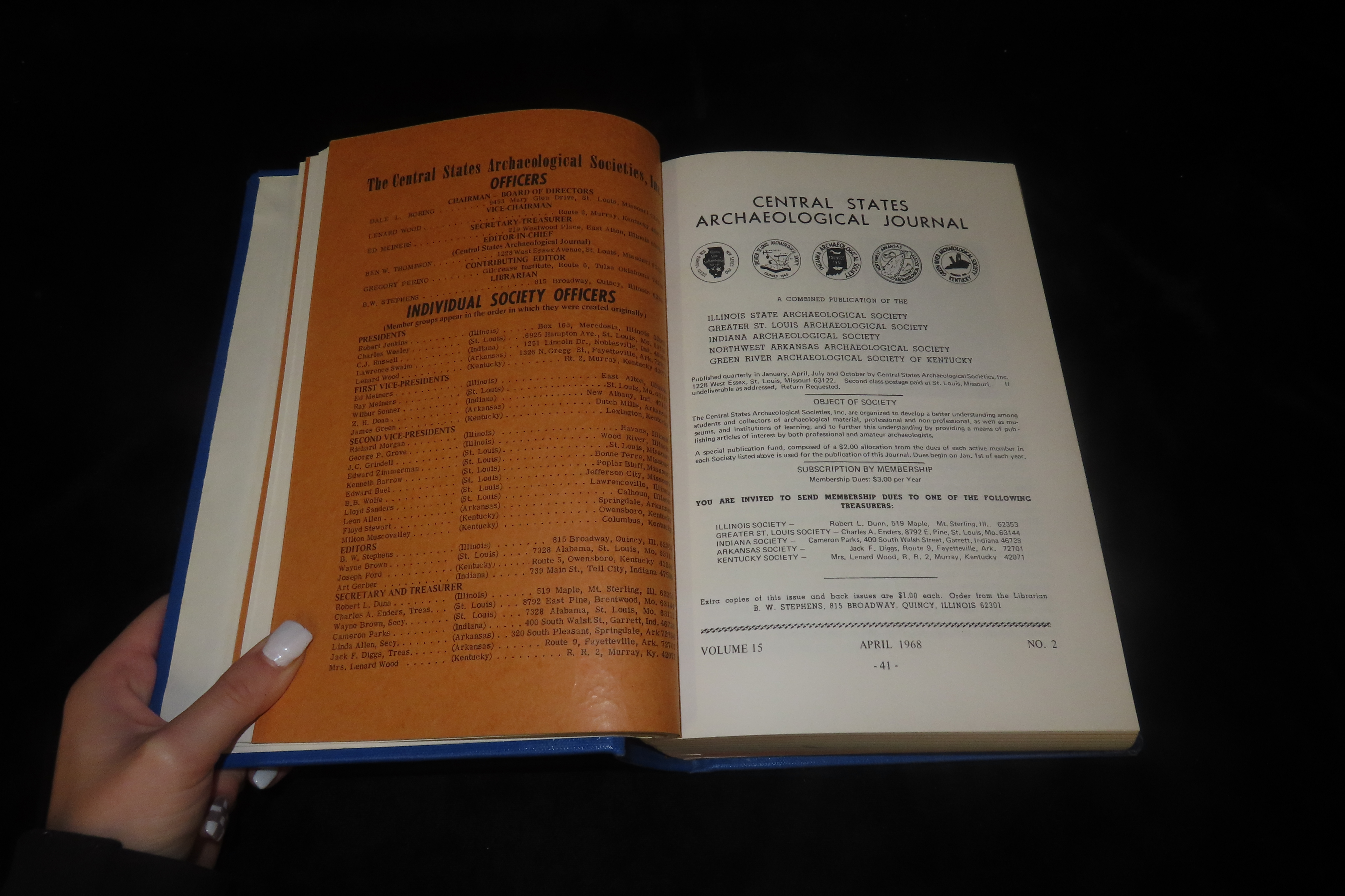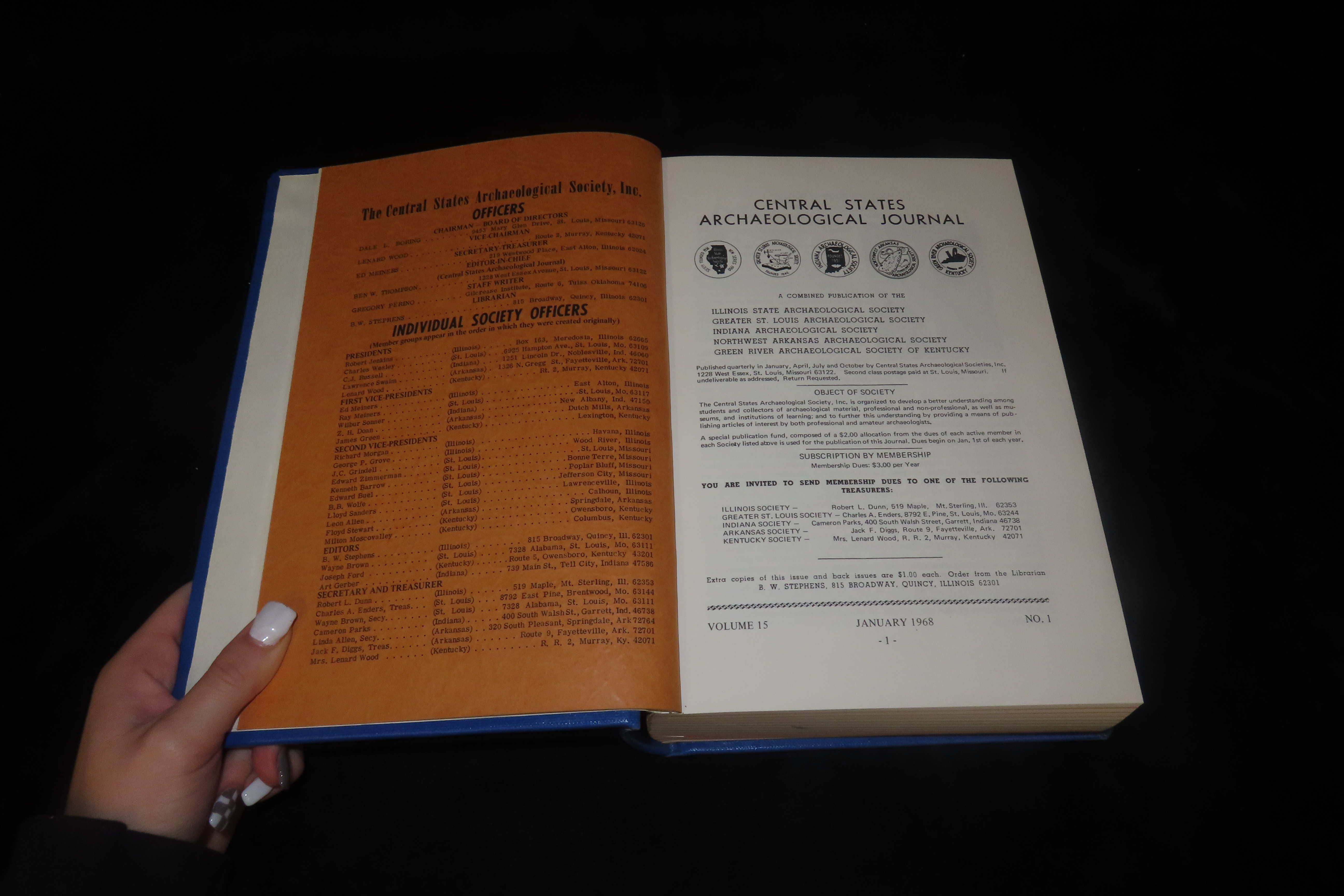 Book Containing Multiple Publications of the Central States Archaeological Journal by the Greater St. Louis, Indiana, Illinois State, Northwest Arkansas, Green River (Kentucky) Archaeological Societies, Volume 15 – 17 of the Years 1968 – 1970
