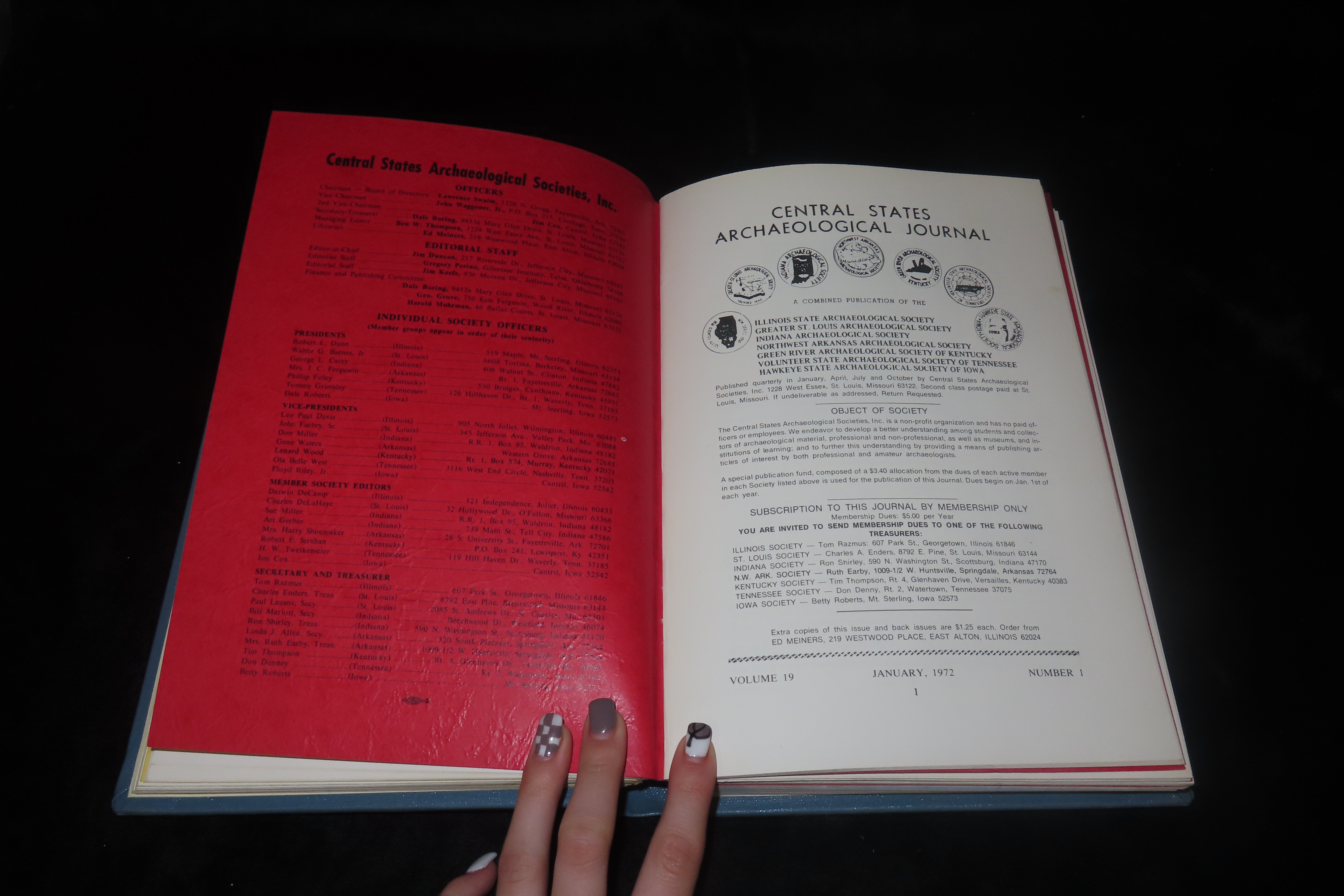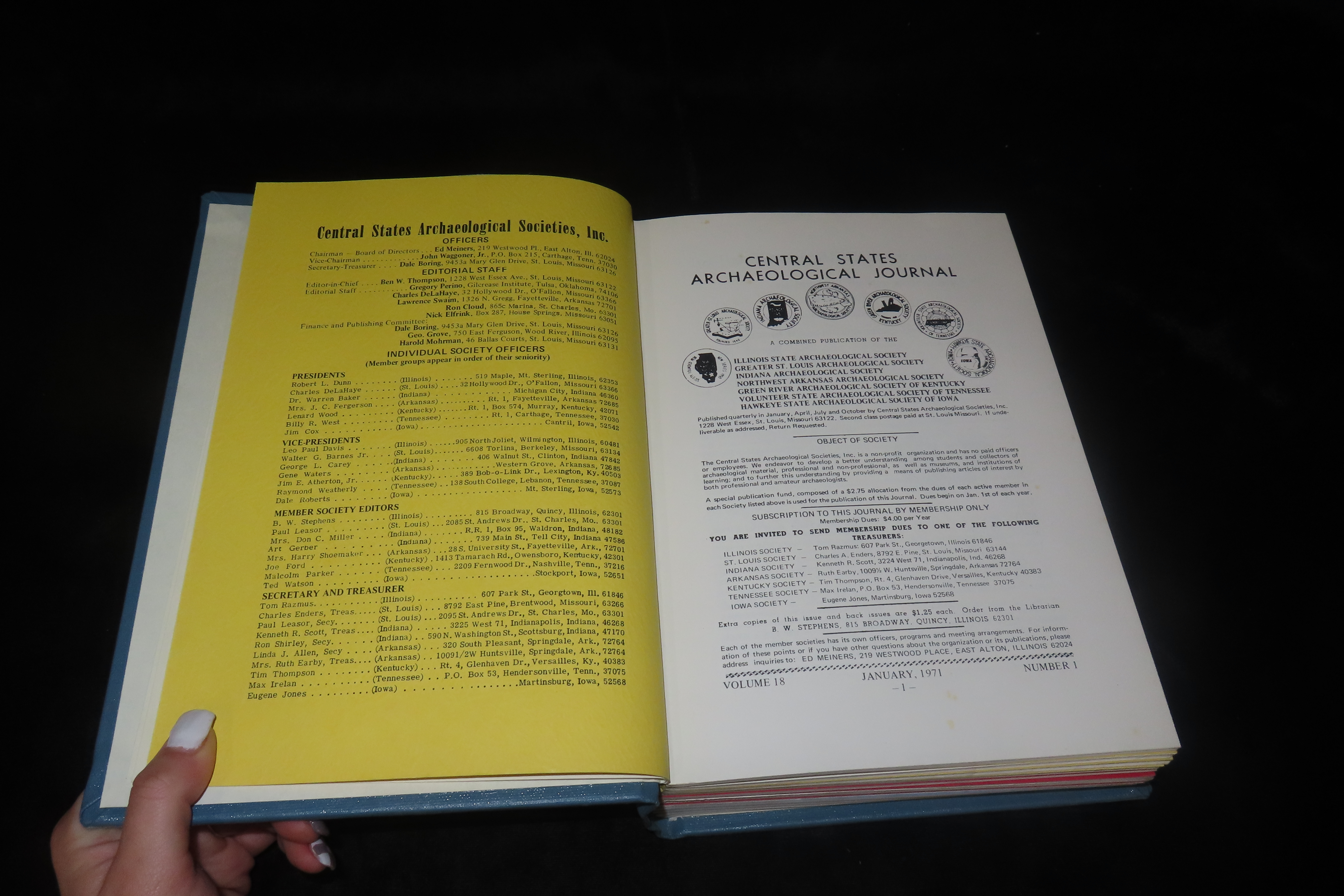 Book Containing Multiple Publications of the Central States Archaeological Journal by the Greater St. Louis, Indiana, Illinois State, Northwest Arkansas, Green River (Kentucky) Archaeological Societies, the Years 1971-1973
