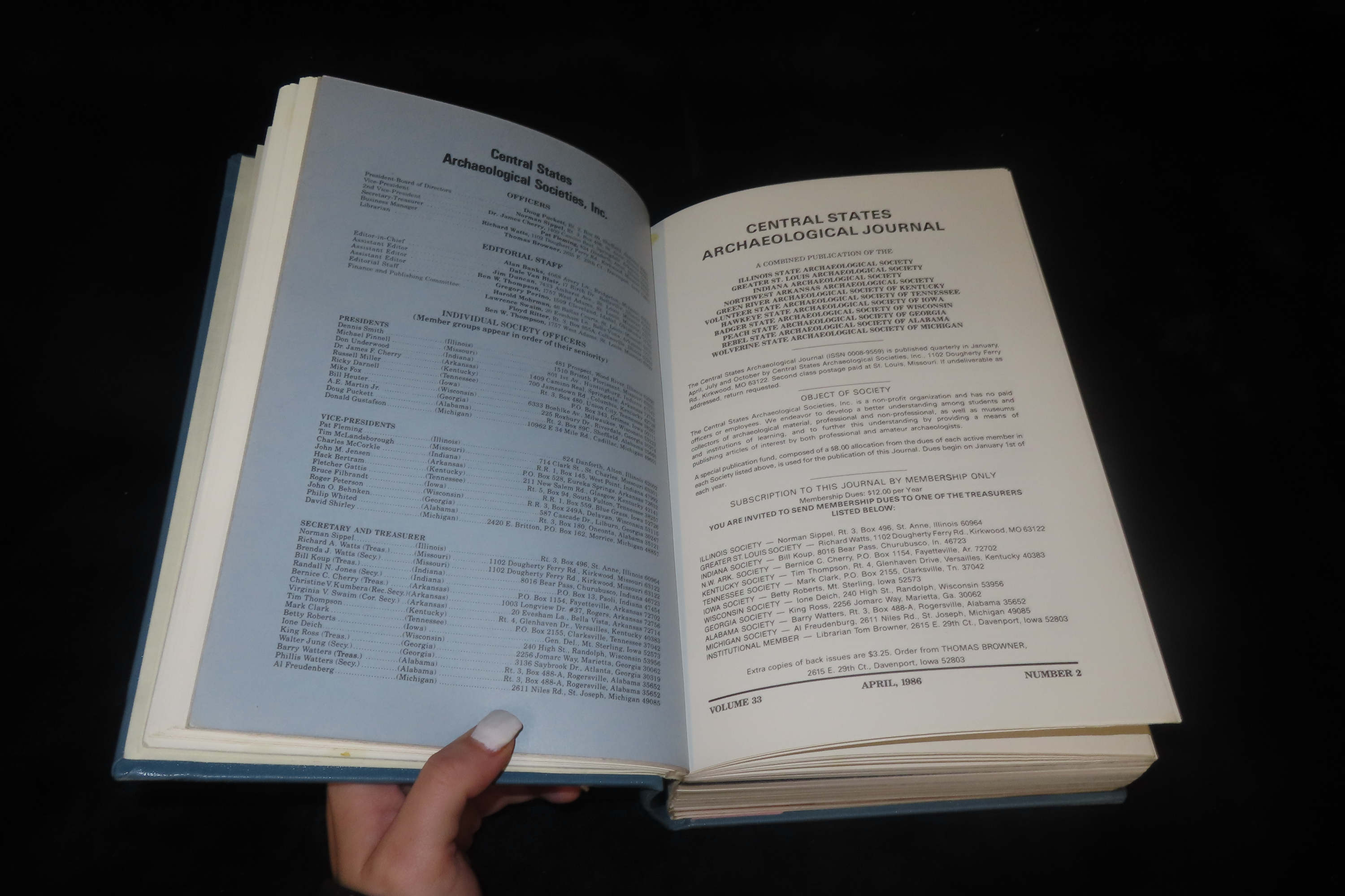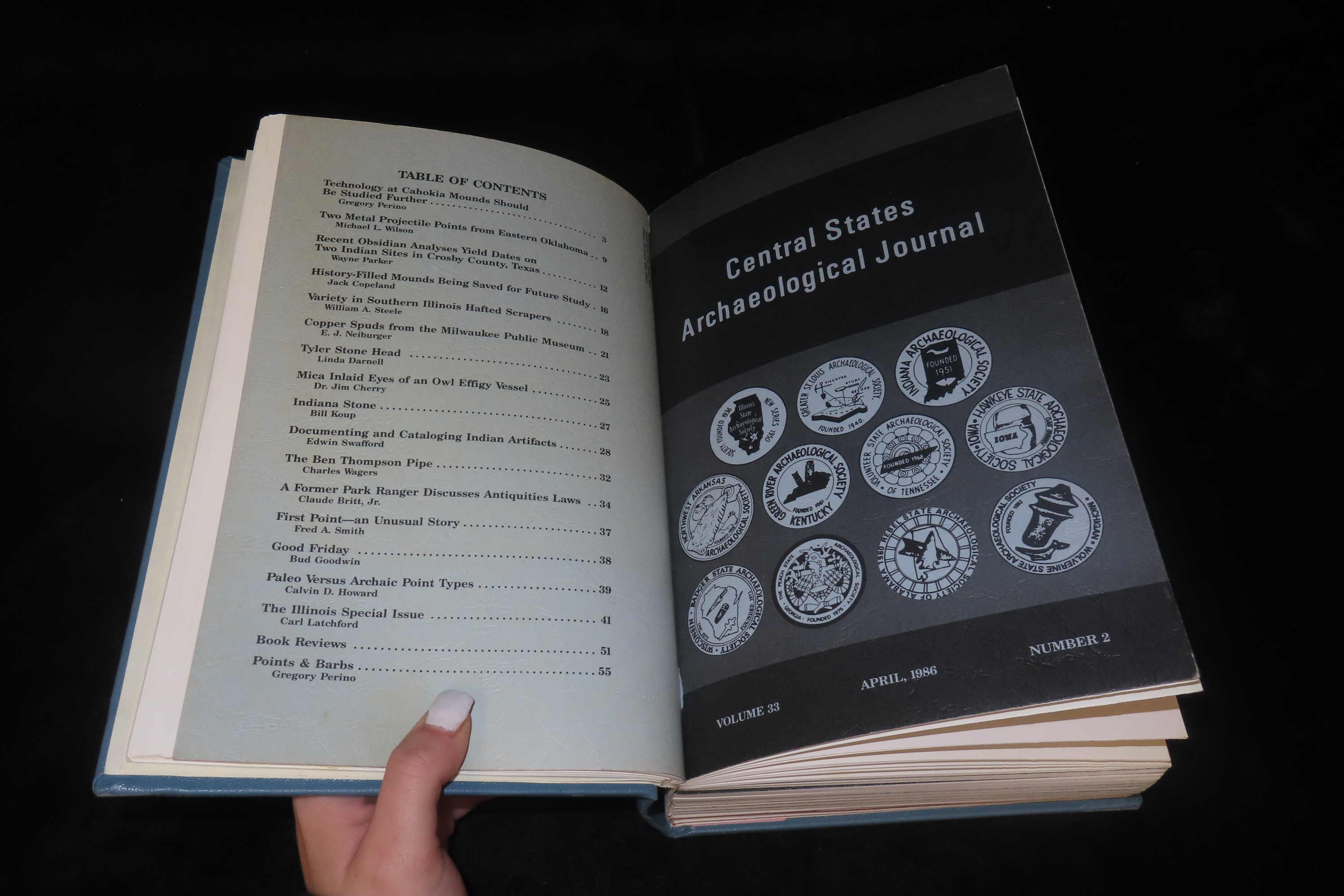 Book Containing Multiple Publications of the Central States Archaeological Journal by the Greater St. Louis, Indiana, Illinois State, Northwest Arkansas, Green River (Kentucky) Archaeological Societies, Volume 33 – 35 of the Years 1986 – 1988