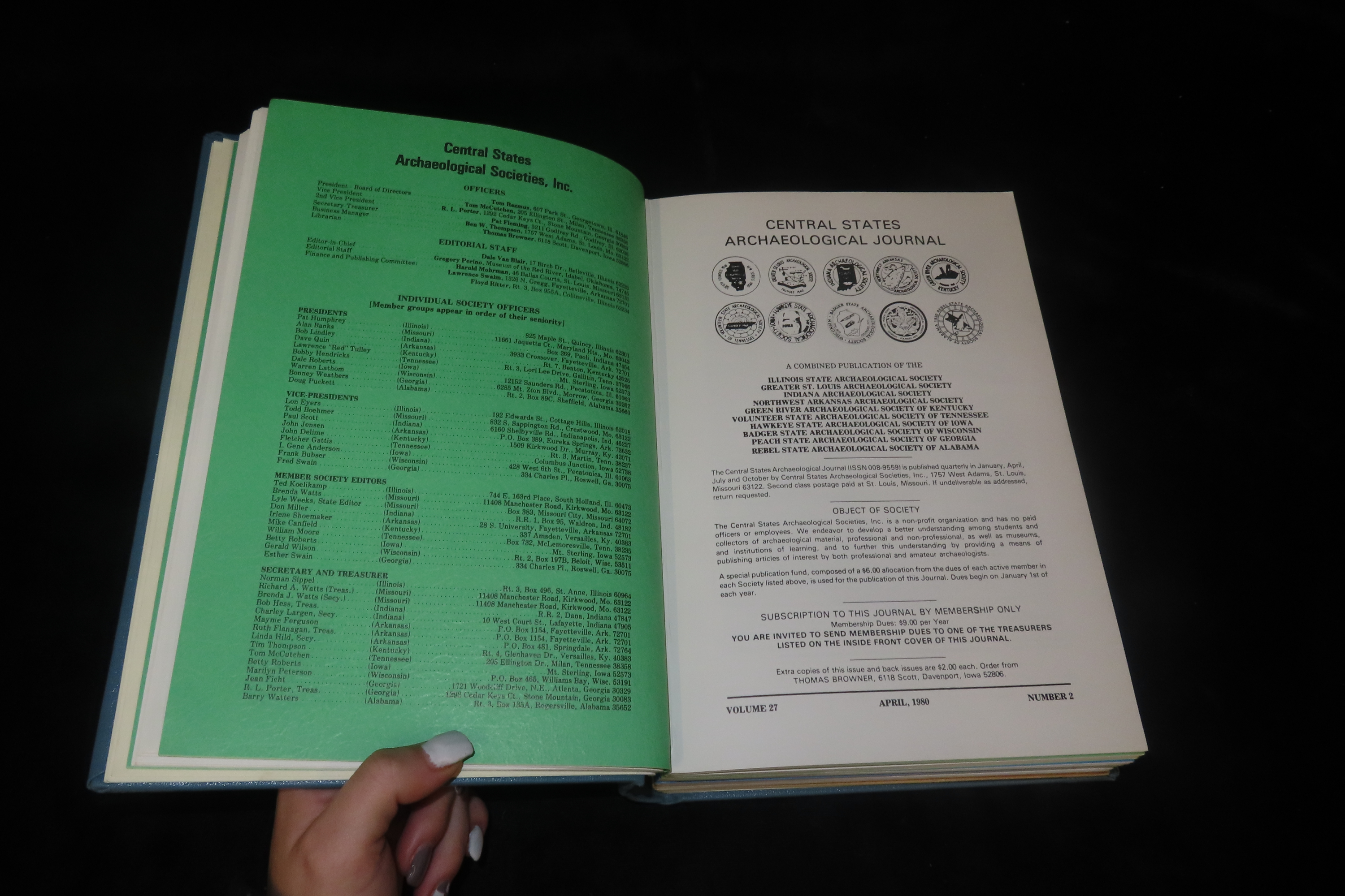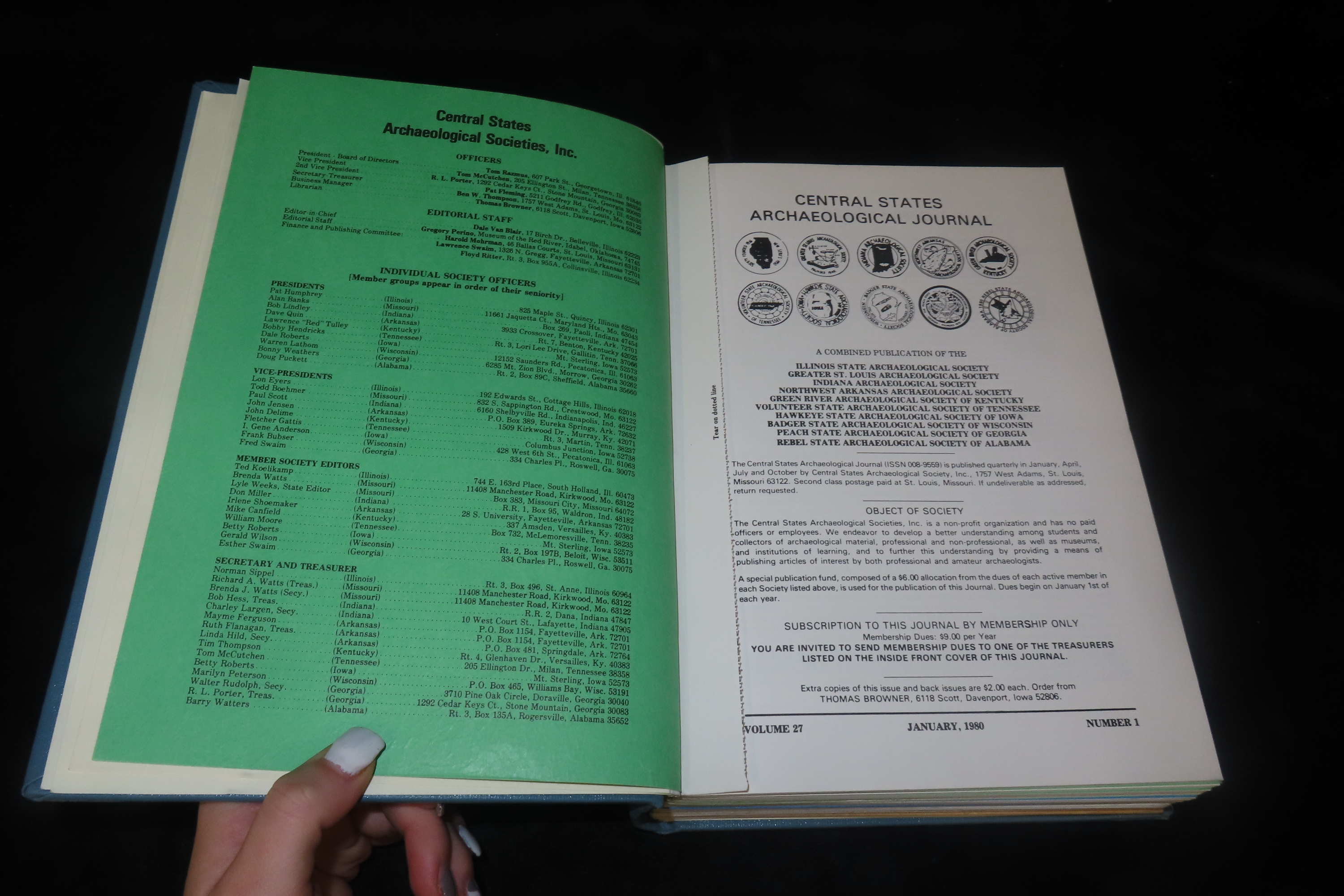 Book Containing Multiple Publications of the Central States Archaeological Journal by the Greater St. Louis, Indiana, Illinois State, Northwest Arkansas, Green River (Kentucky) Archaeological Societies, Volume 27 – 29 of the Years 1980 – 1982