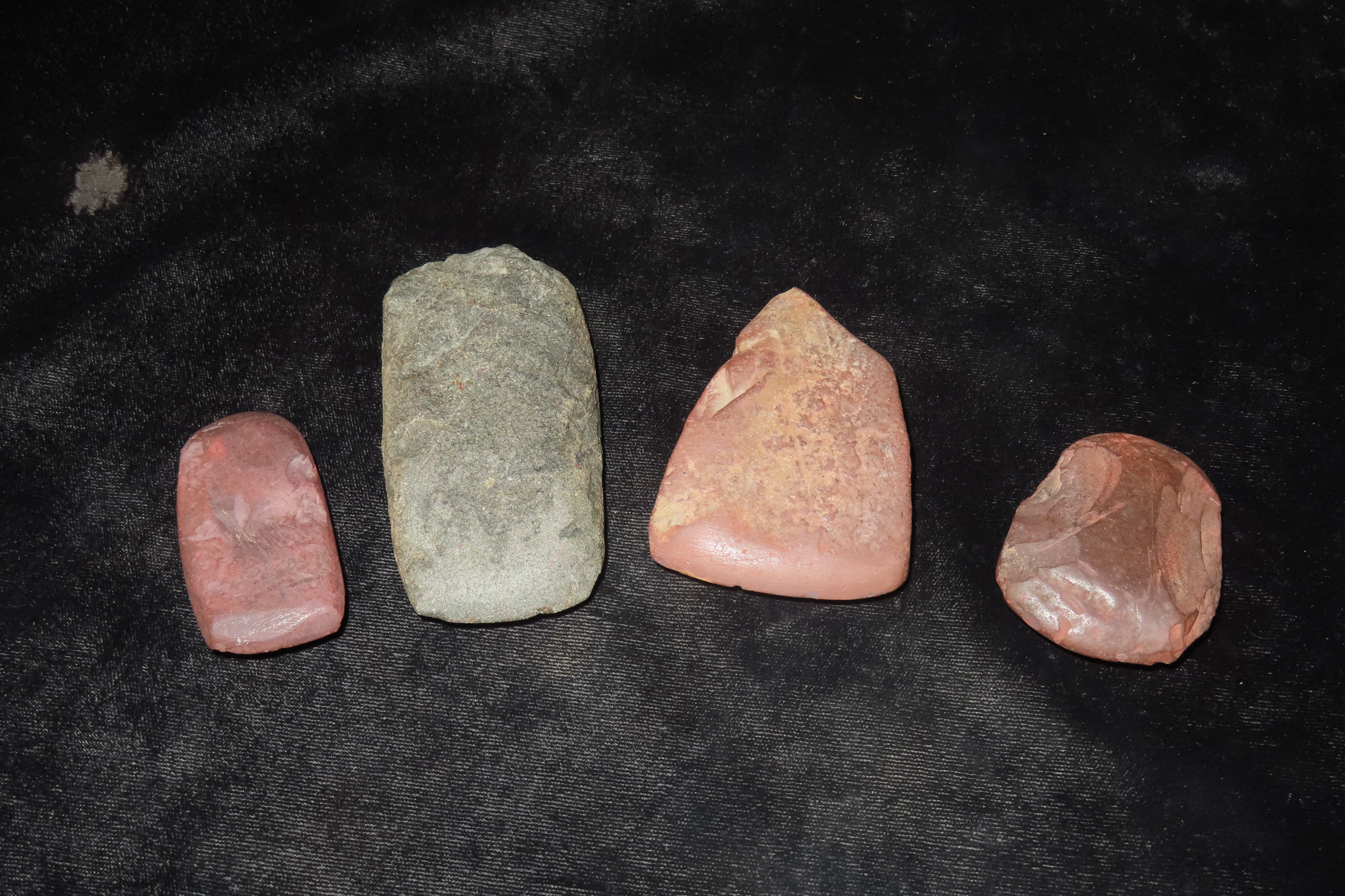 Group of 4 Miniature Celts, 1 Hardstone, 3 Hematite, found by Adam Sisler & Family in Keokuk Co., Iowa