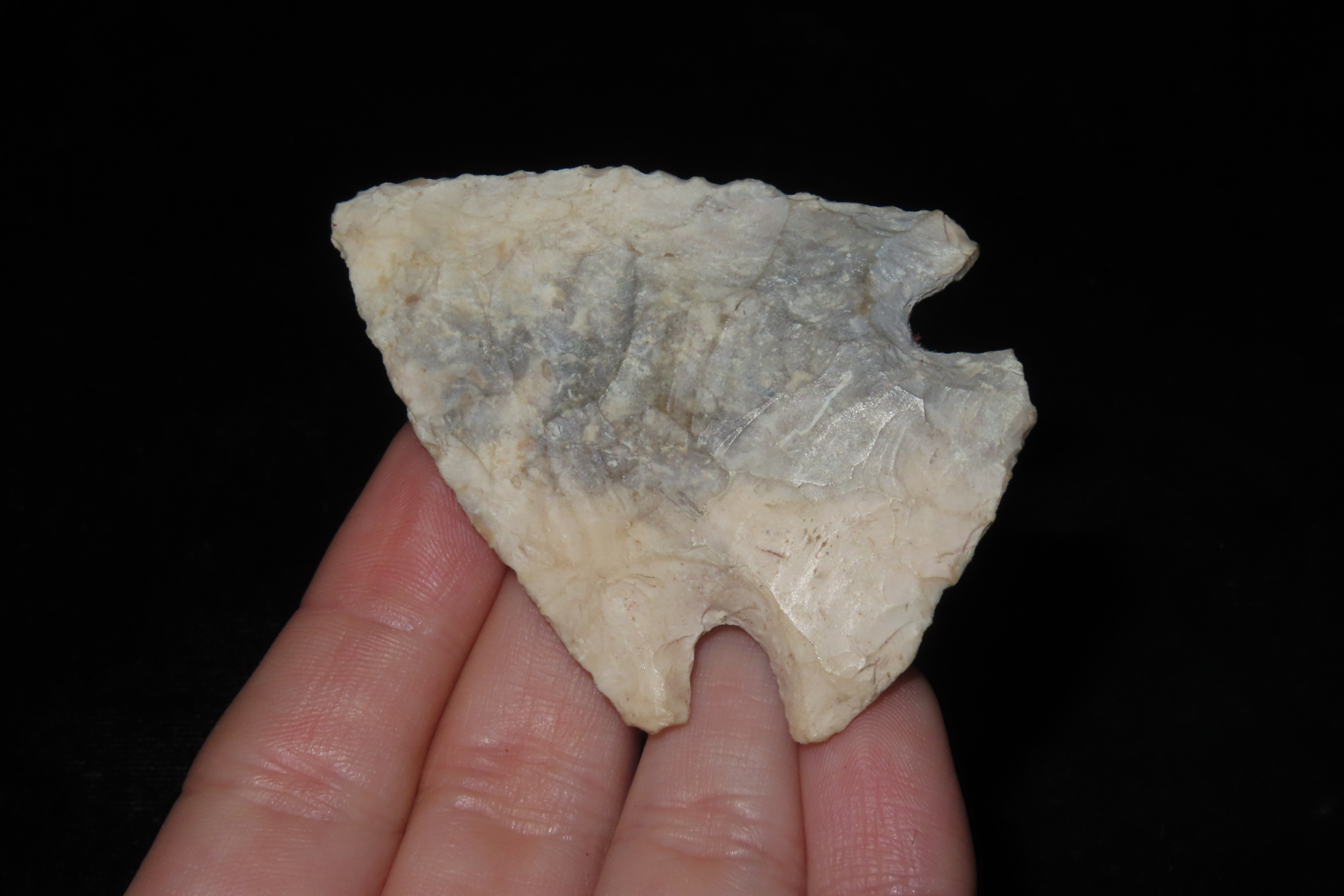 2 3/8″ Kirk Corner Notch, Great Material, found by Adam Sisler & Family in Keokuk Co., Iowa