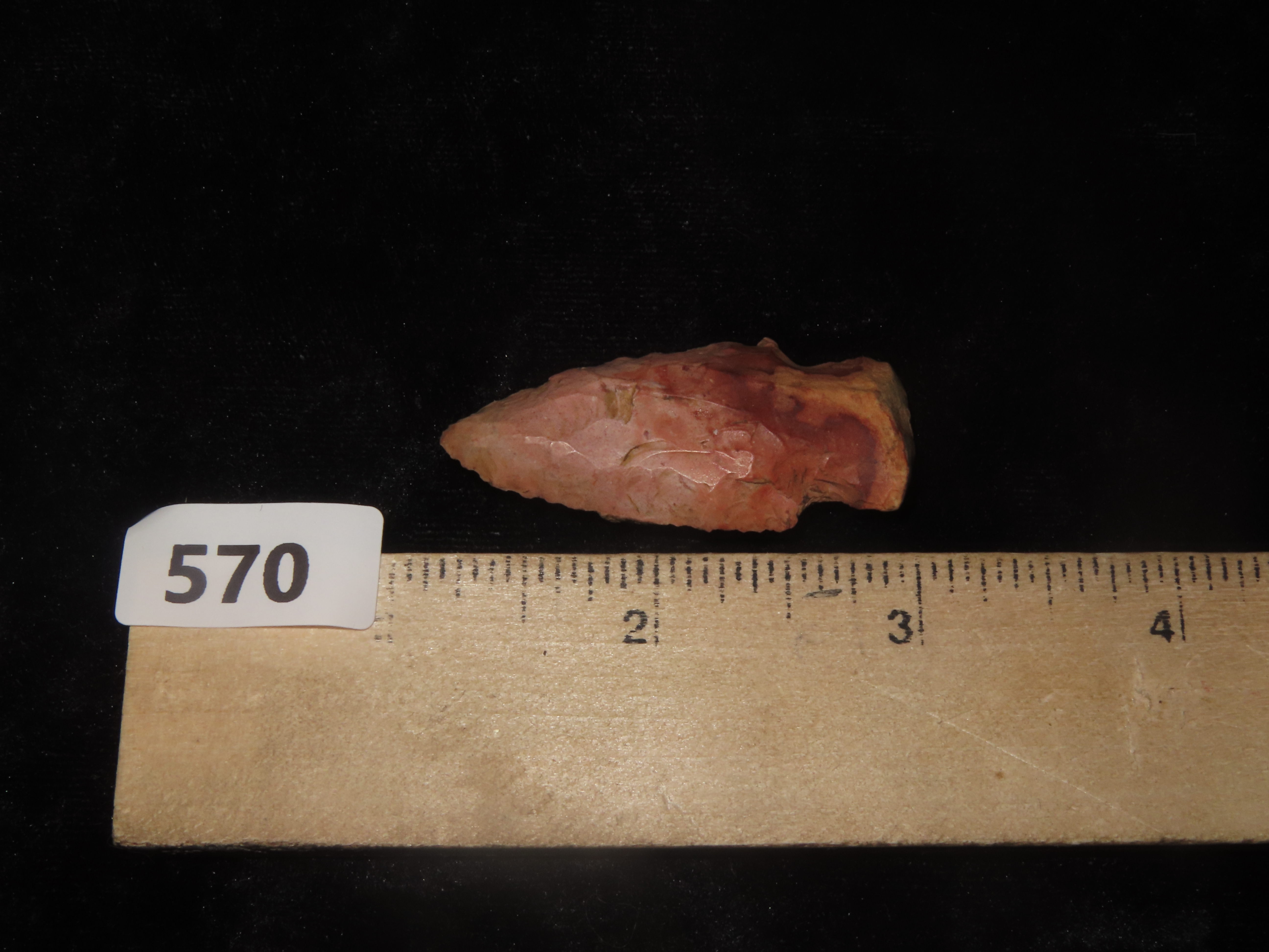 1 3/4″ Very Colorful Hardin, Likely Creek Stained, Native American Arrowhead