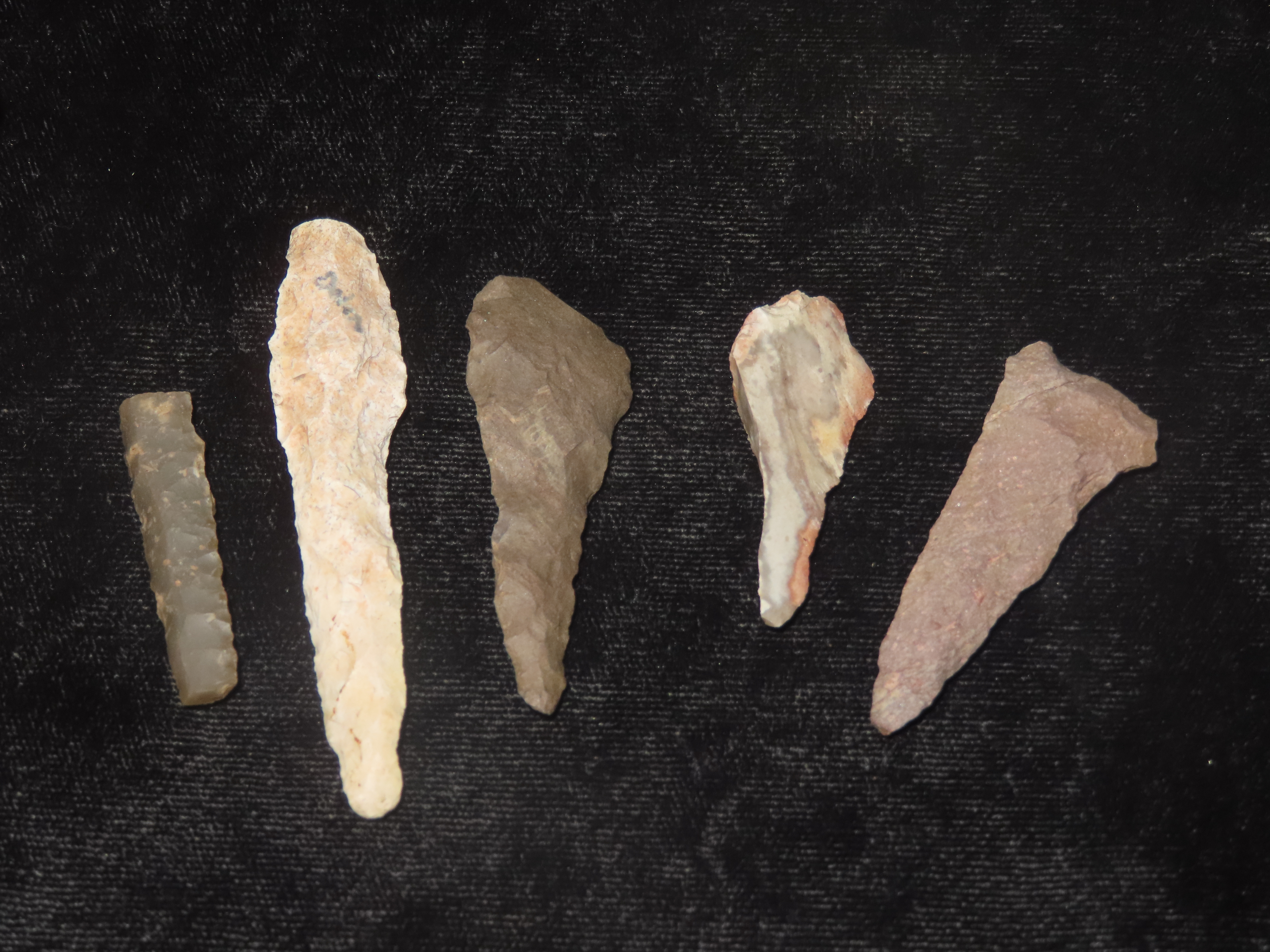 Grouping of 5 drills, Various sizes and shapes, Native American