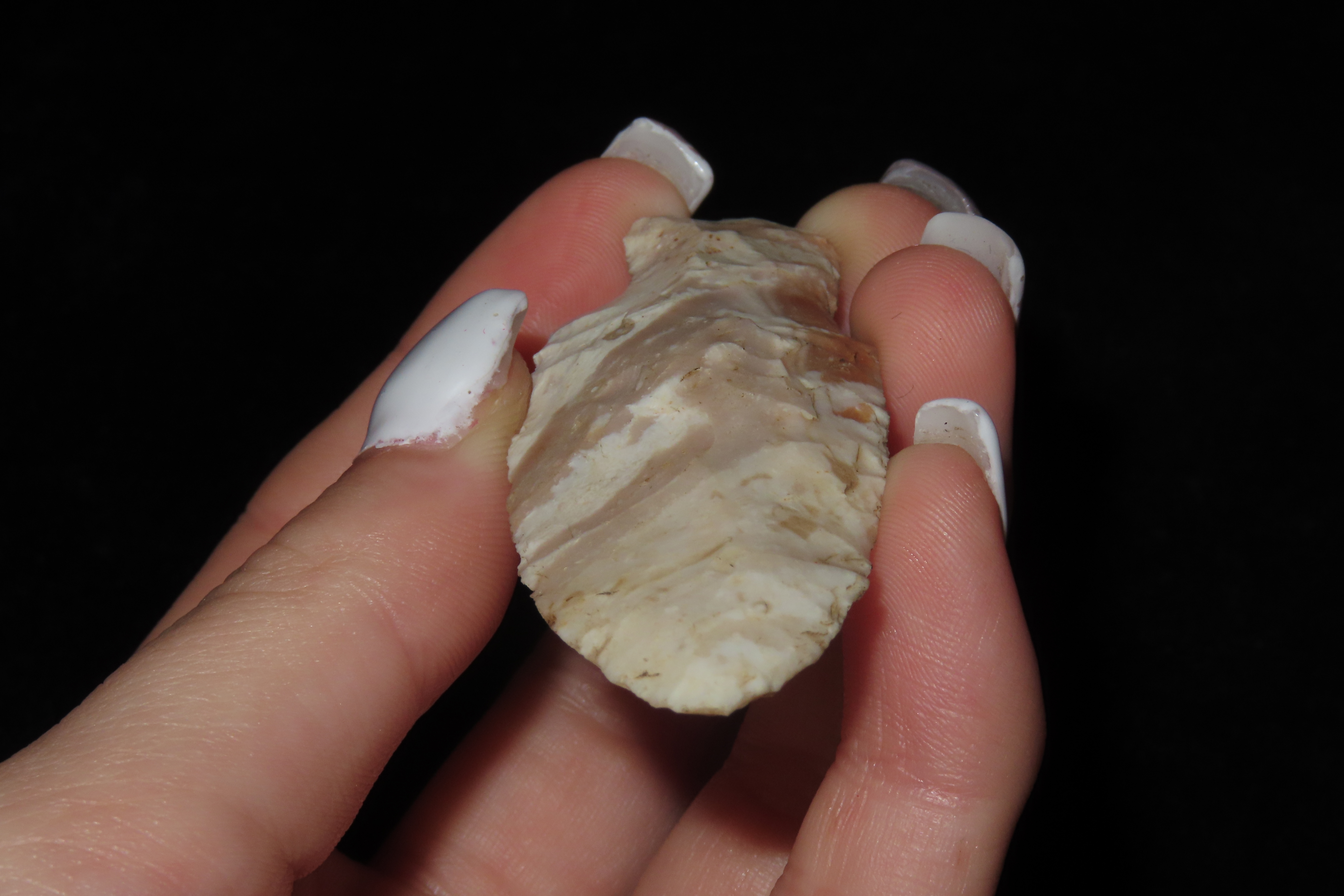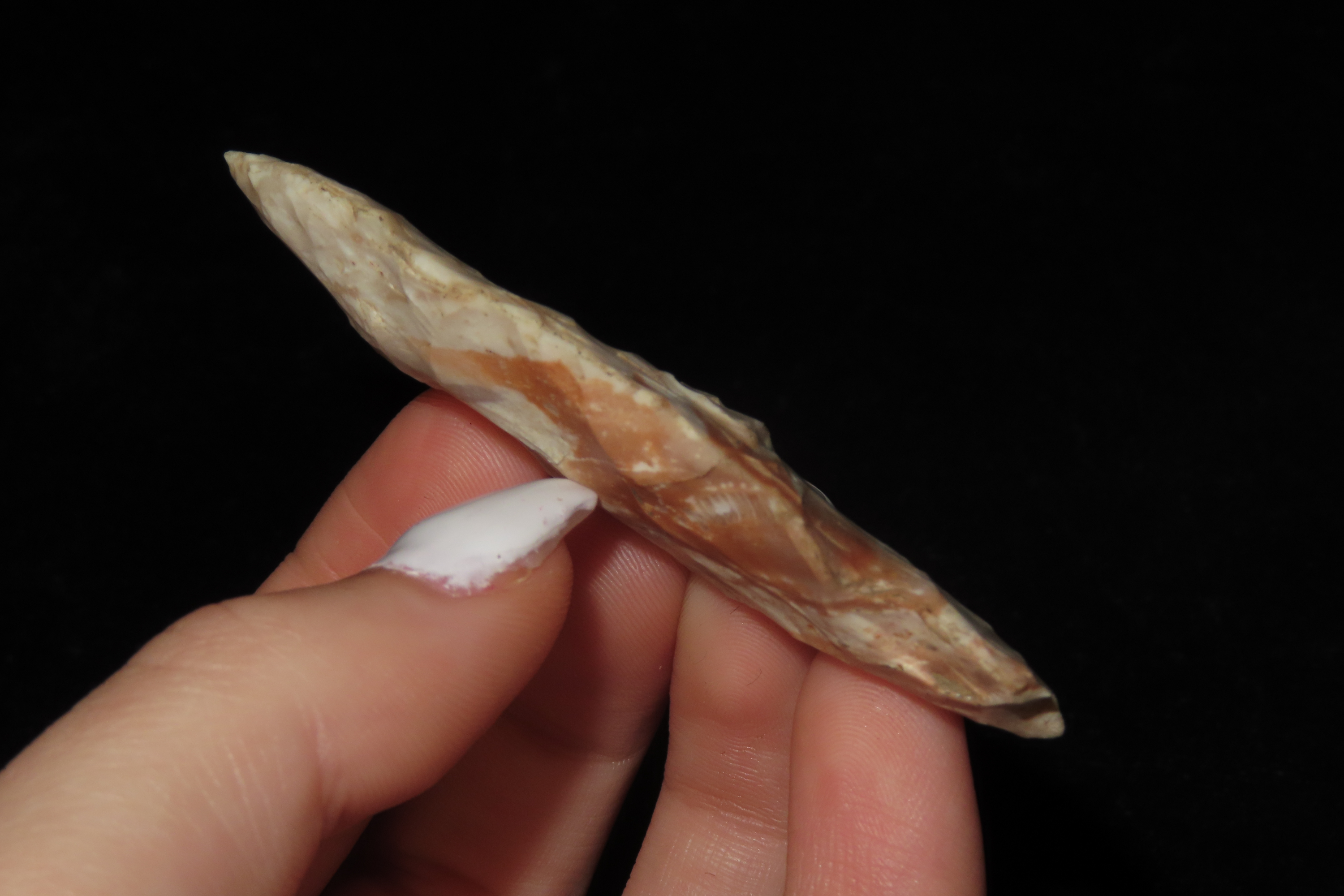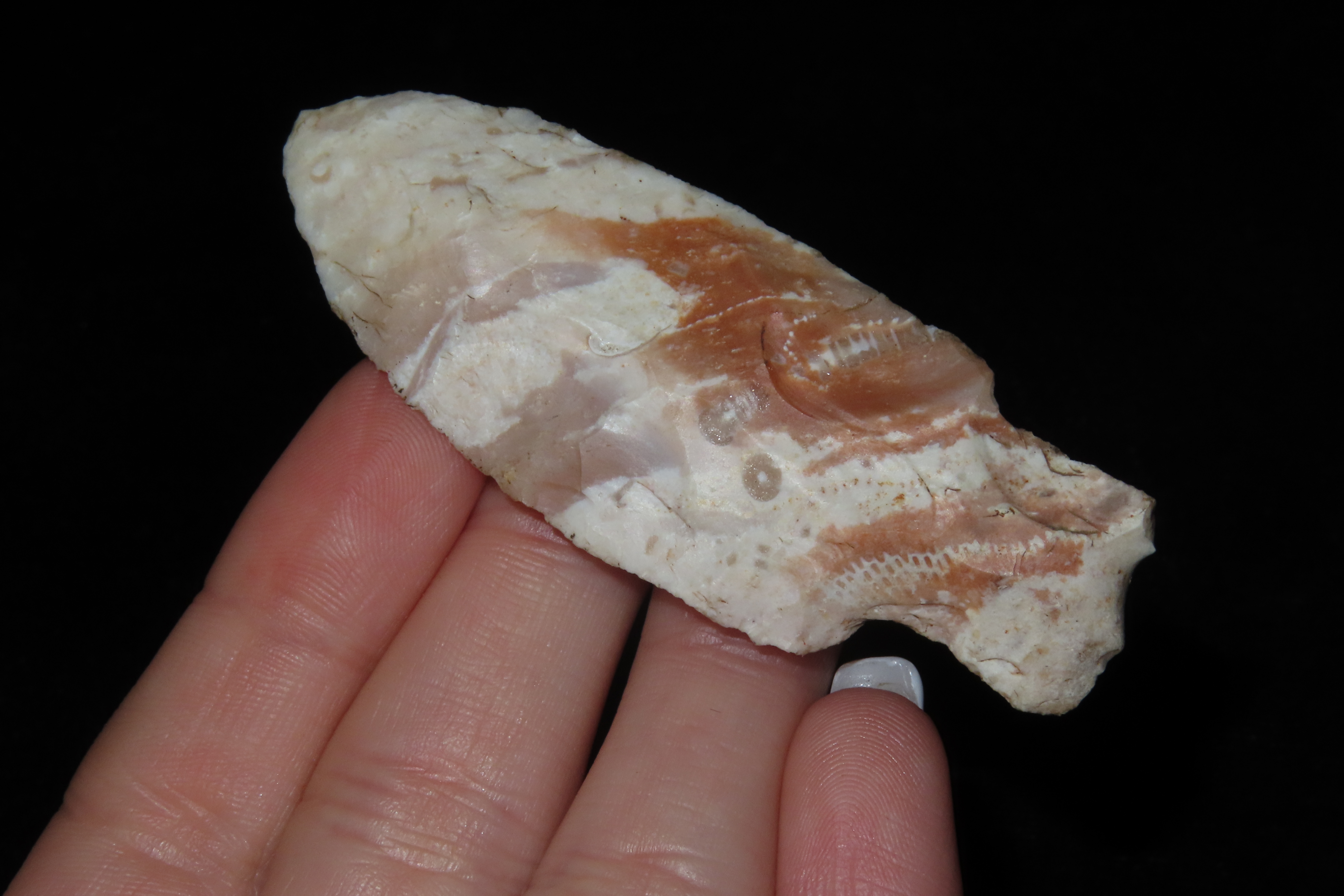 2 5/8″ Gorgeous Color Kramer, Heavy Fossil inclusion, found by Adam Sisler & Family in Keokuk Co., Iowa