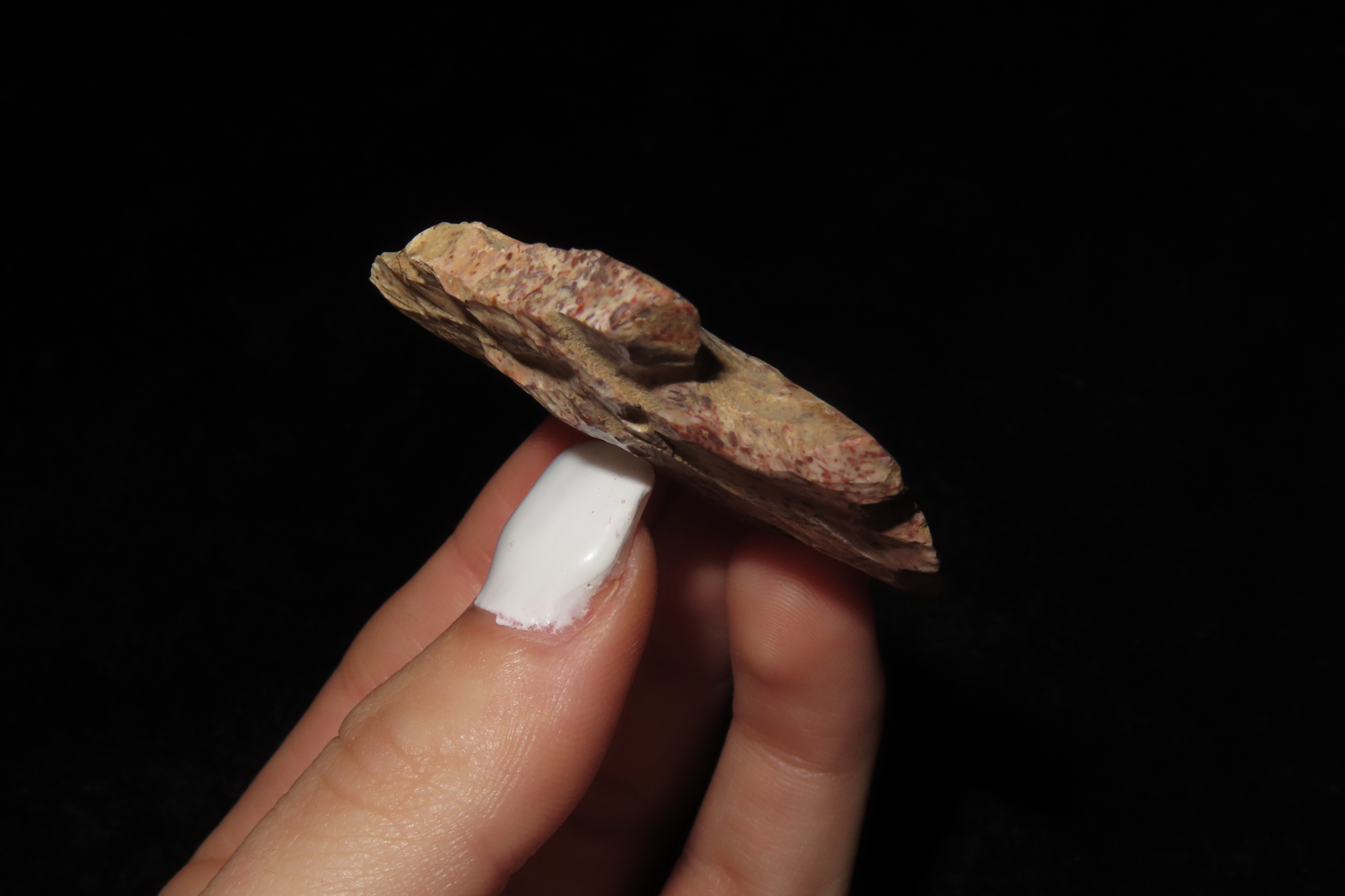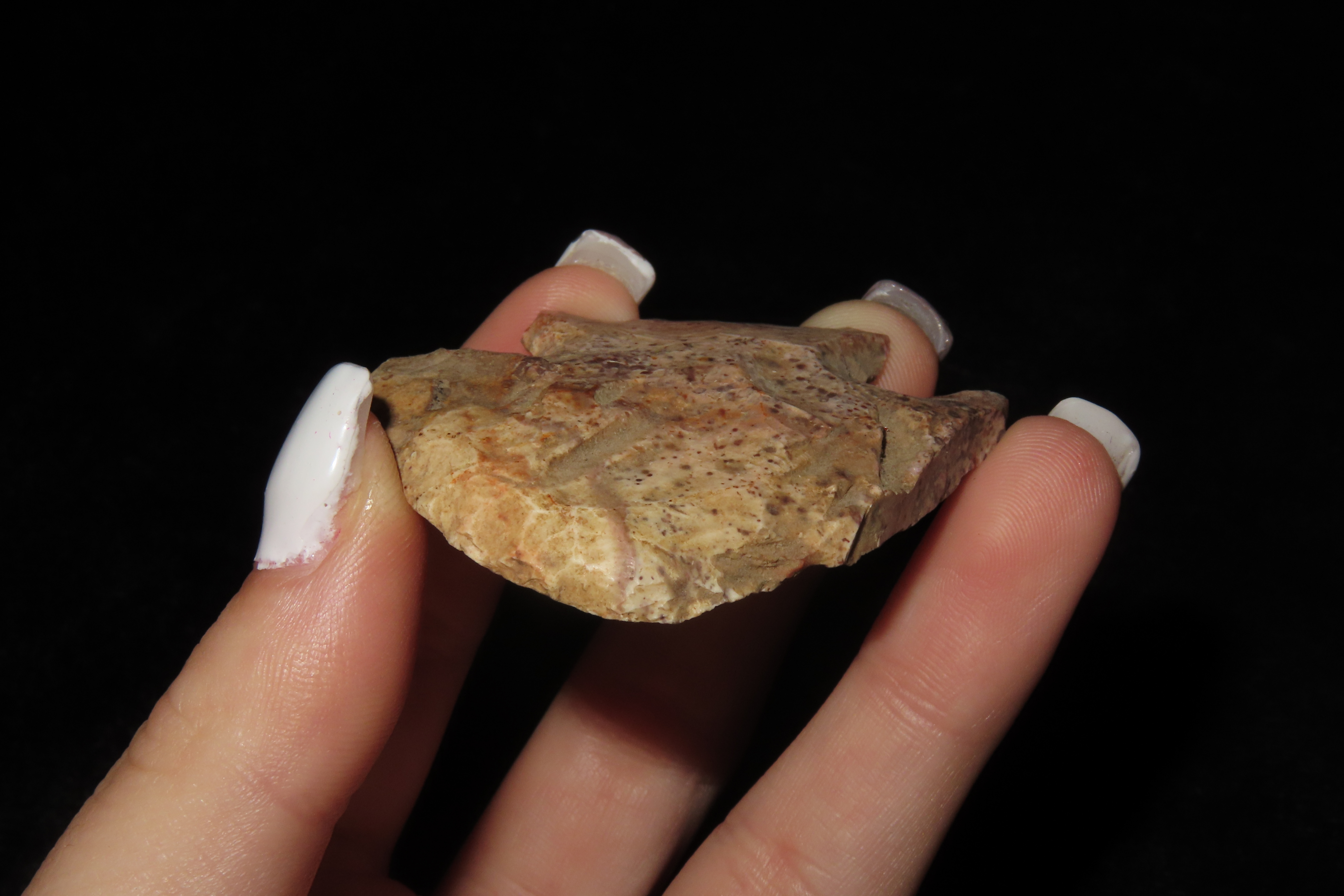 2″ Heat-treated Chert Blunt, found by Adam Sisler & Family in Keokuk Co., Iowa