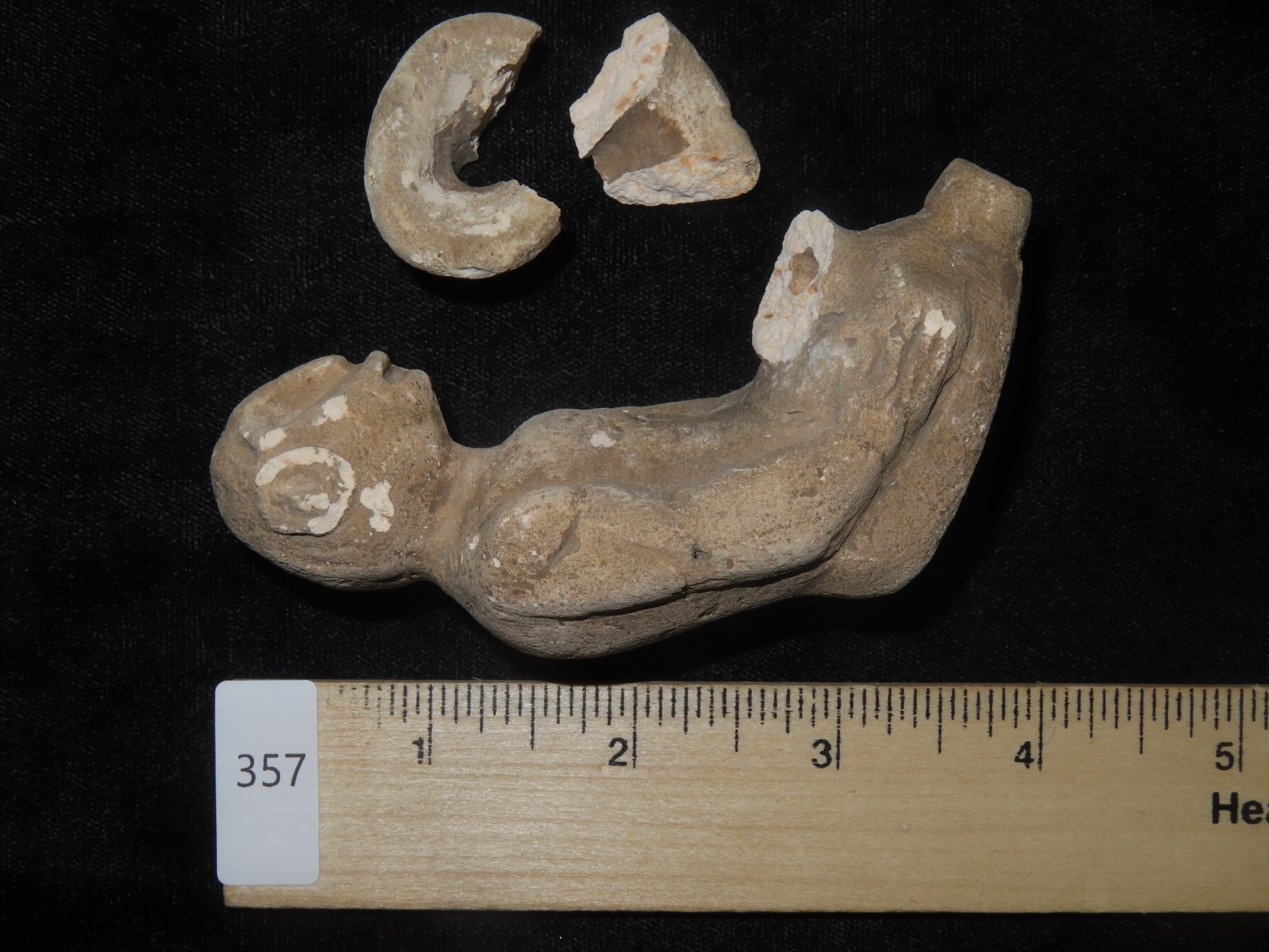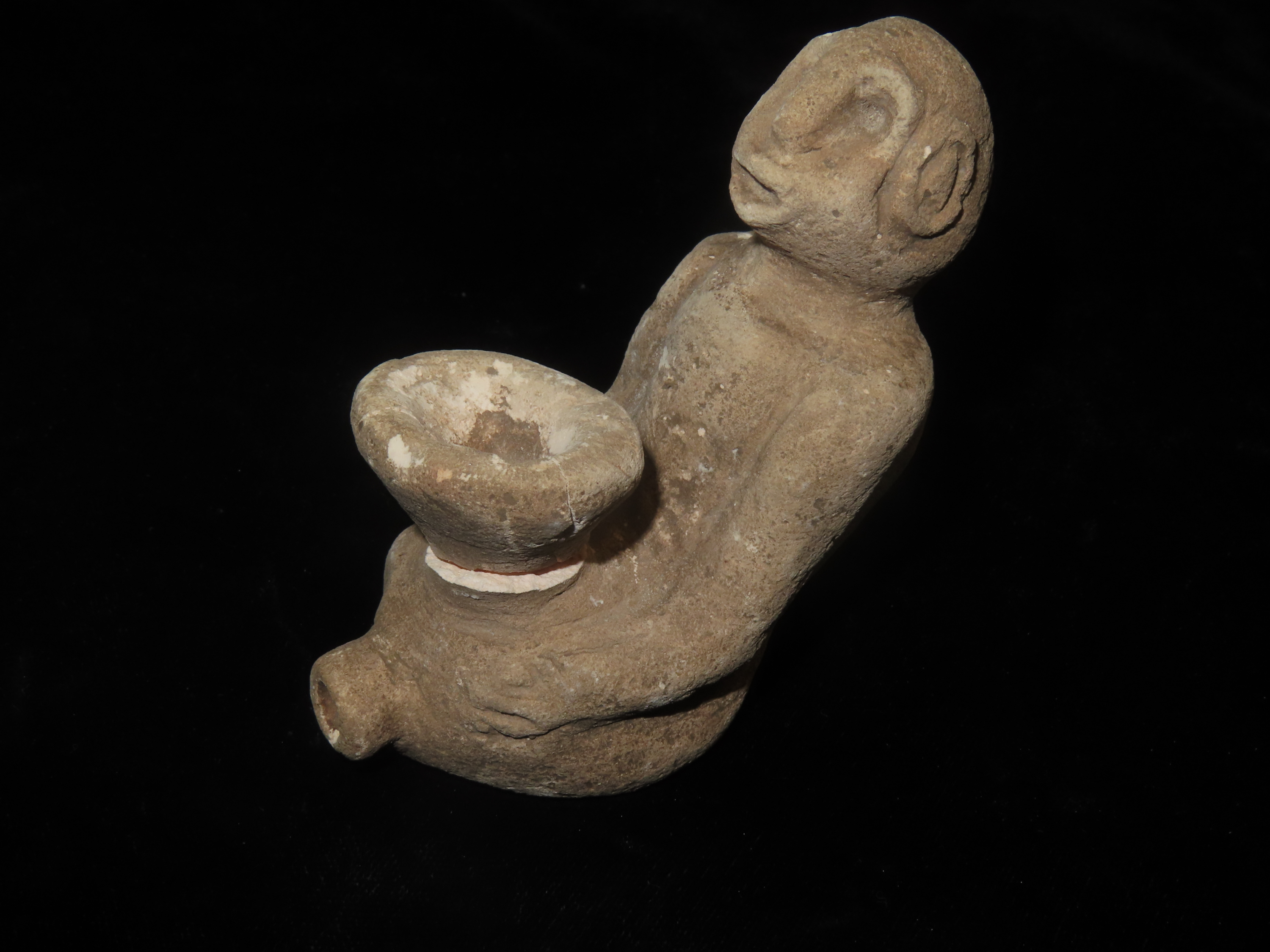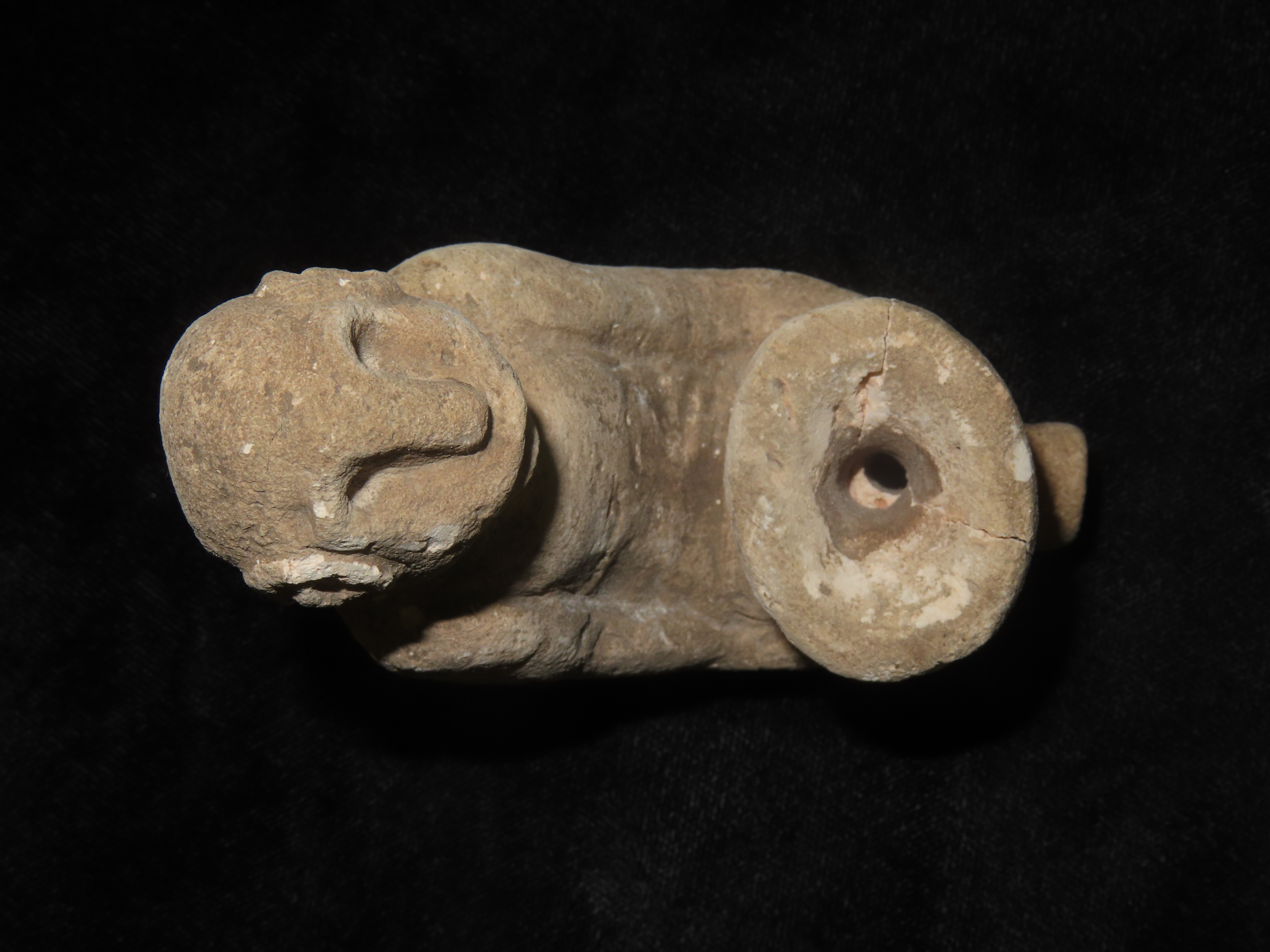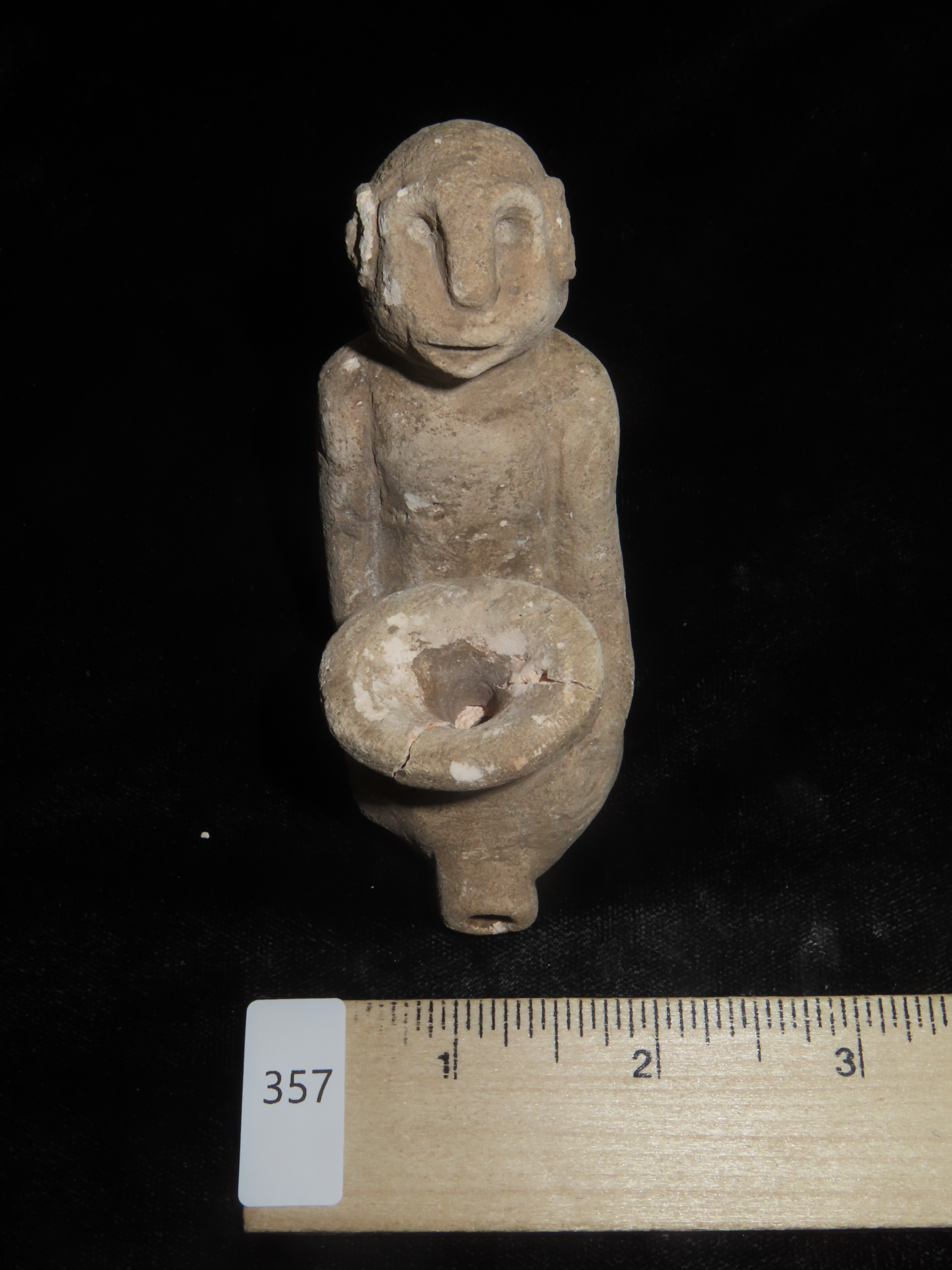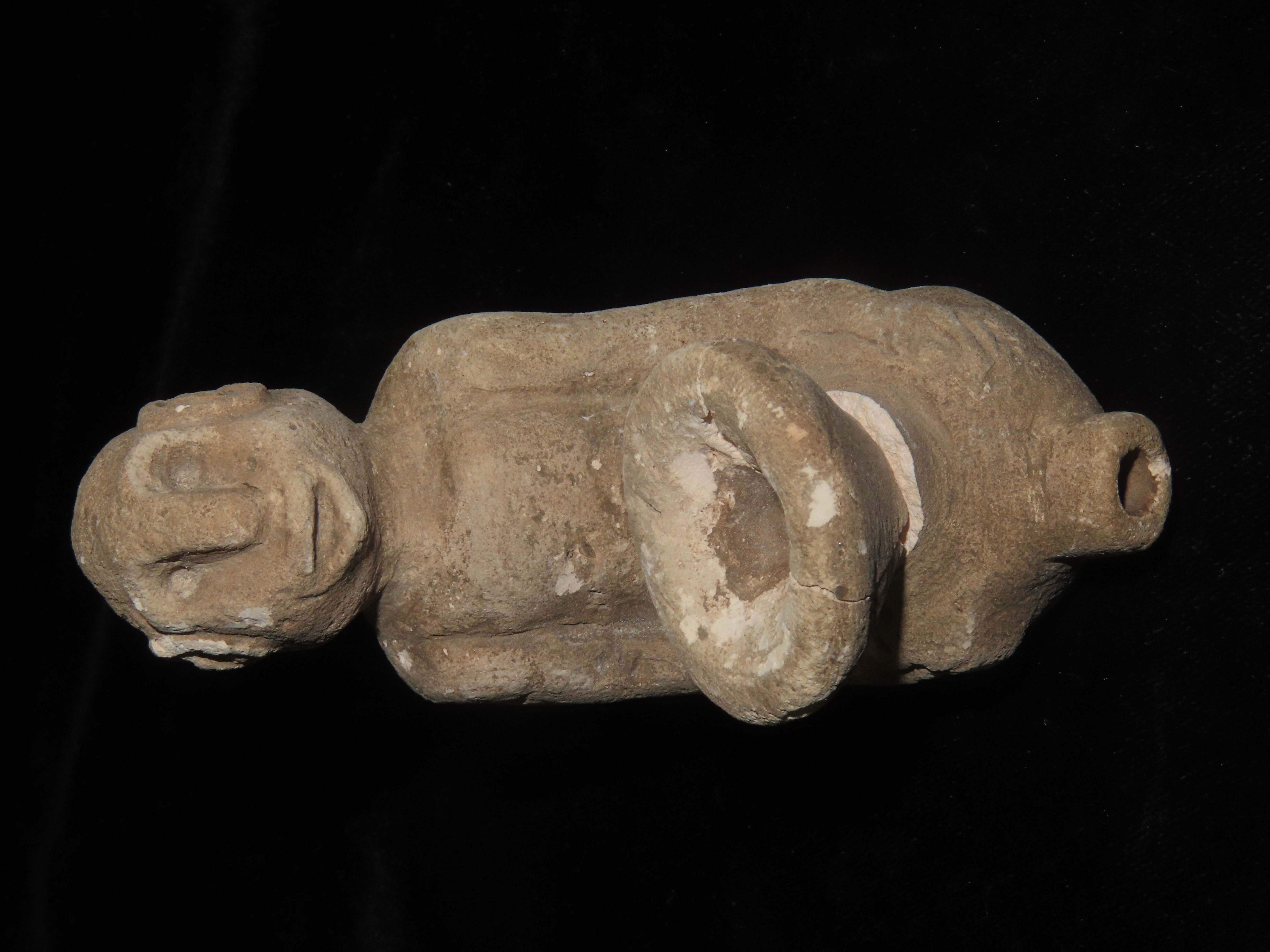 3 1/4″ x 2 1/2″ Broken Human Effigy Pottery Pipe
