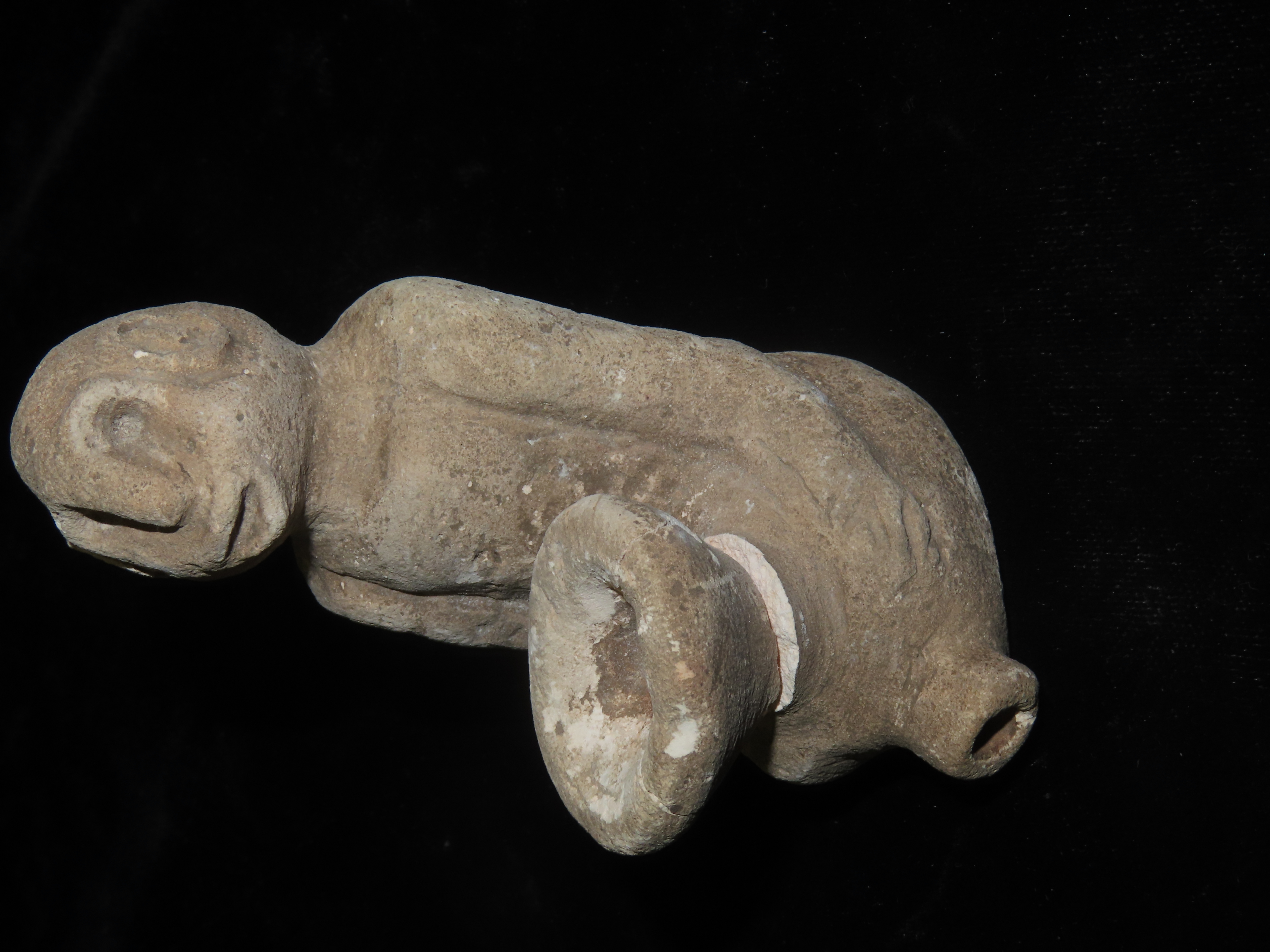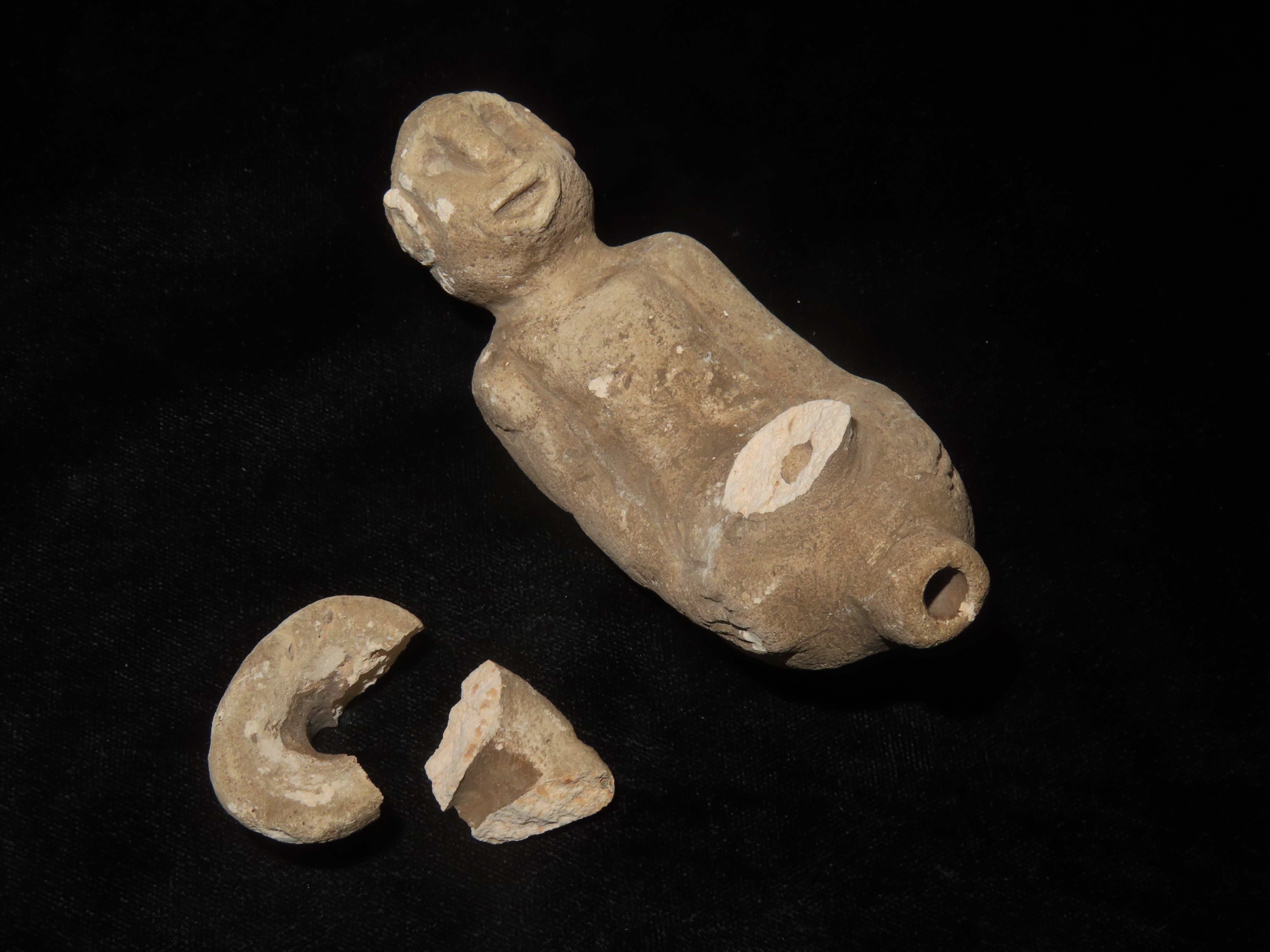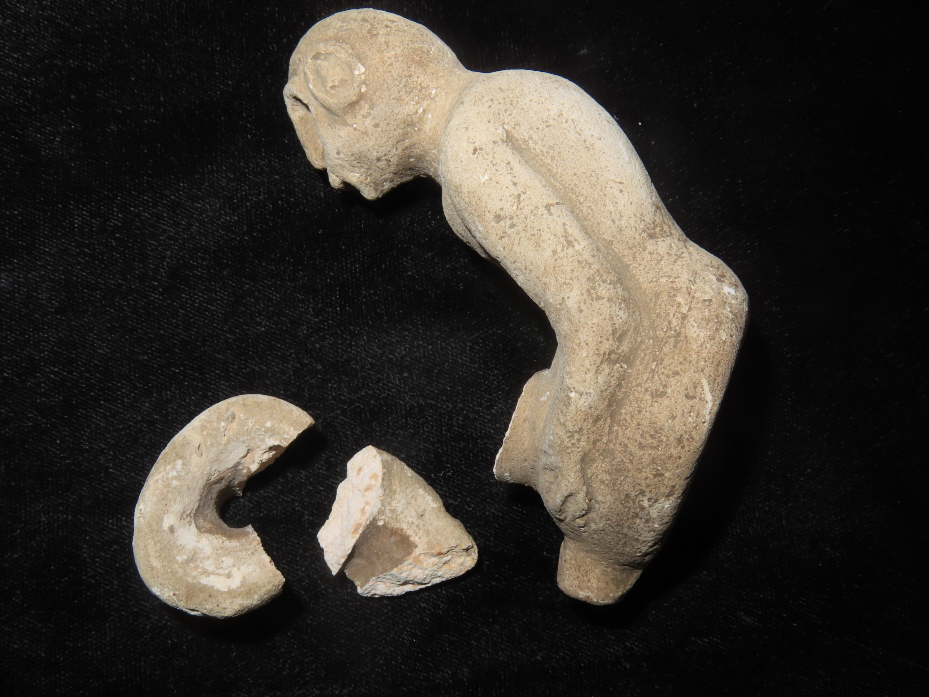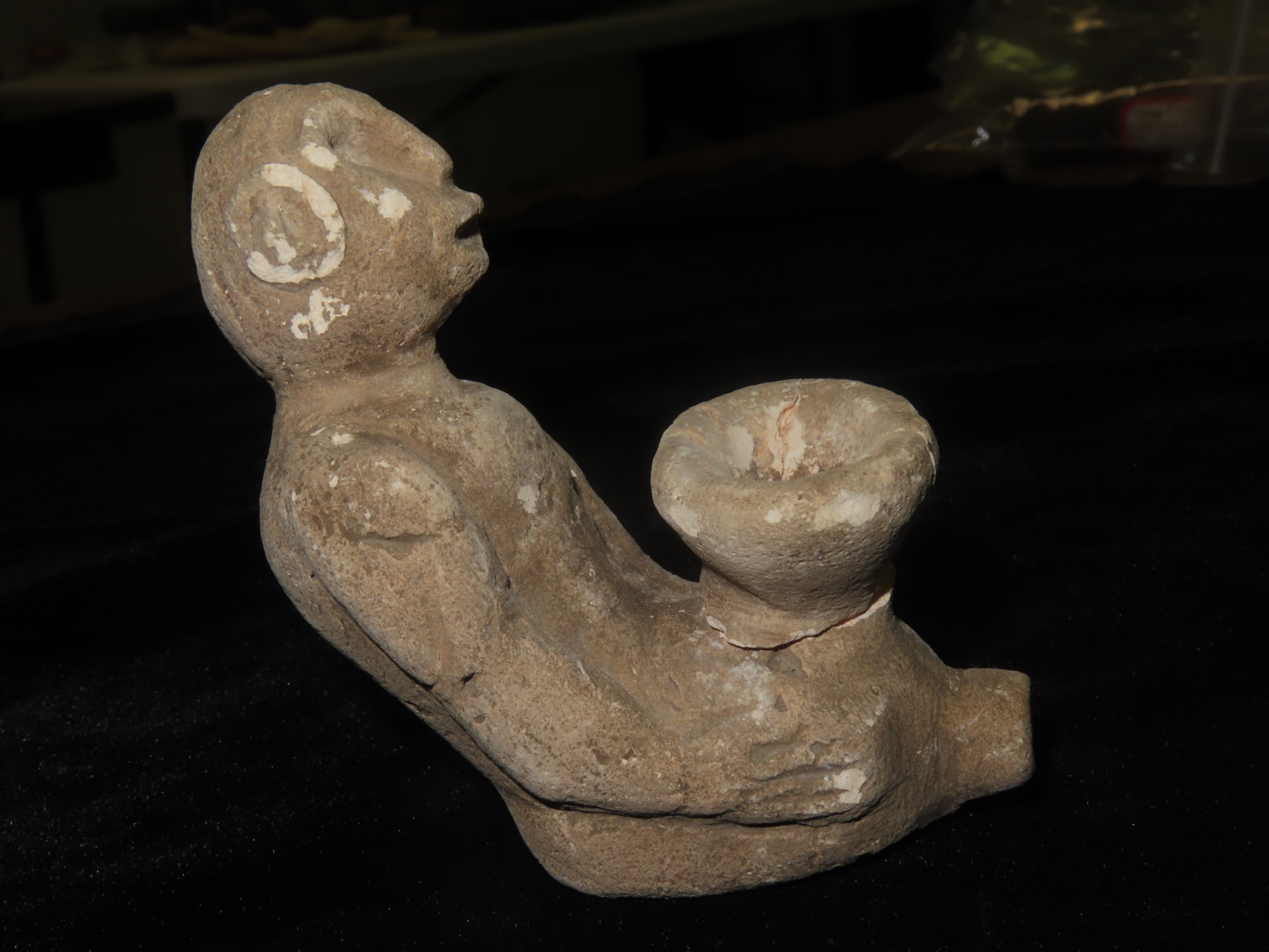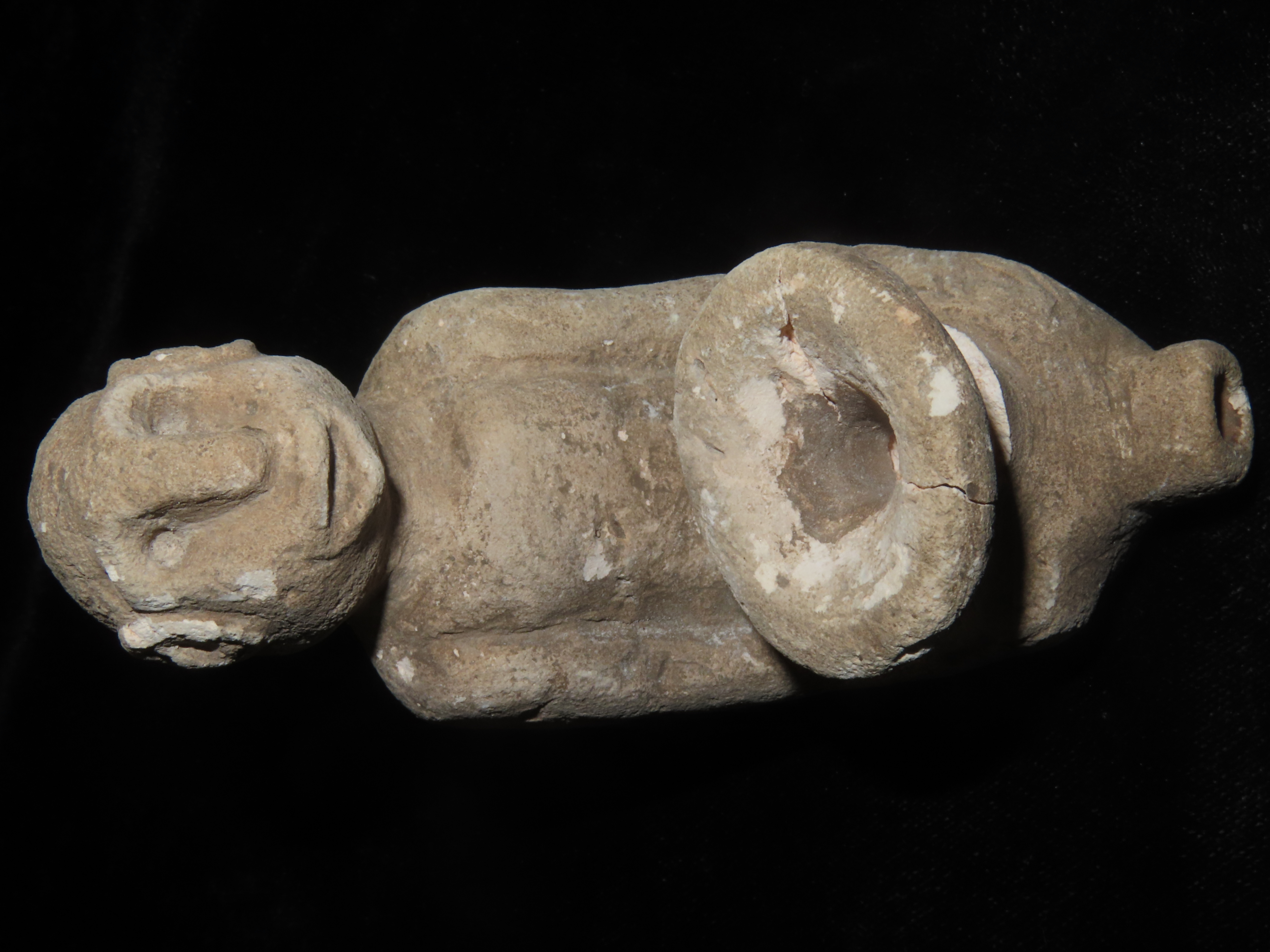 3 1/4″ x 2 1/2″ Broken Human Effigy Pottery Pipe