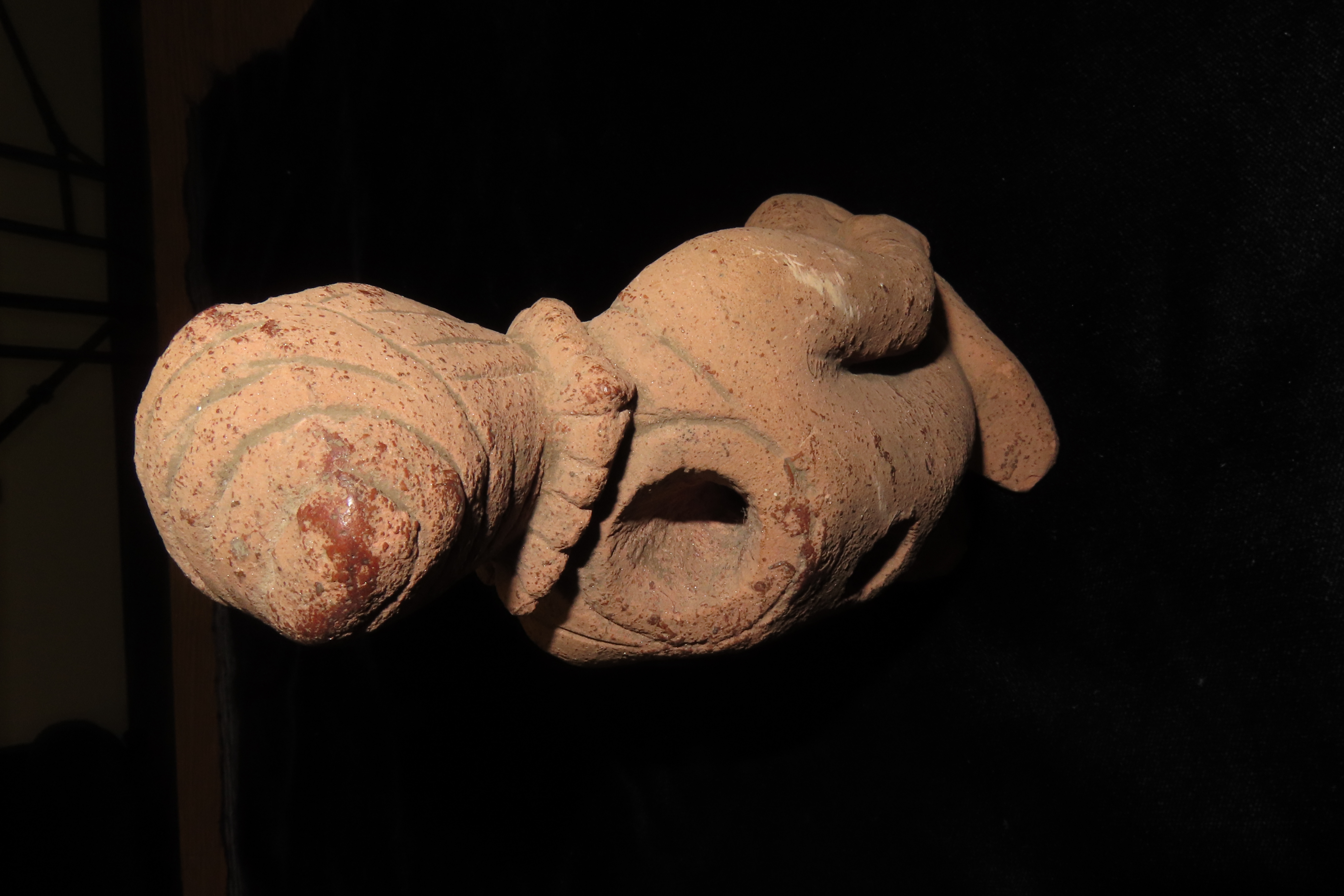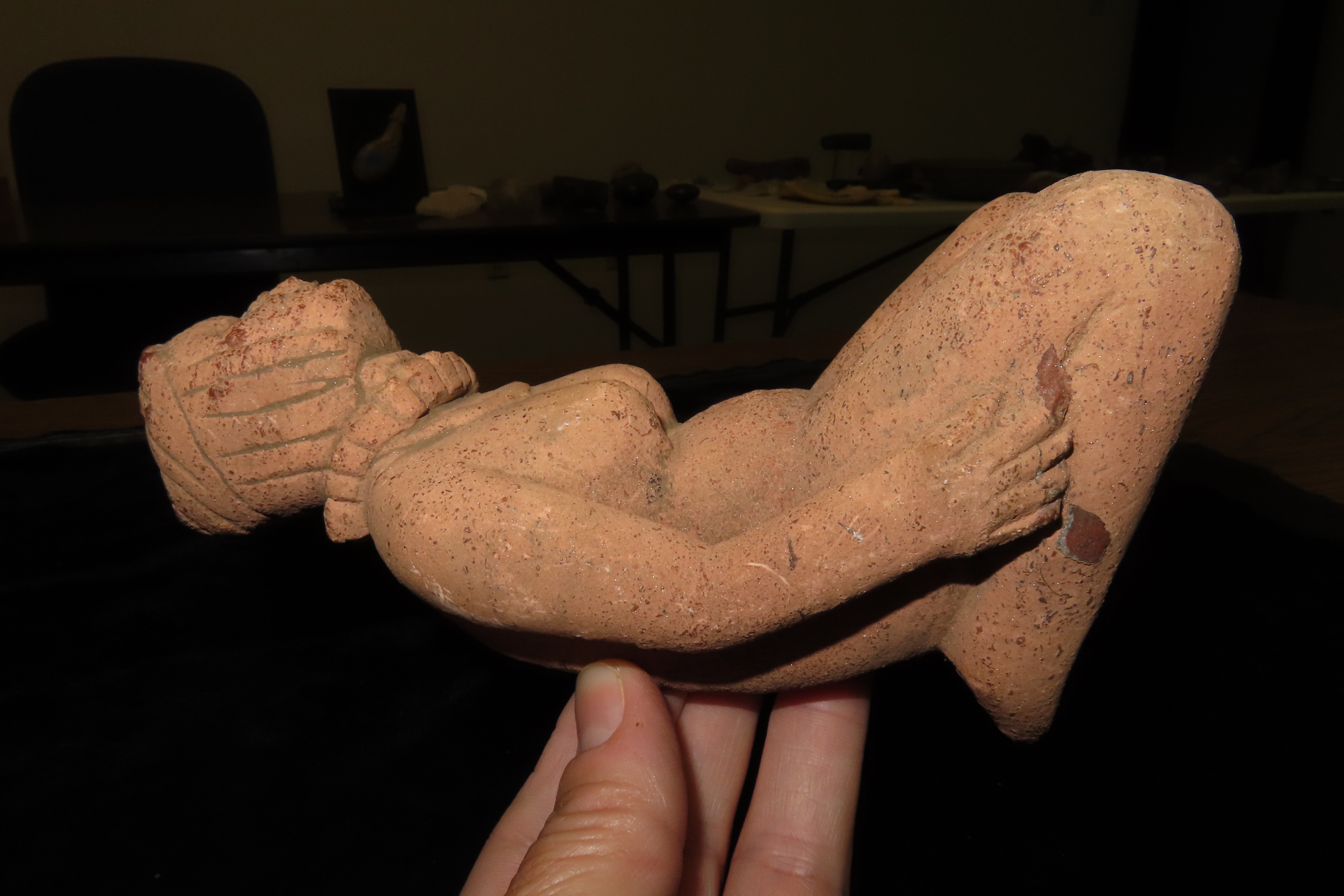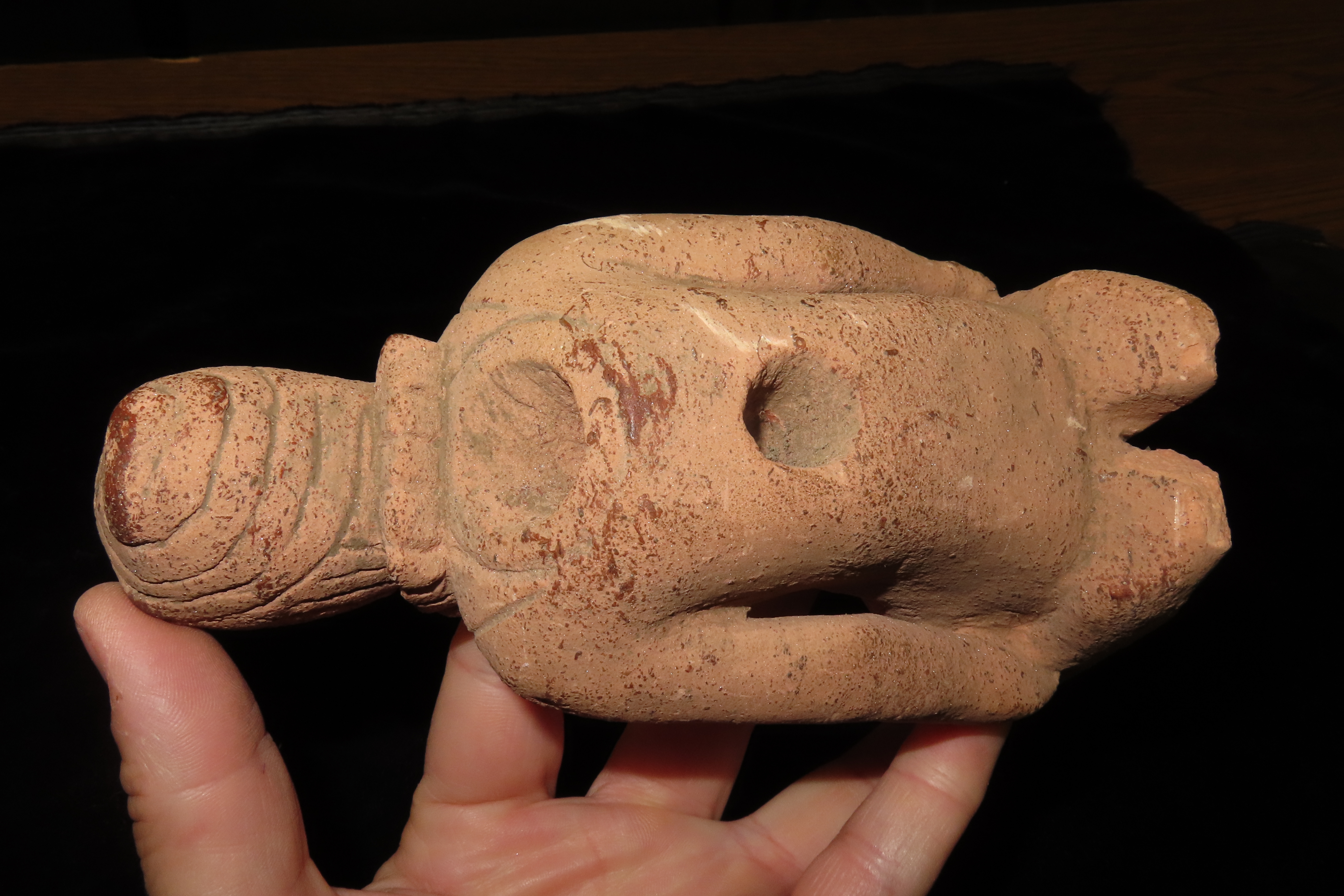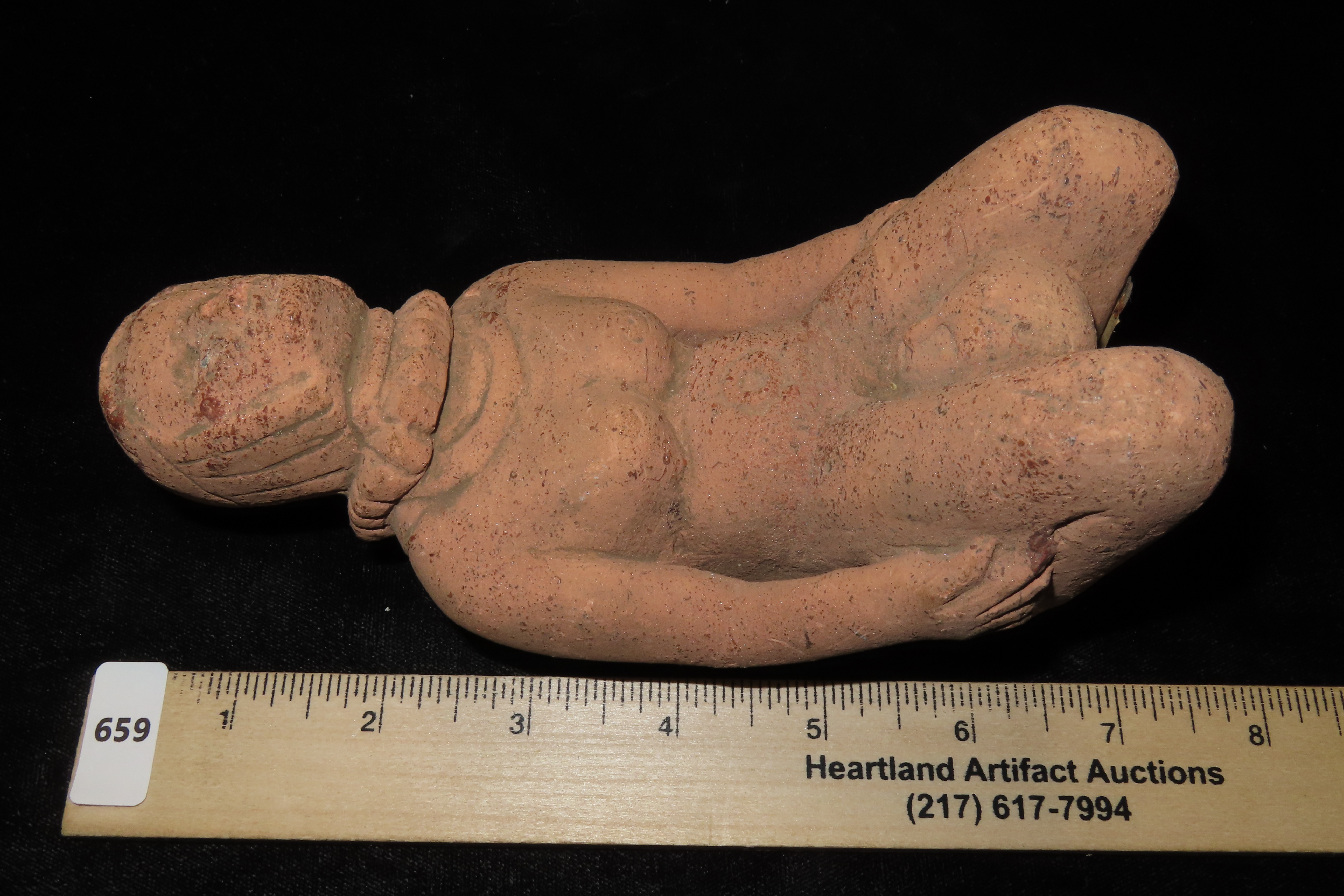 6 1/2″ x 3 1/4″ Hopewell Style Birthing Pipe, Human Giving Birth Effigy Pipe