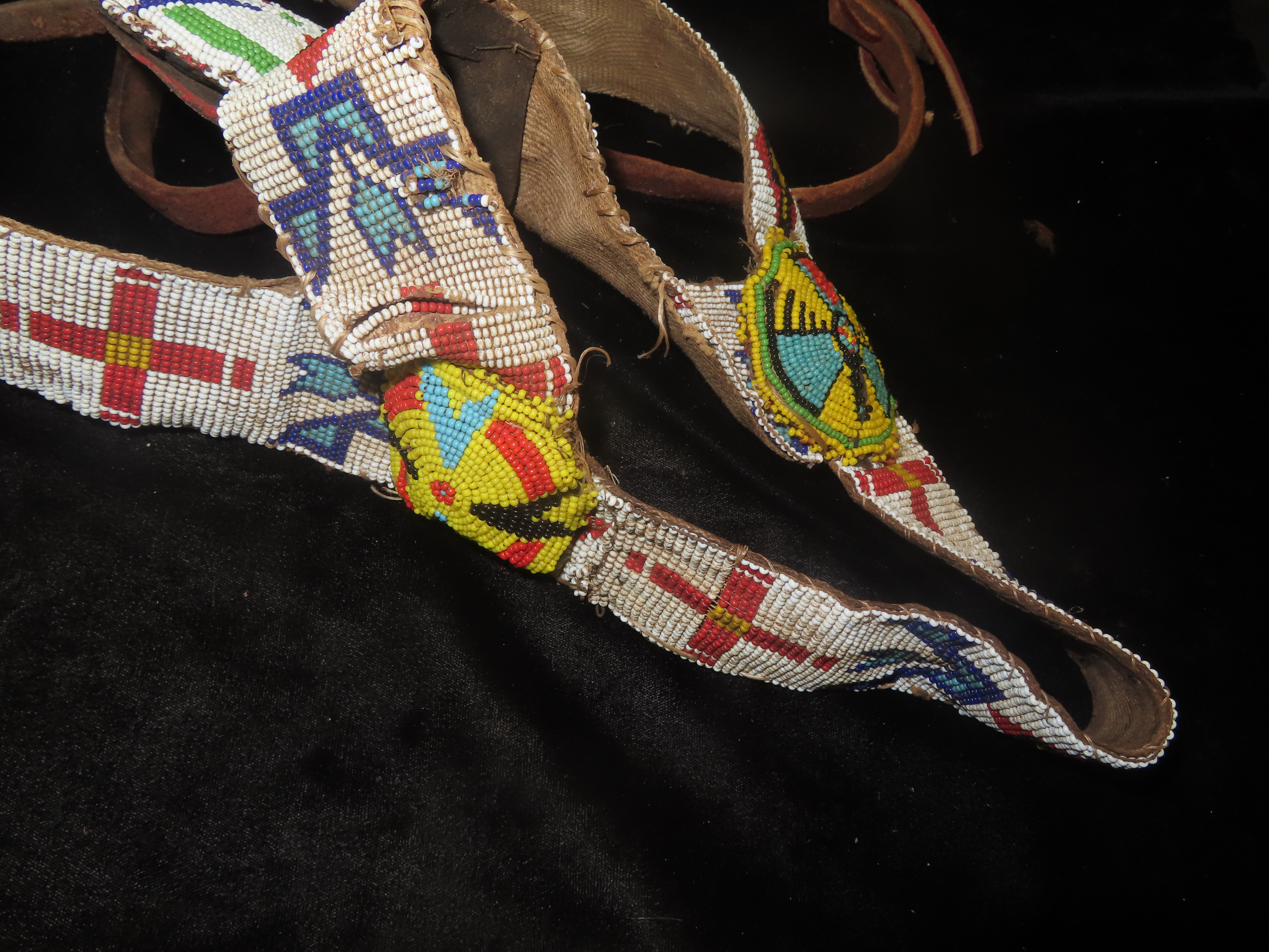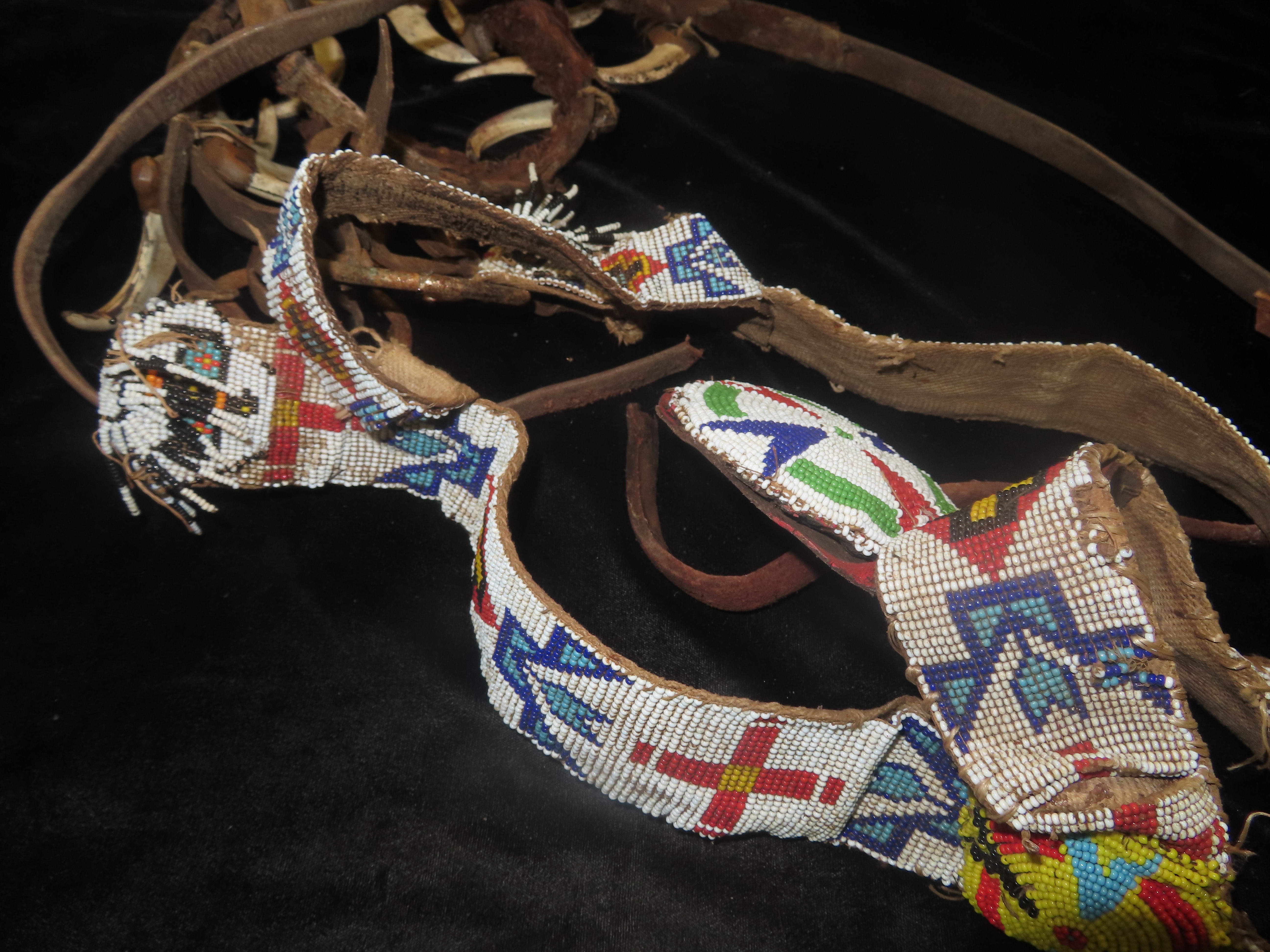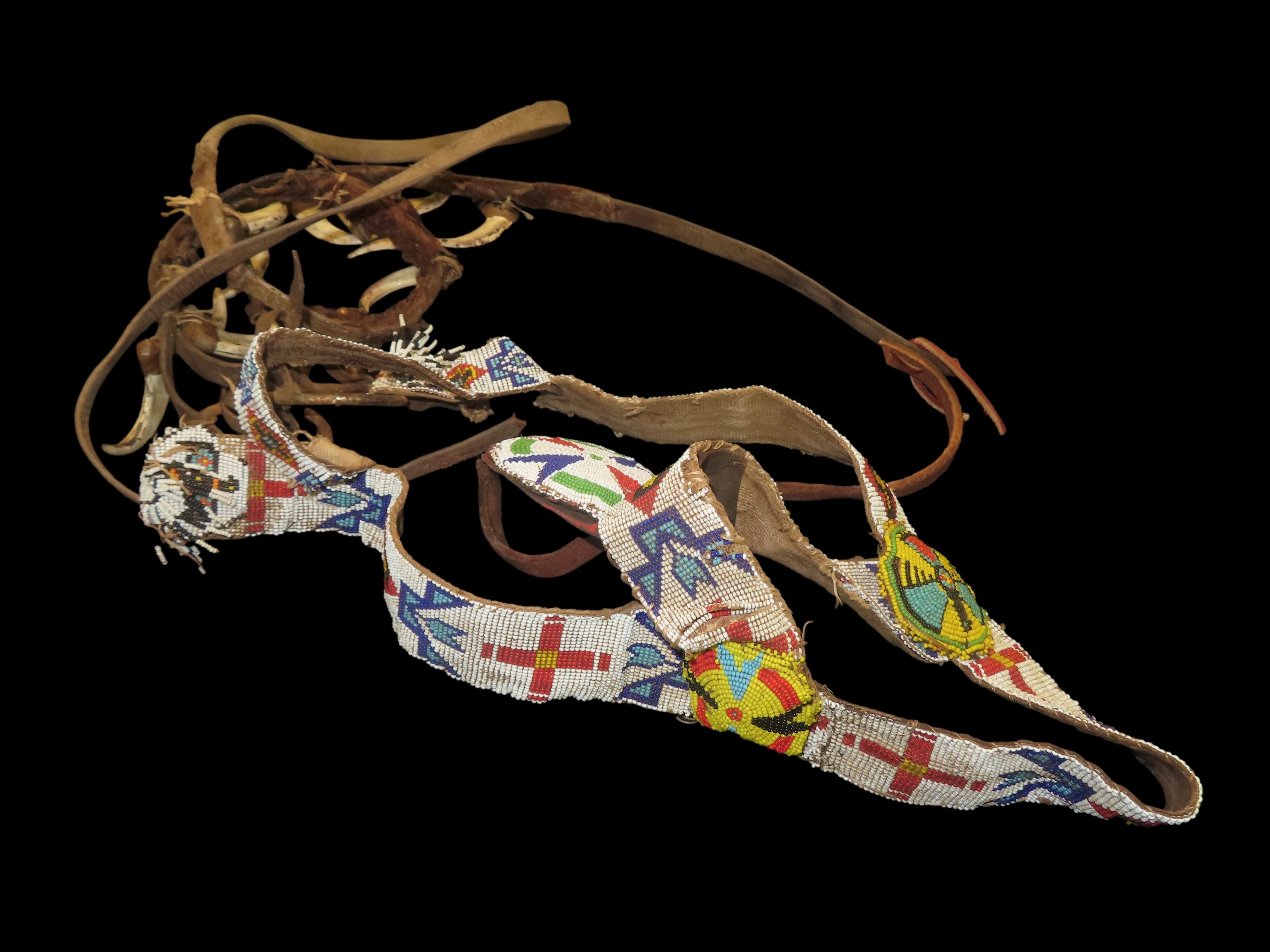 Antique Heavily Beaded Horse Bridle, featuring artificial bear teeth on the reins- Parade, Ceremonial, Movie Prop