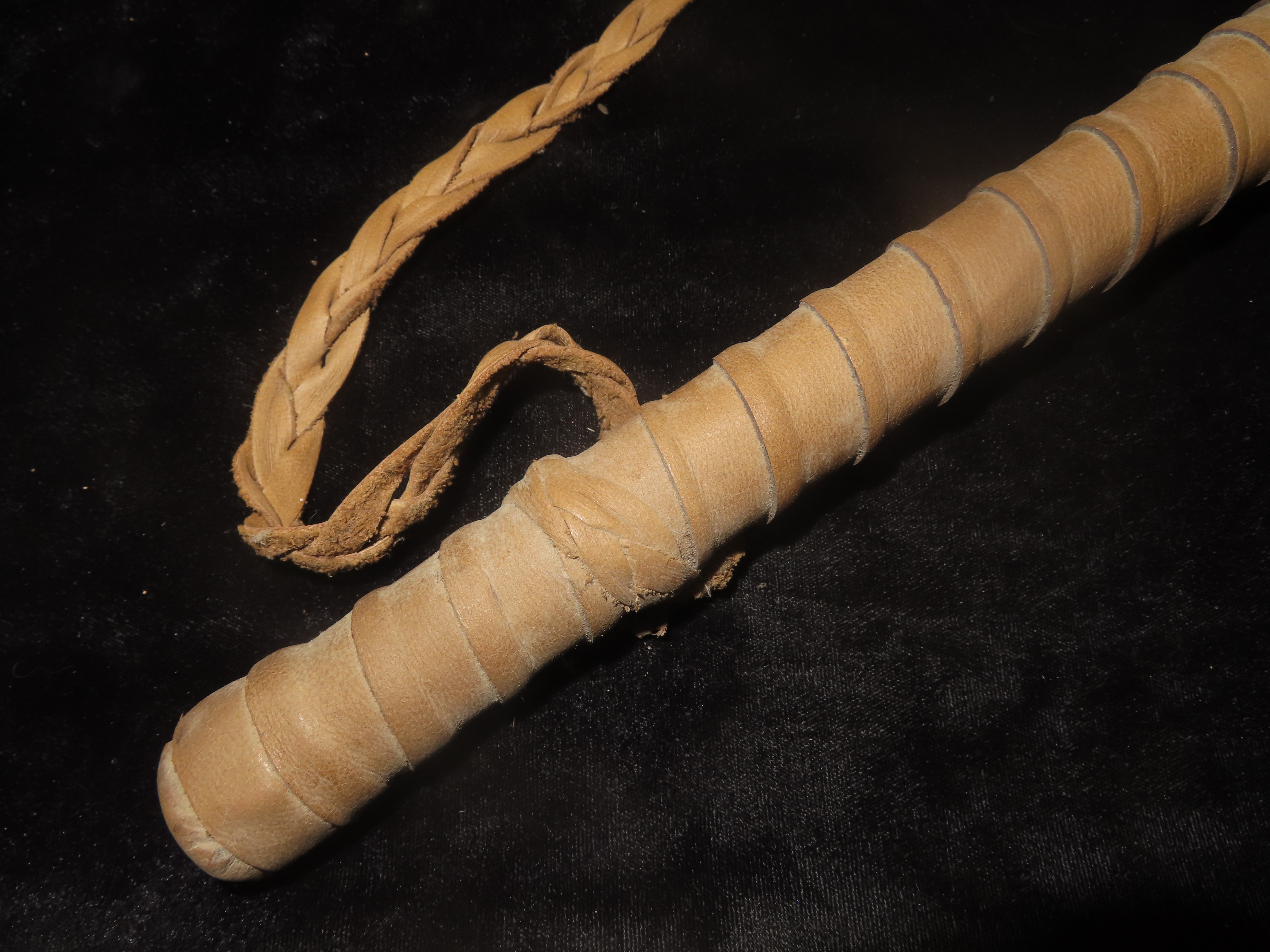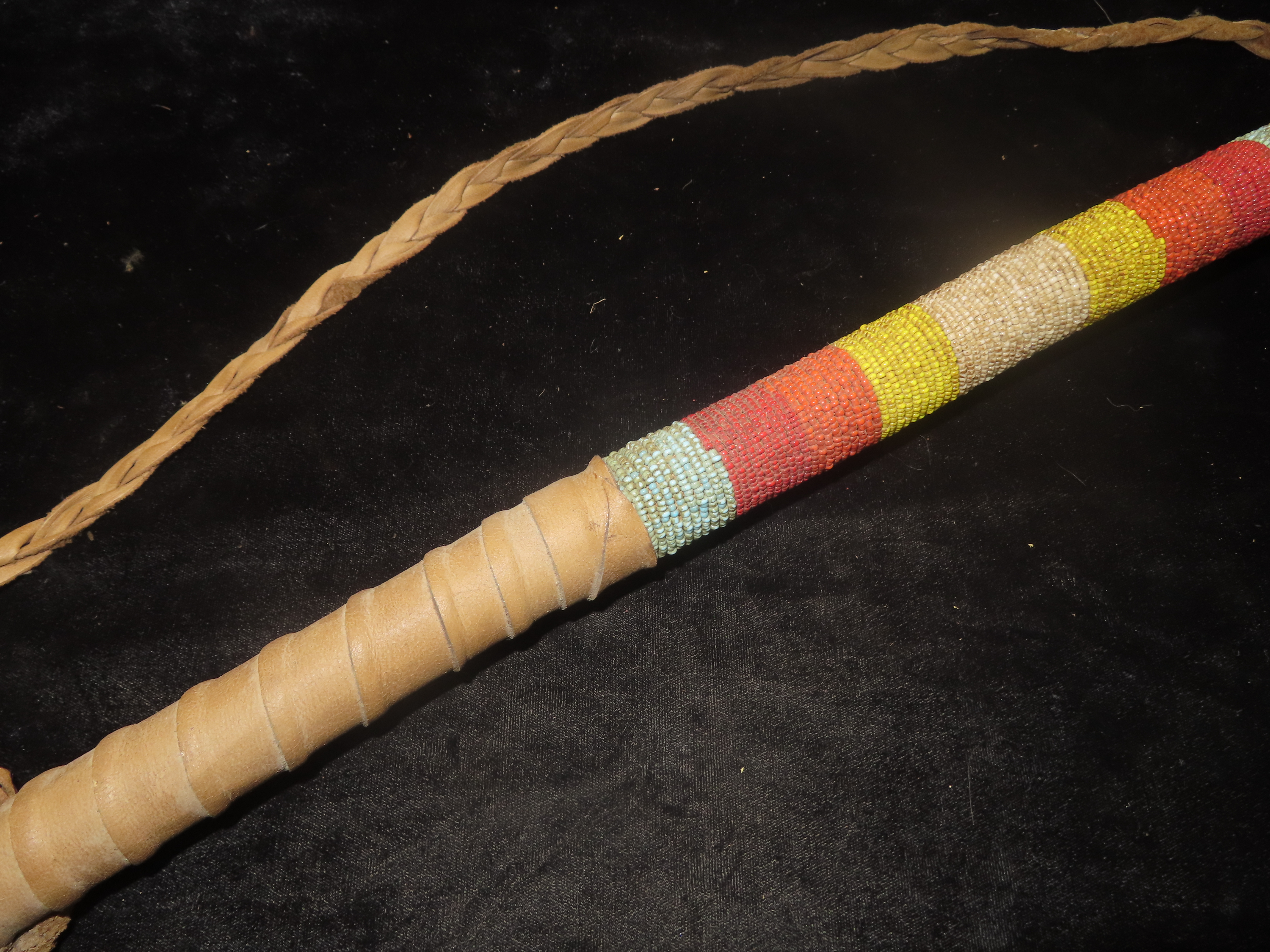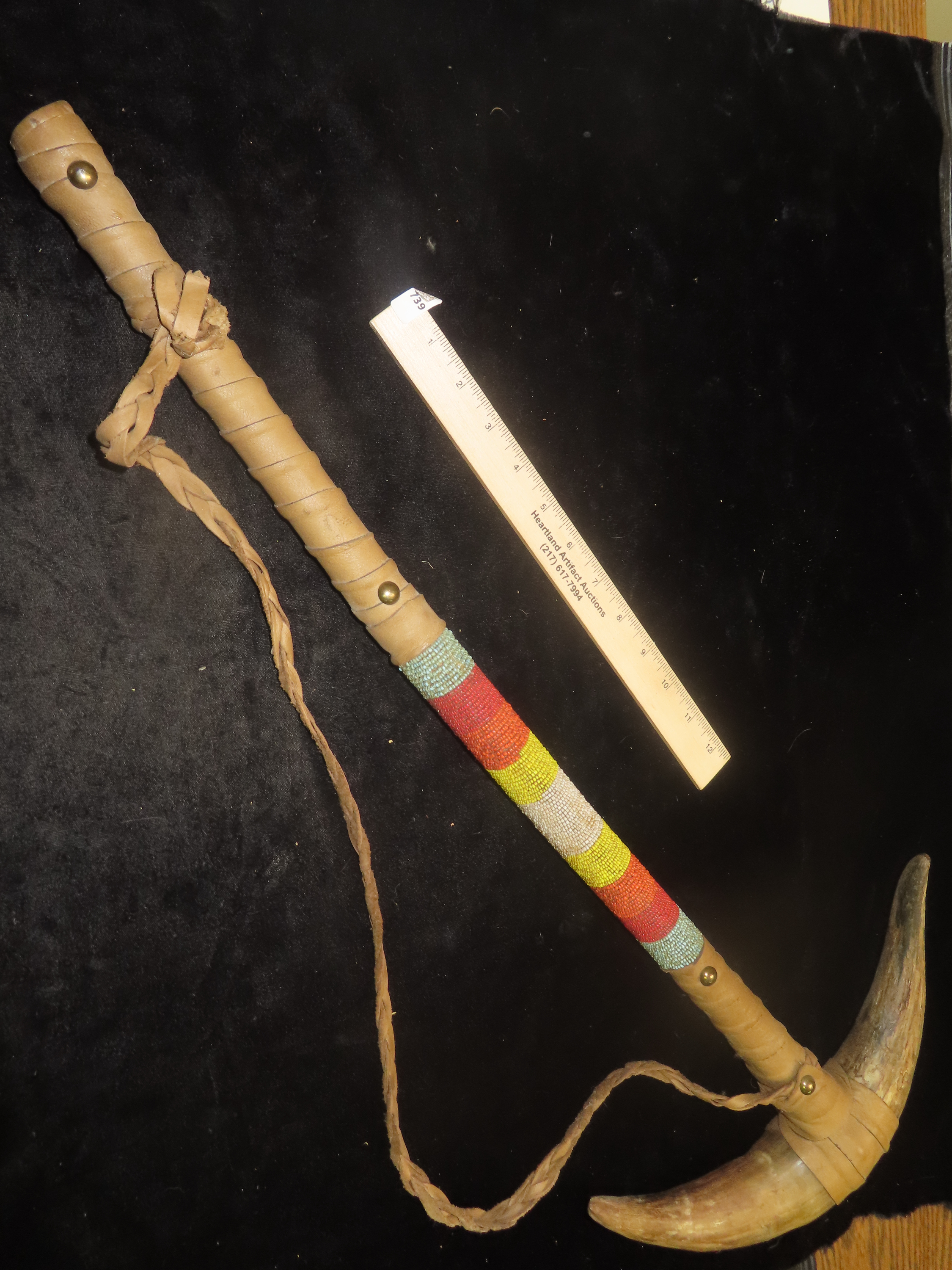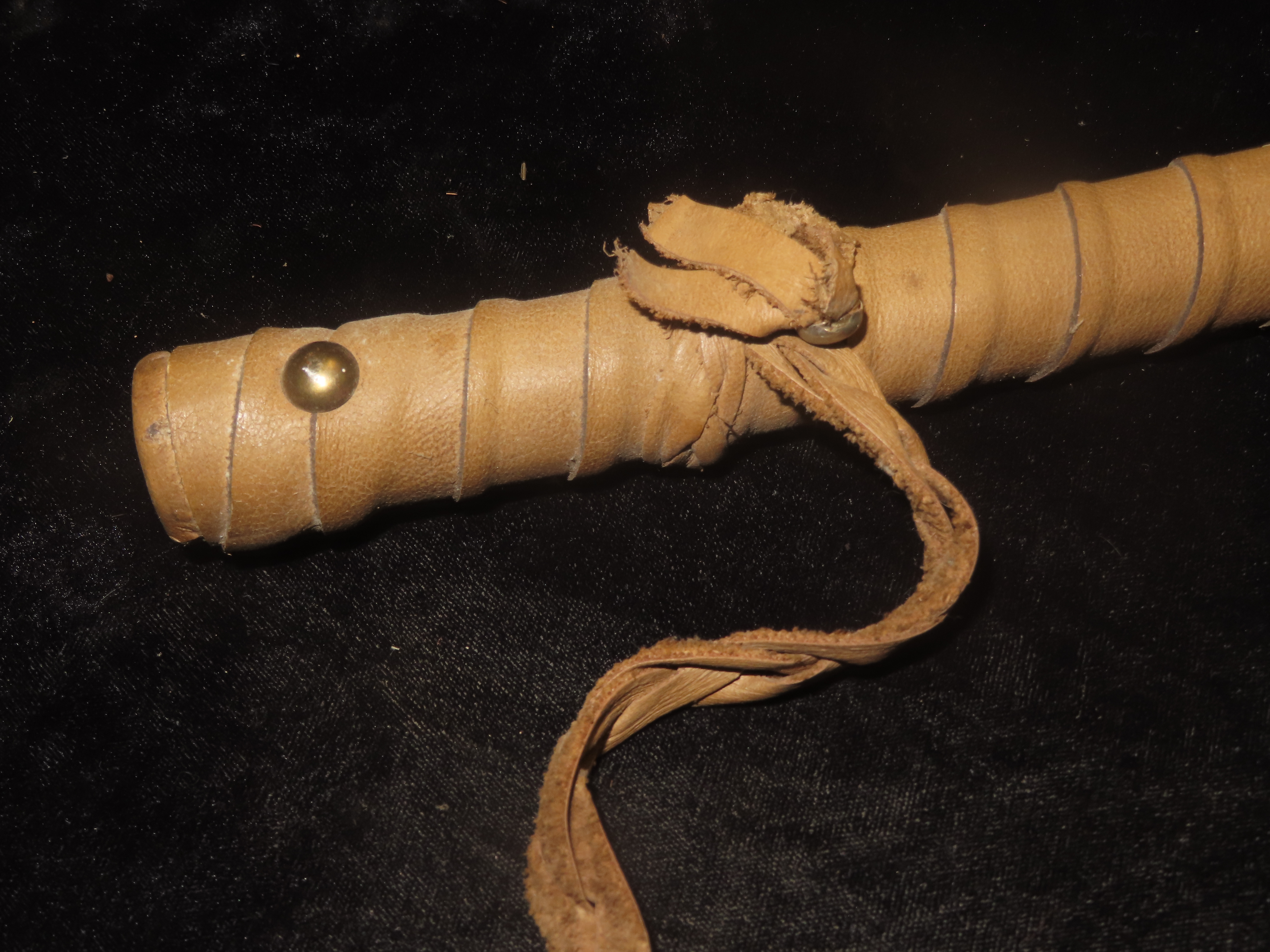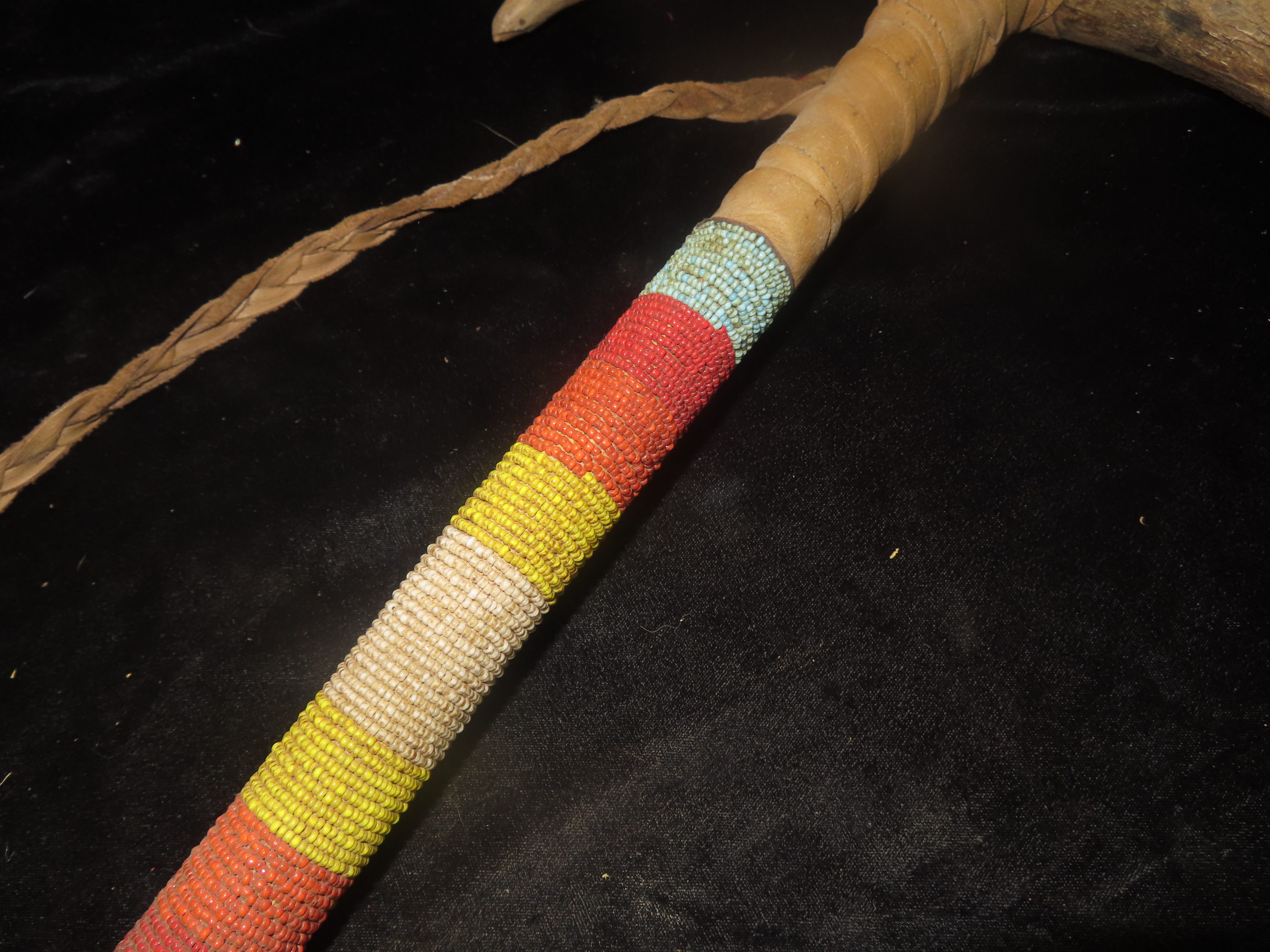 Antique Native American-style War Club- Leather wrapped, Steer horns, and Beadwork-Ceremonial, Decorative, Re-enactment