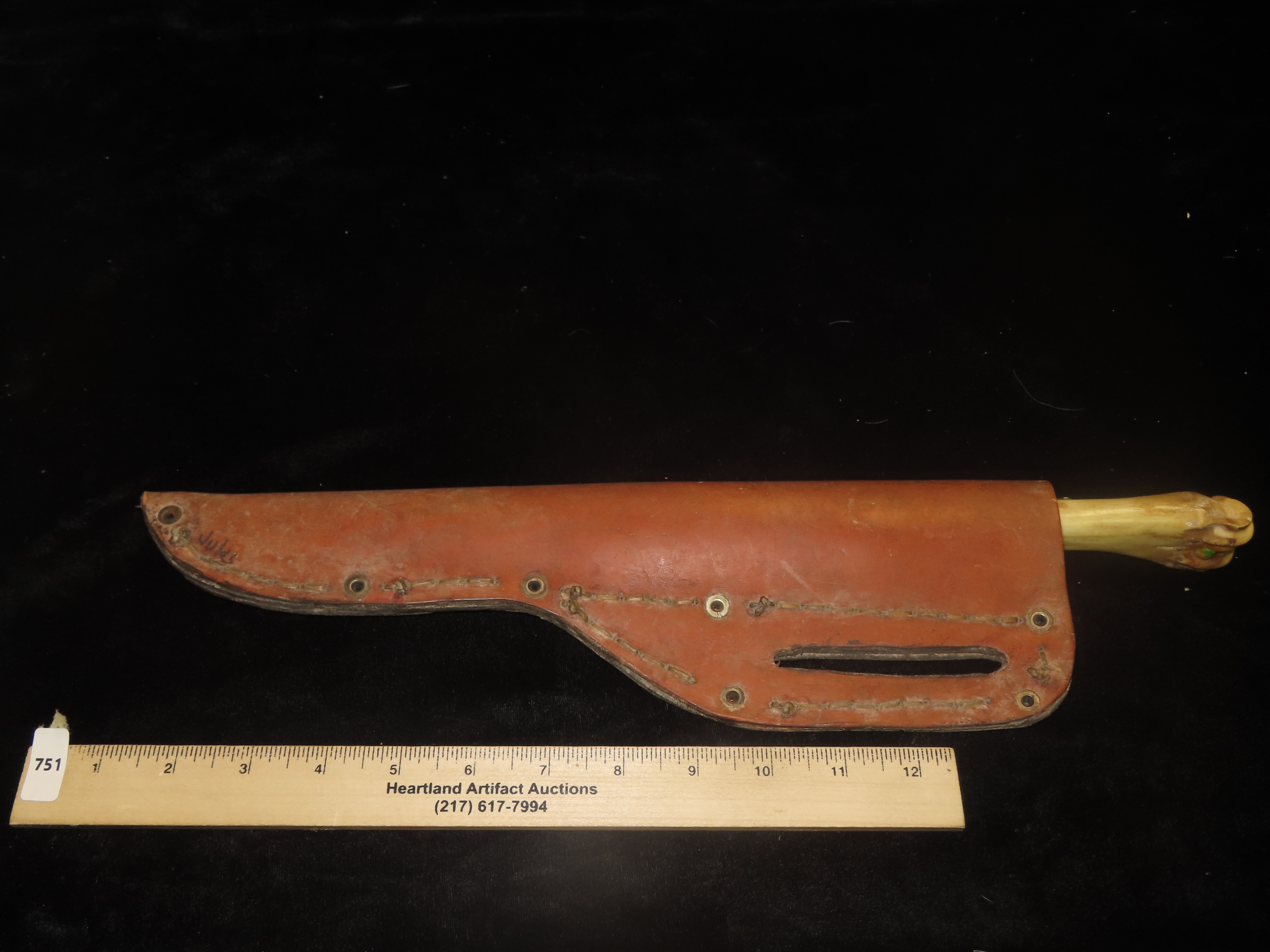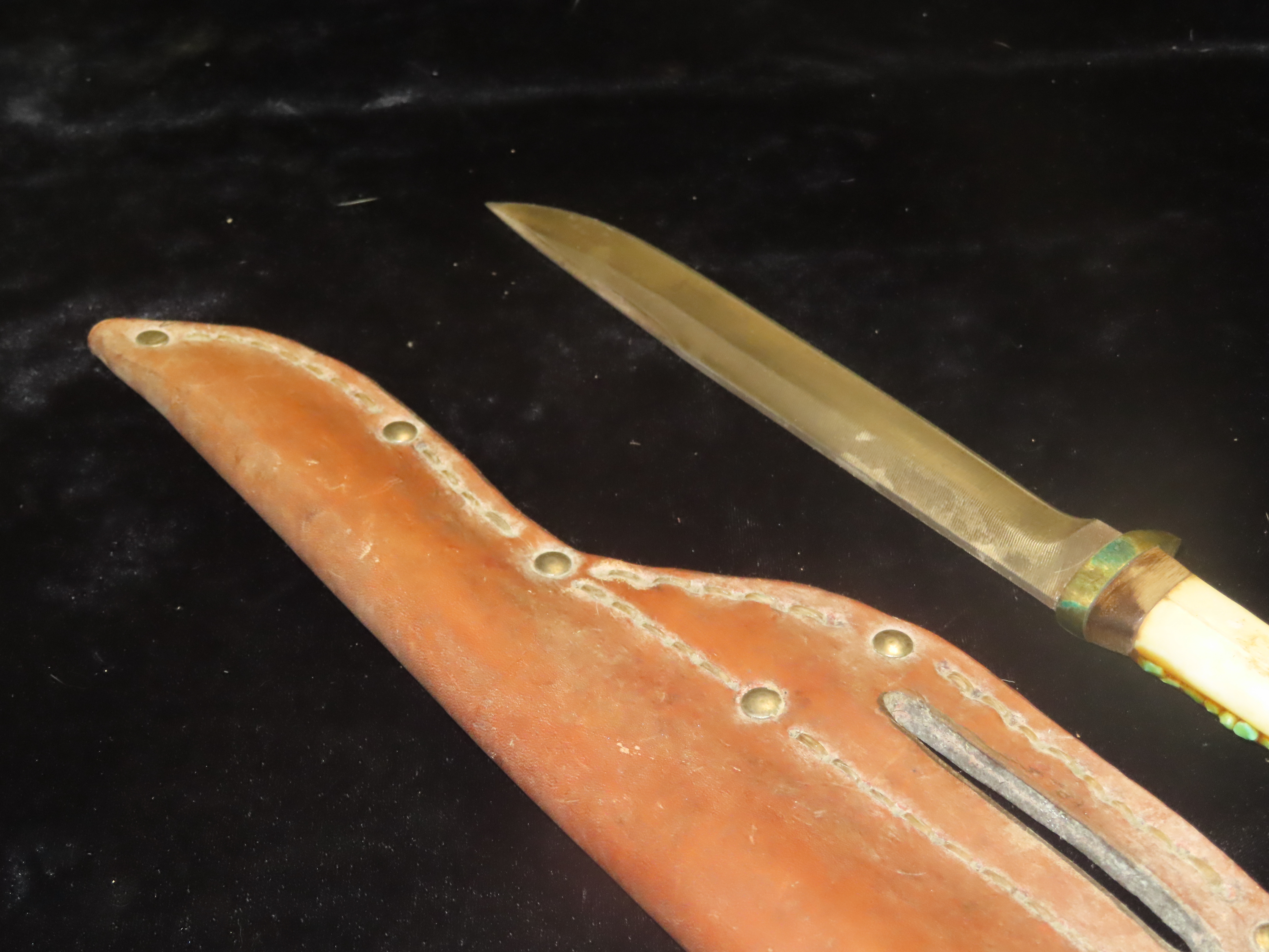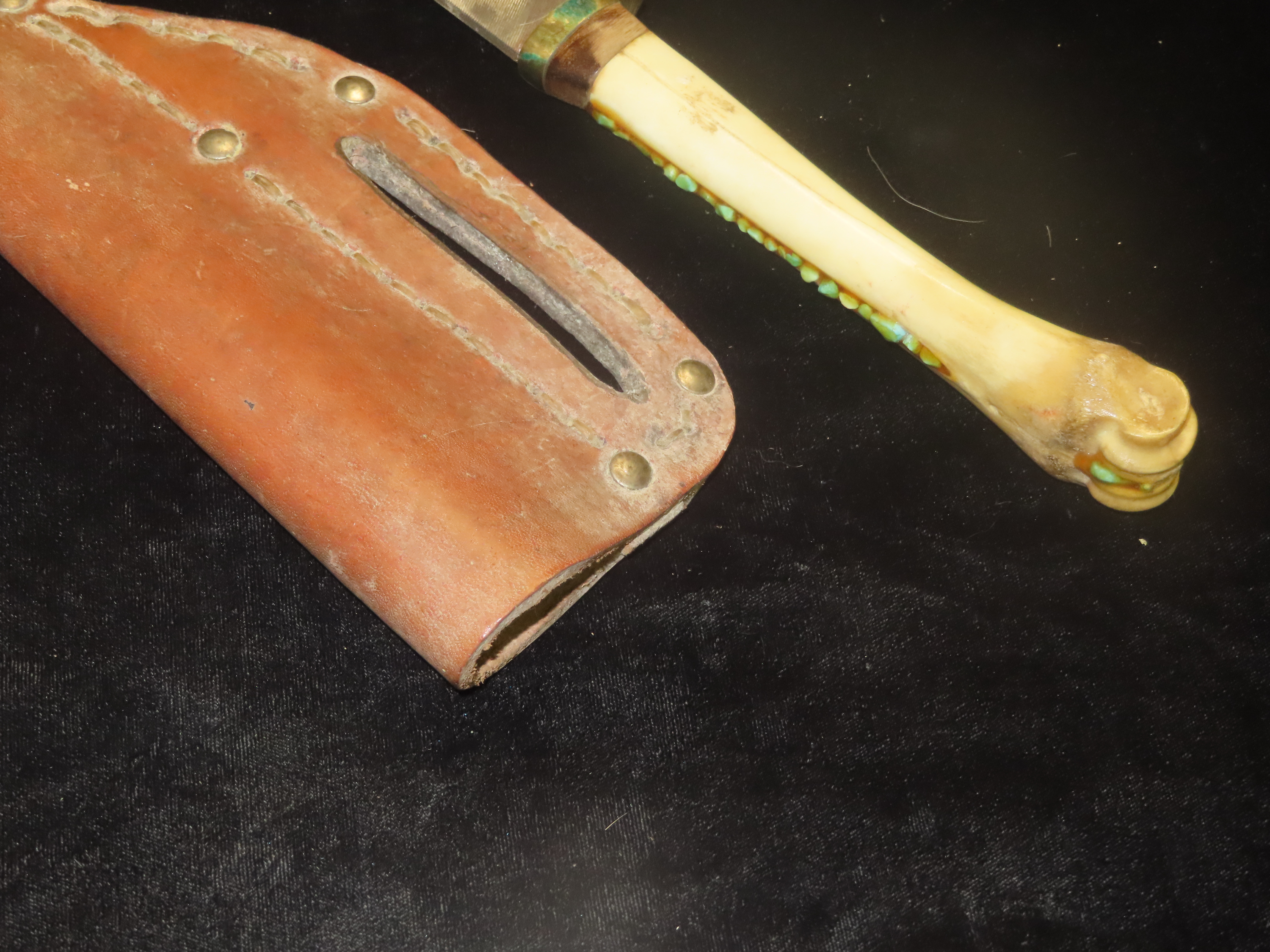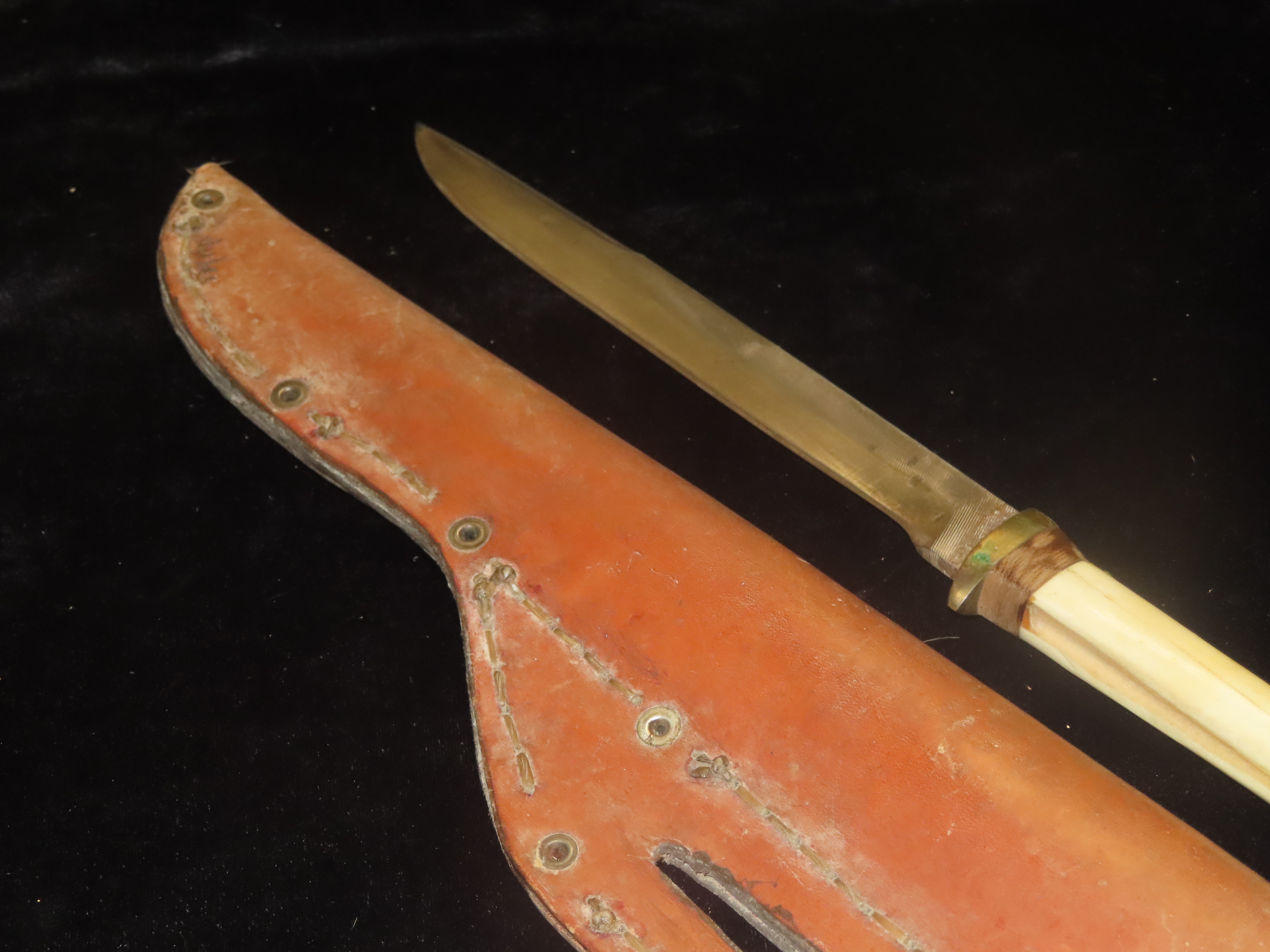 Antique Handmade Long Knife Deer Leg Bone with Leather Sheath