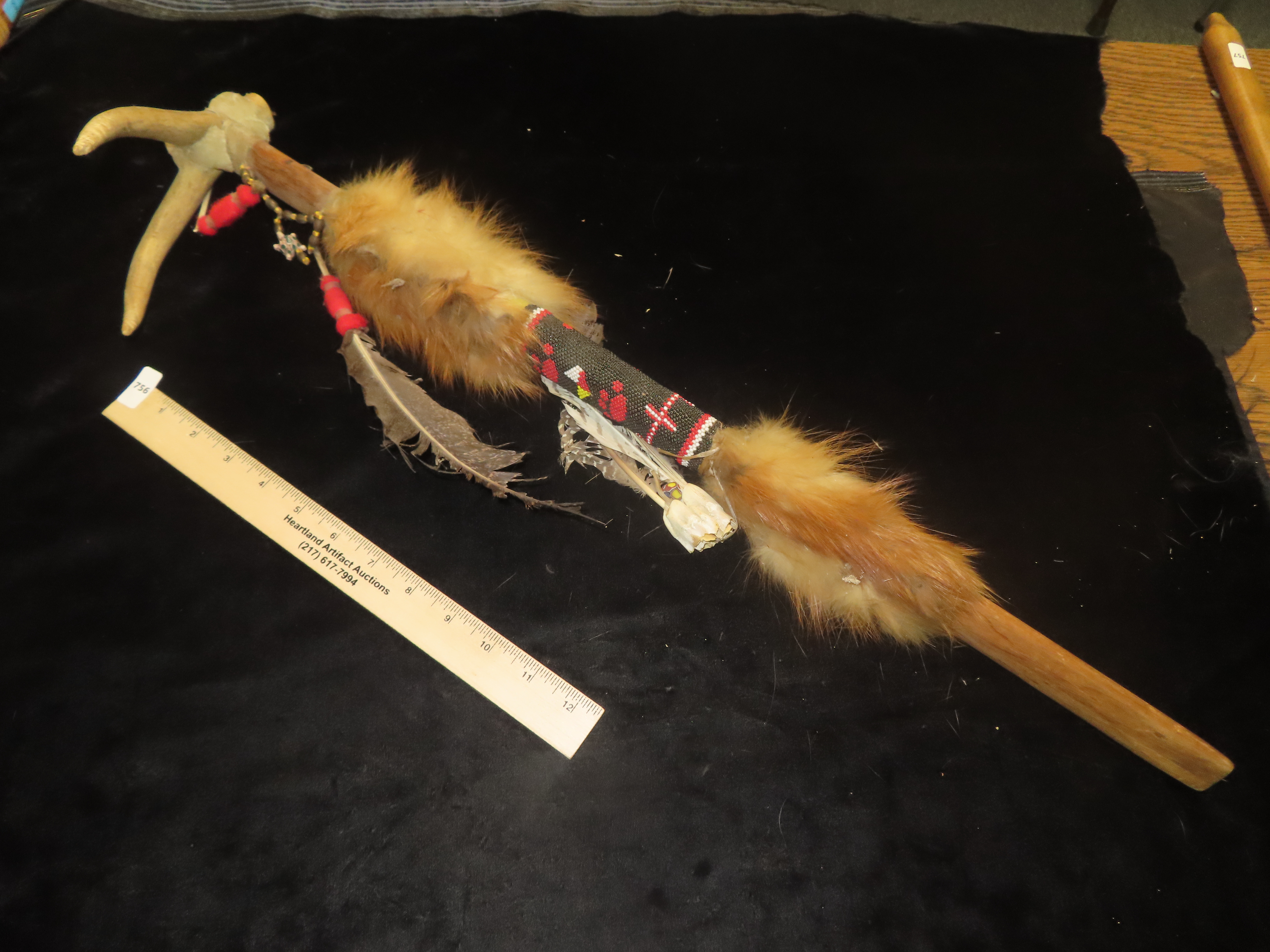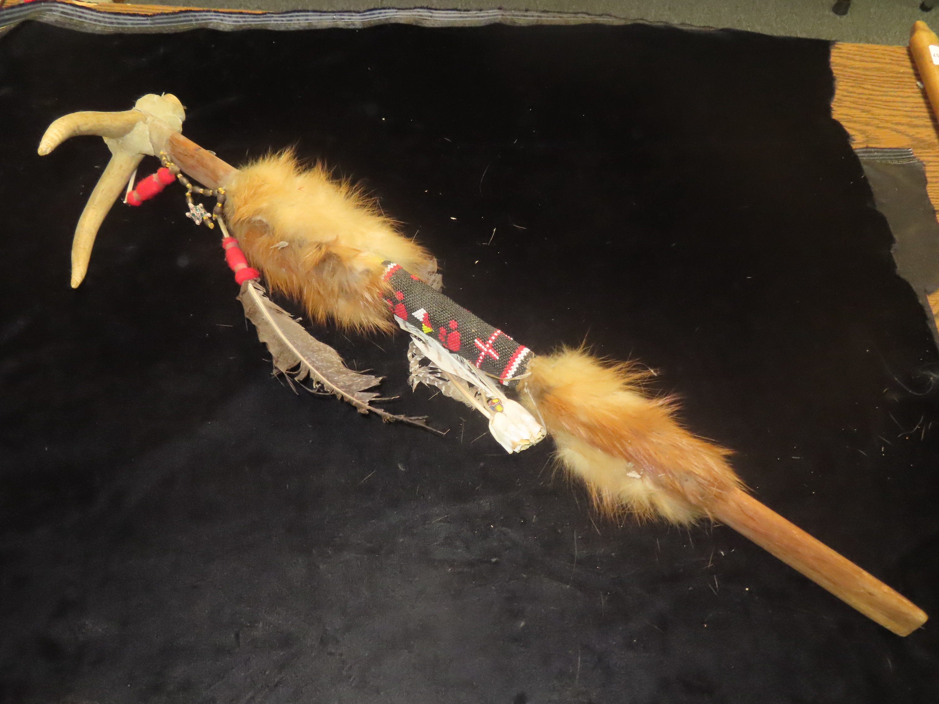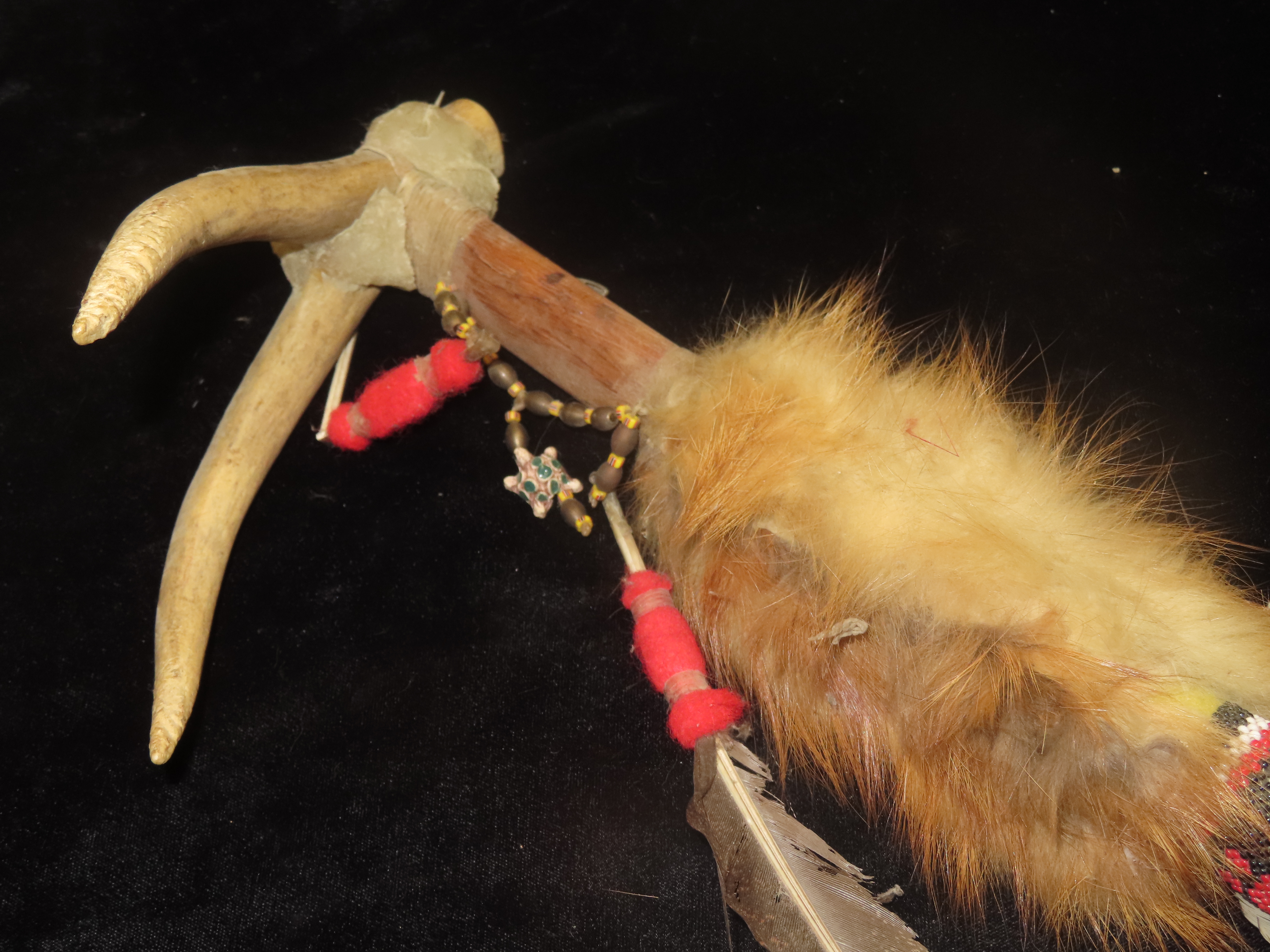Native American Style Decorated Pipe- Antlers, Teeth, Fur, and Feathers