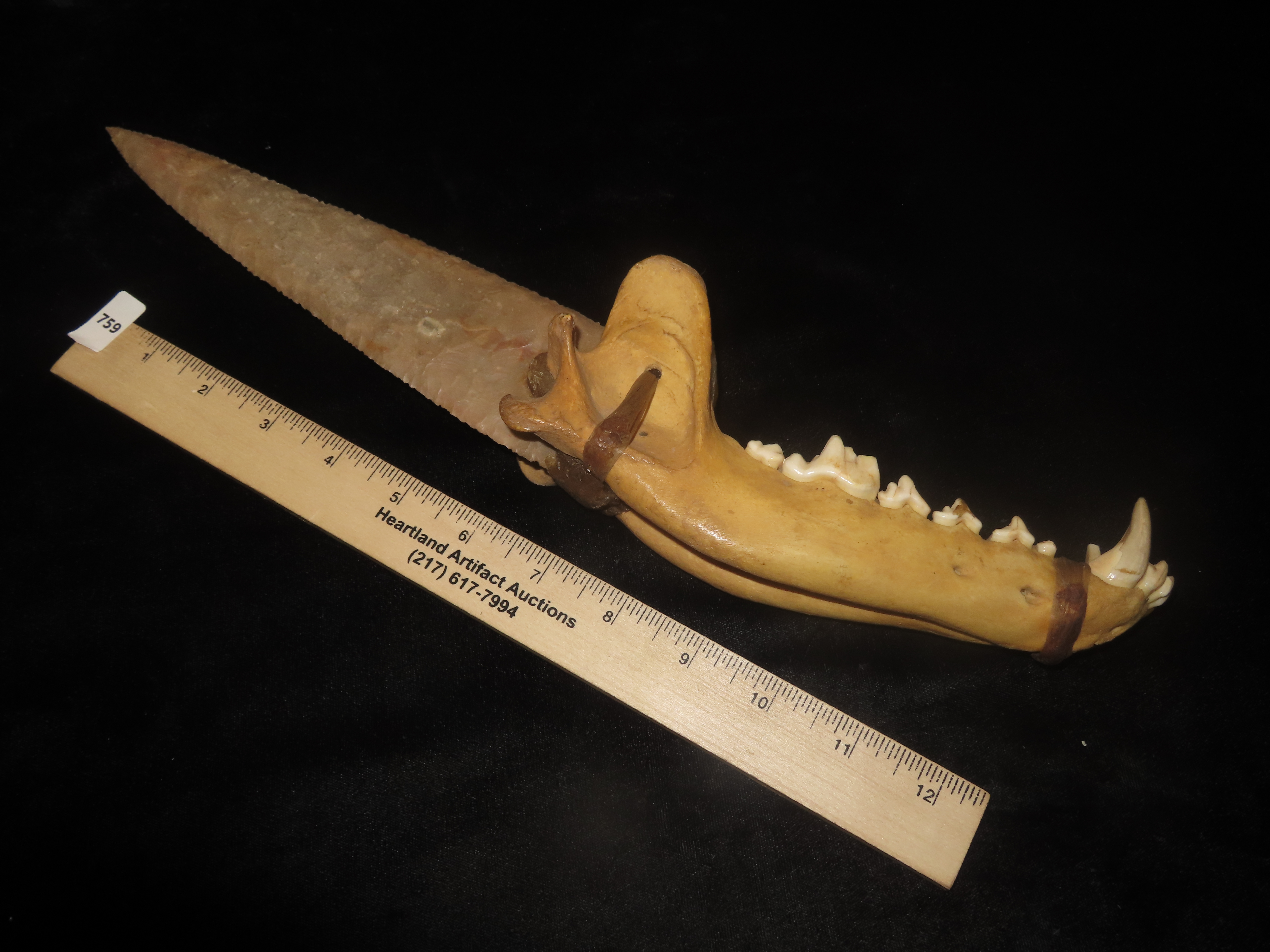 Antique Wolf Jawbone Knife, w/Grey Ghost Blade-Decorative, Re-Enactment, Rendezvous, Movie Prop