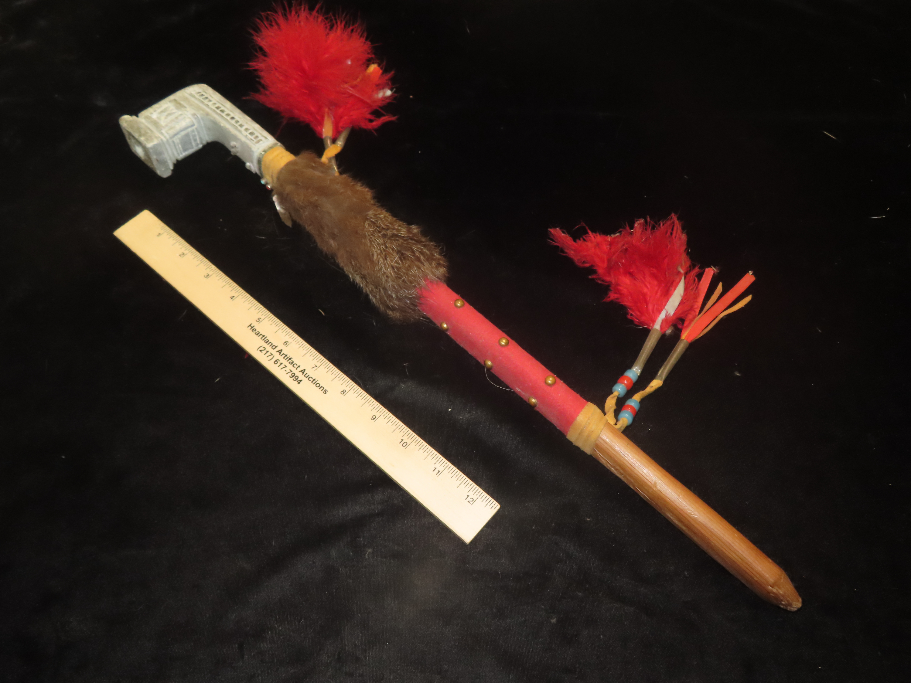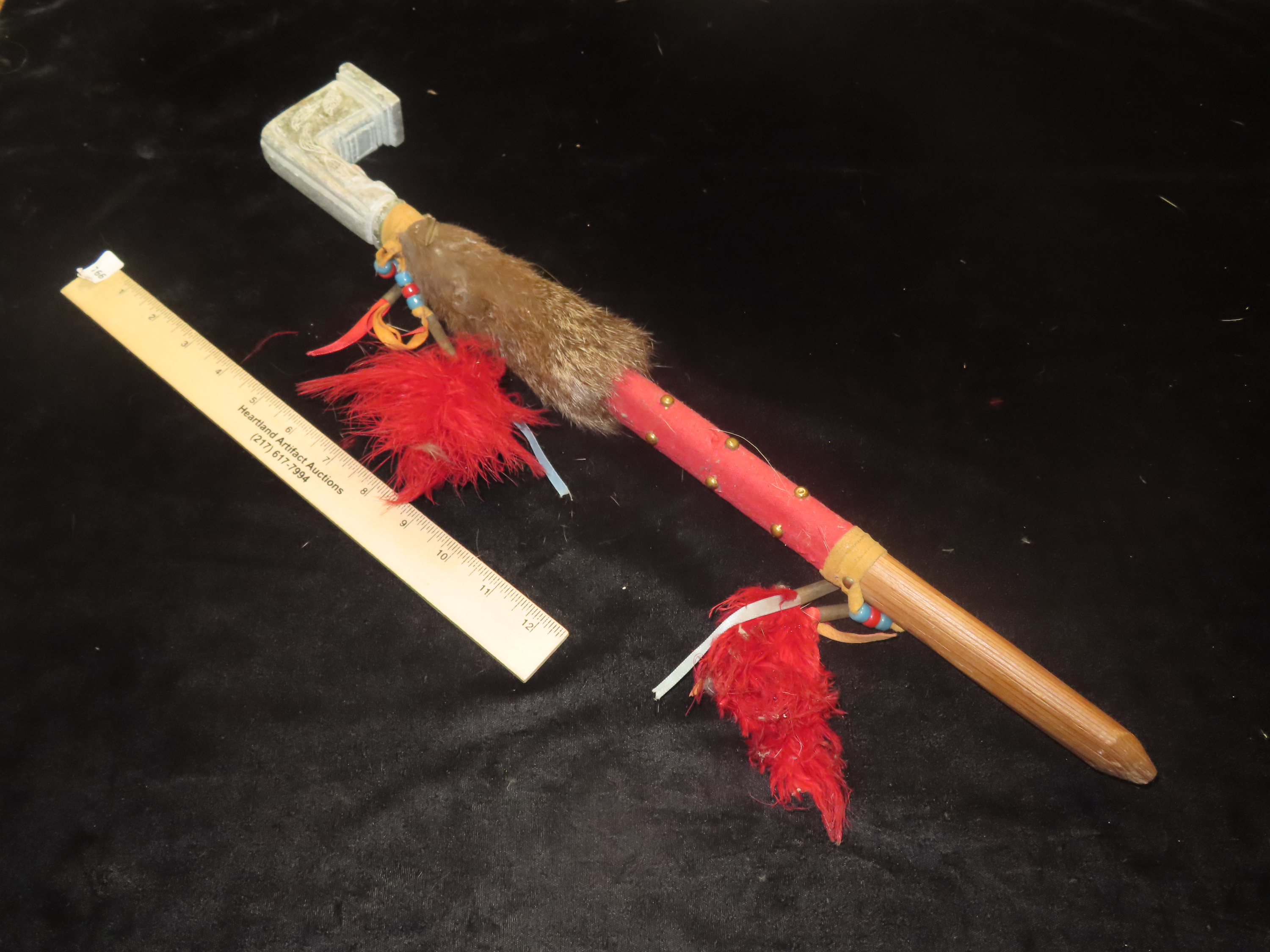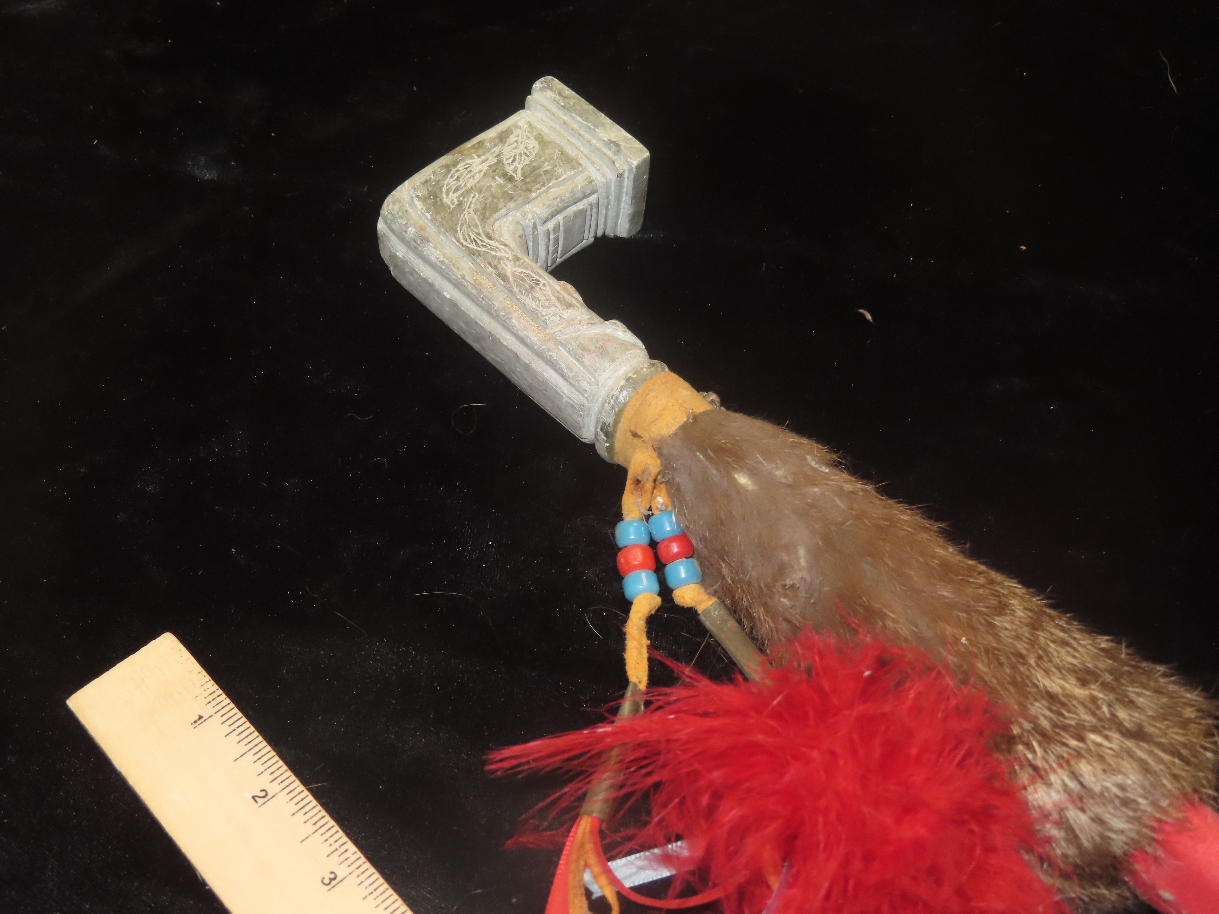 Antique Native American Style Steatite Pipe w/ Decorated Stem