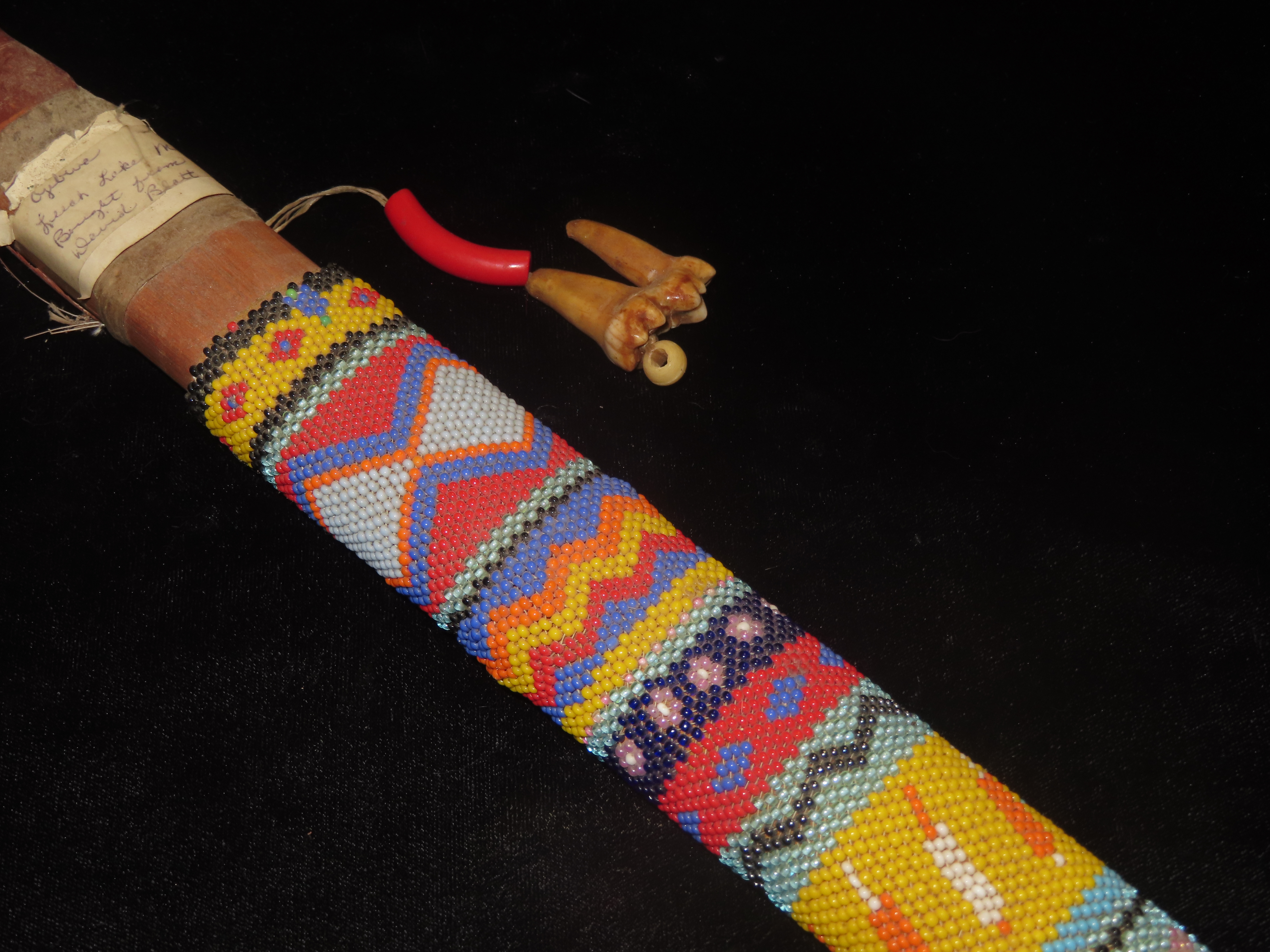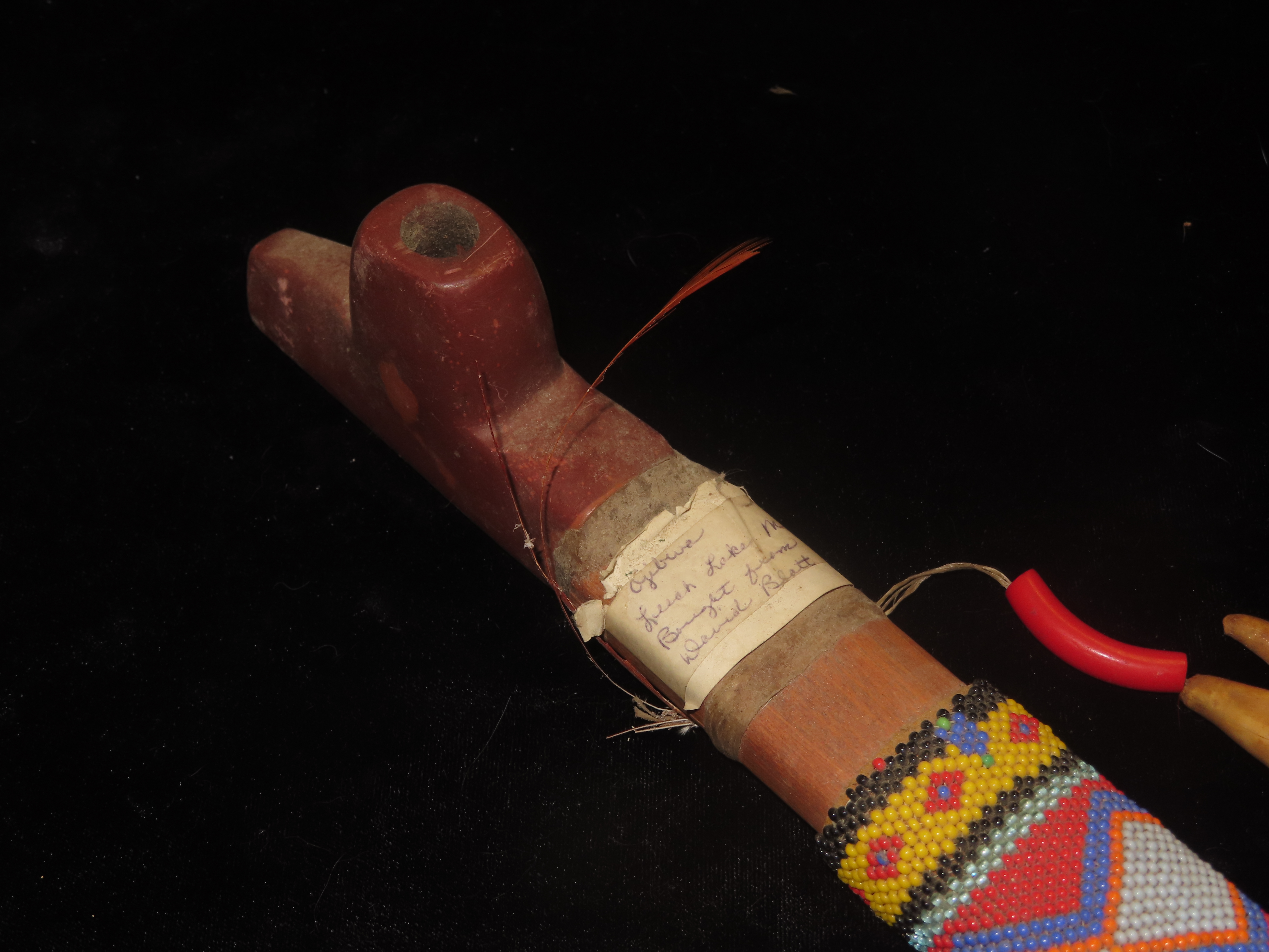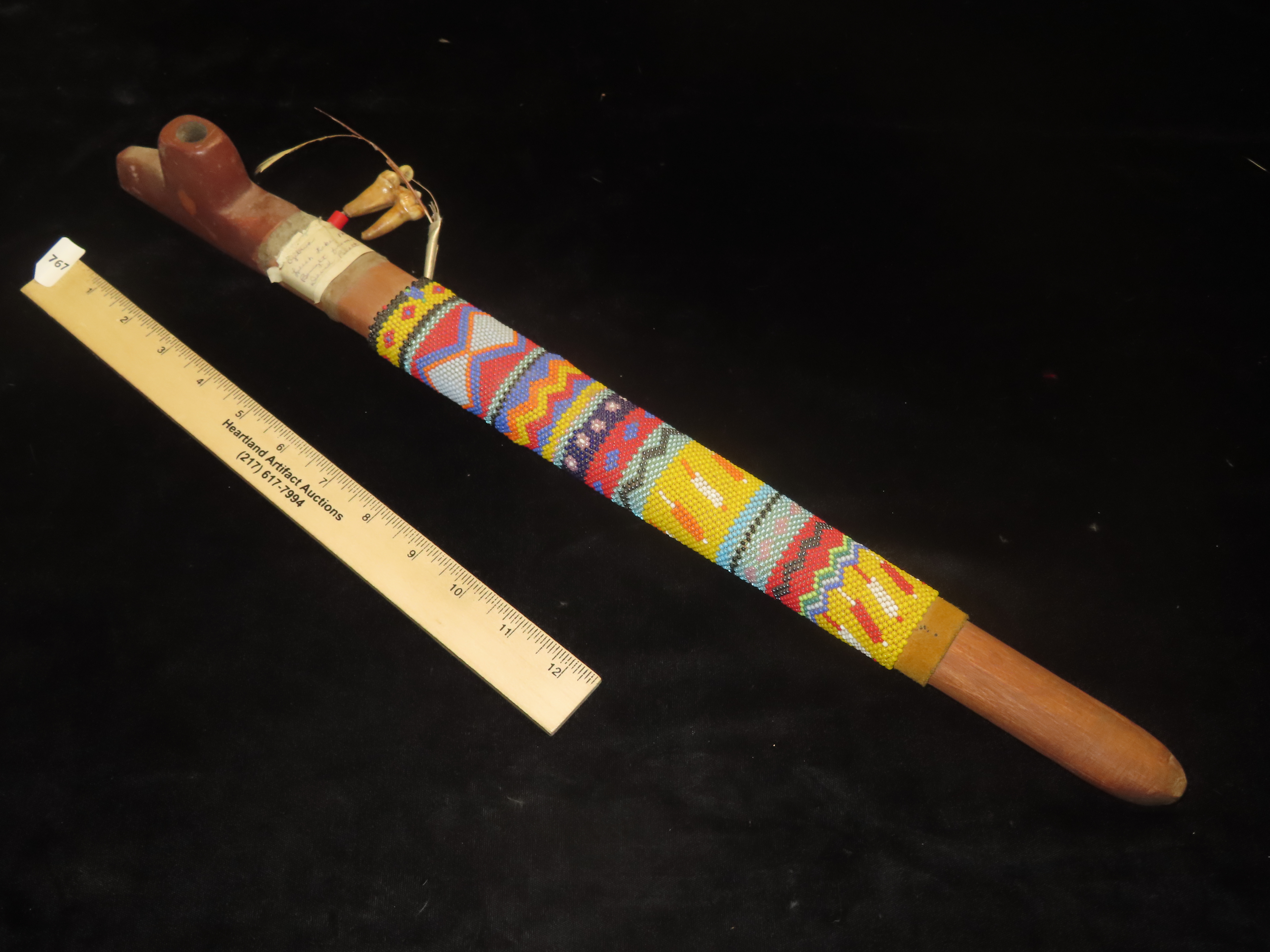 Antique Native American Style Catlinite Historic Pipe with Elaborately Beaded Stem