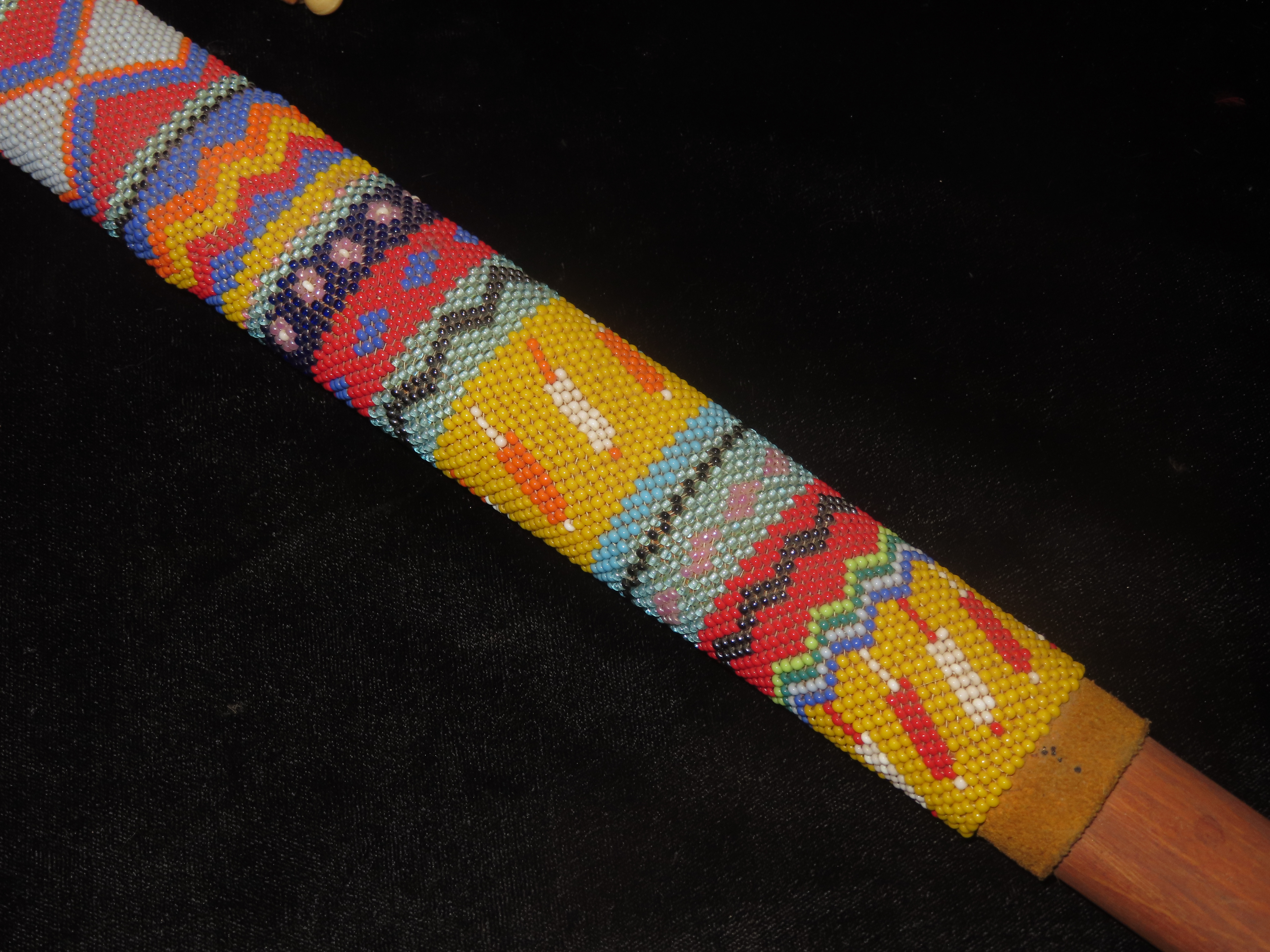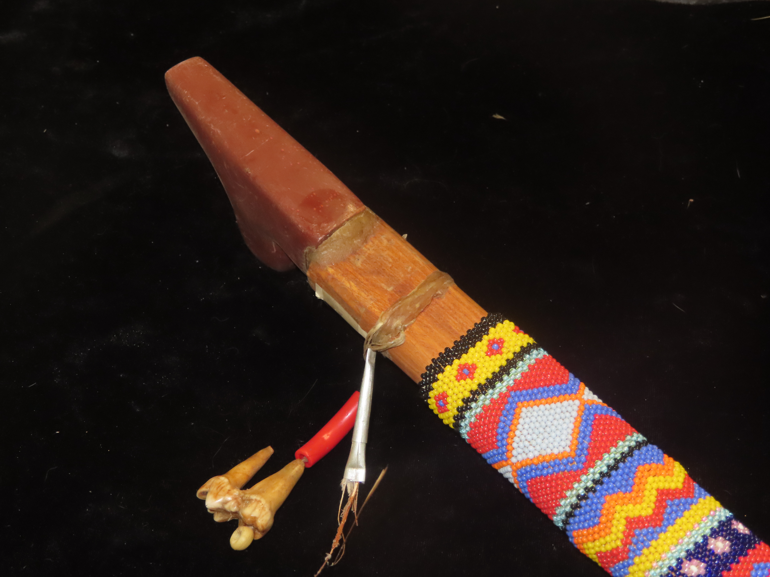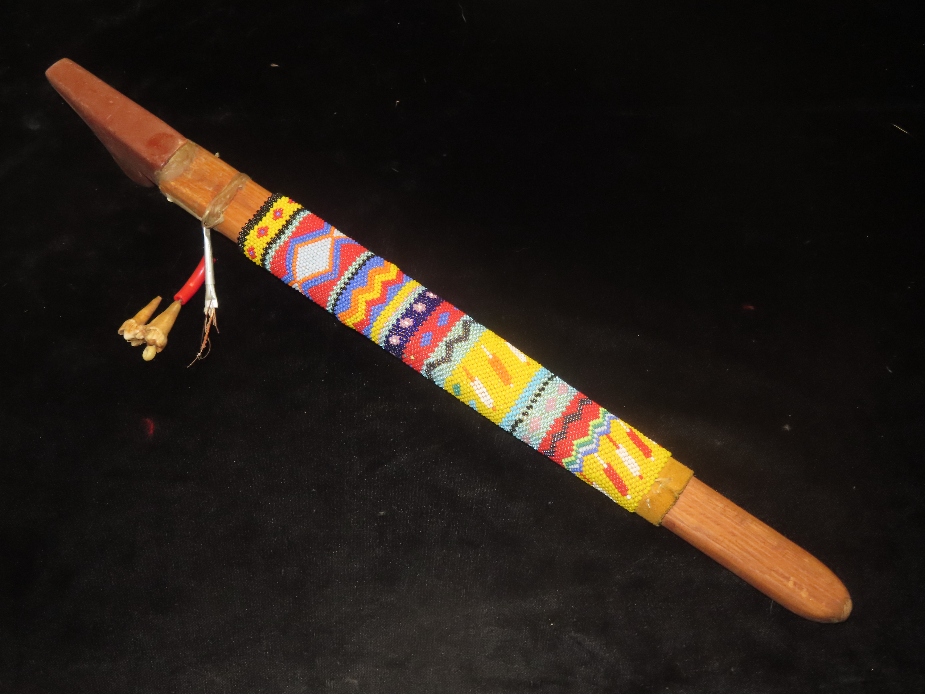 Antique Native American Style Catlinite Historic Pipe with Elaborately Beaded Stem