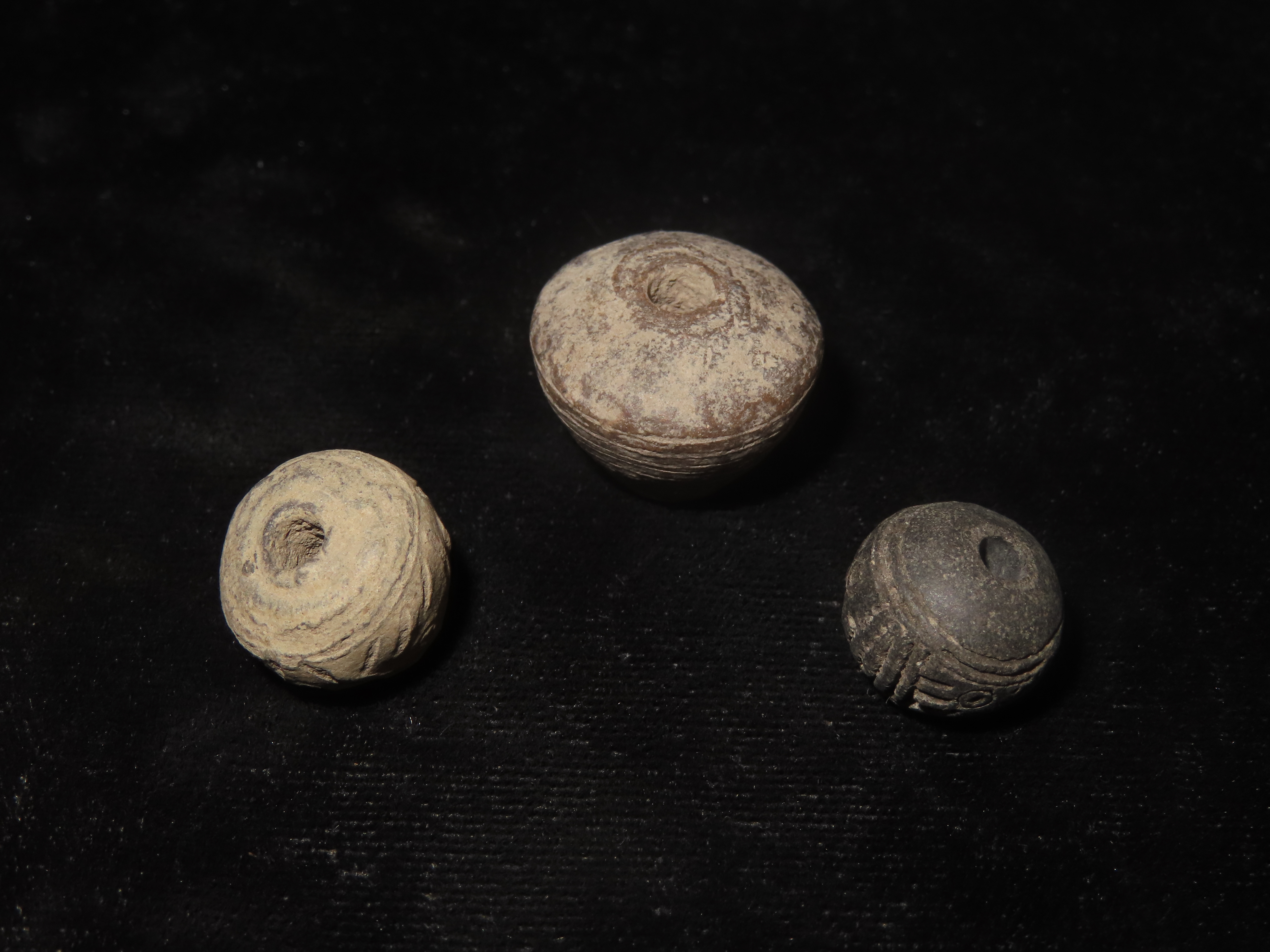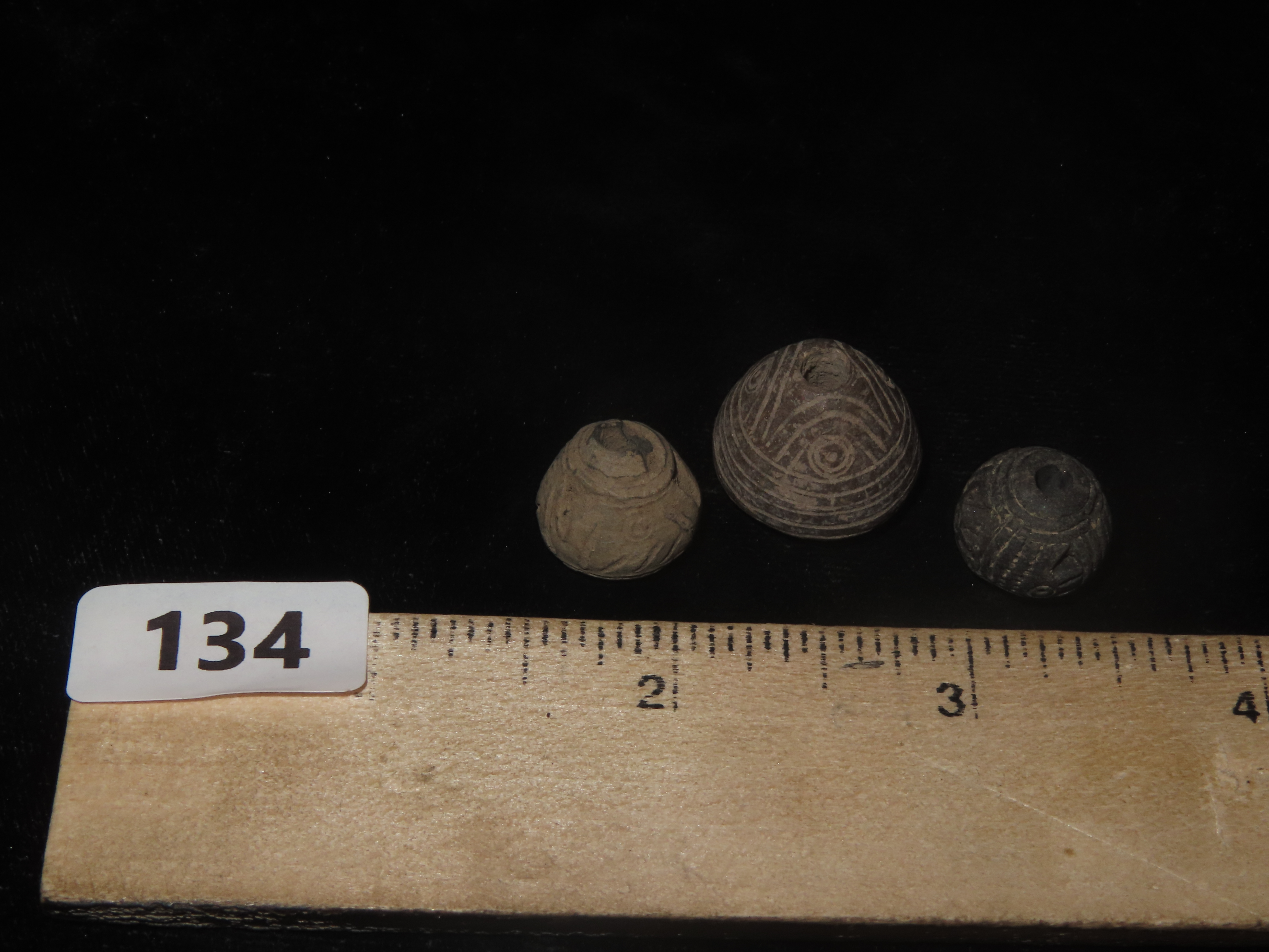 Effigy Bead Set of 3 Pre Columbian Bead, Nicely Engraved Machalilla Culture, 1500 BCE to 1100 BCE Found in Ecuador