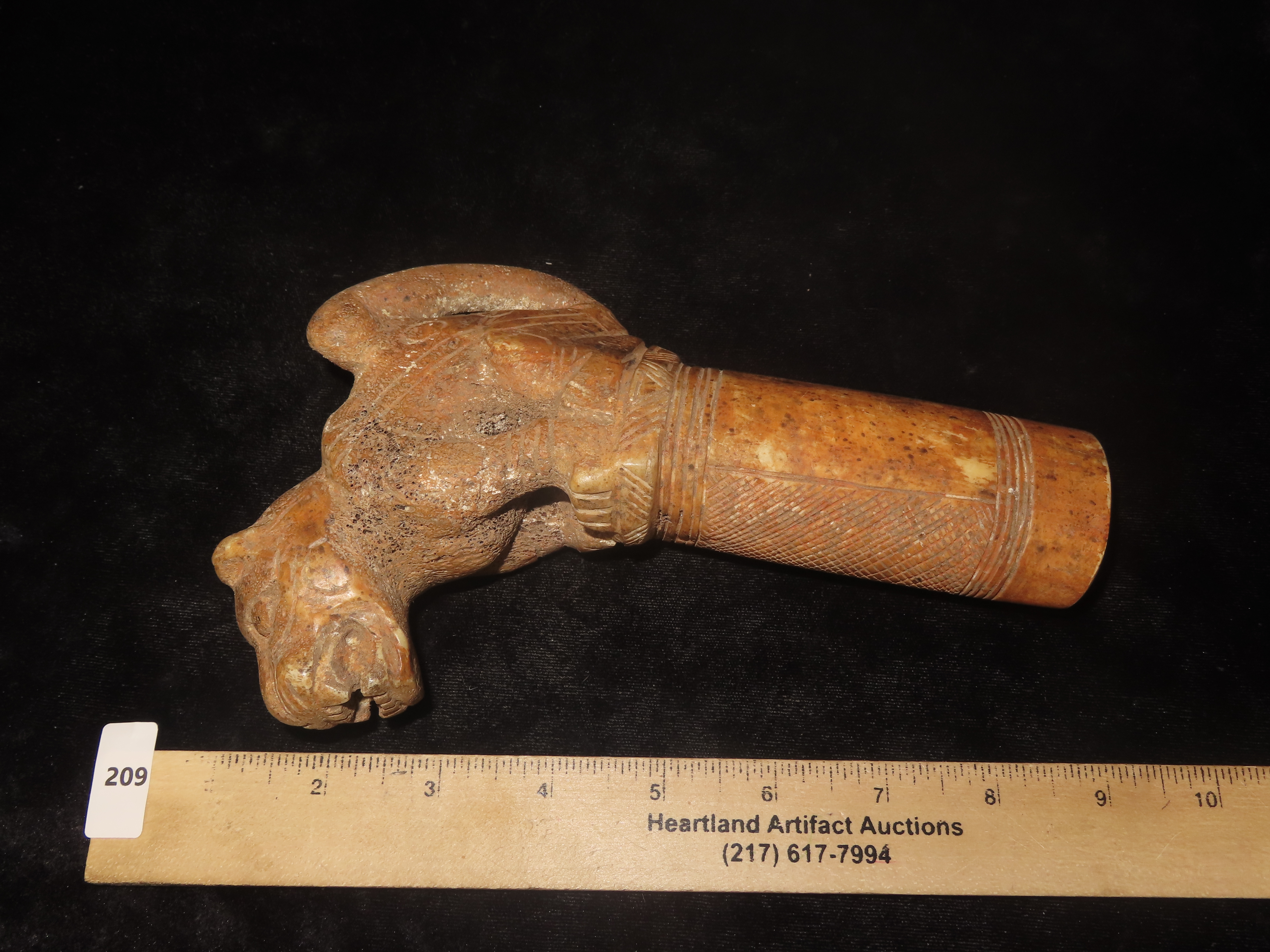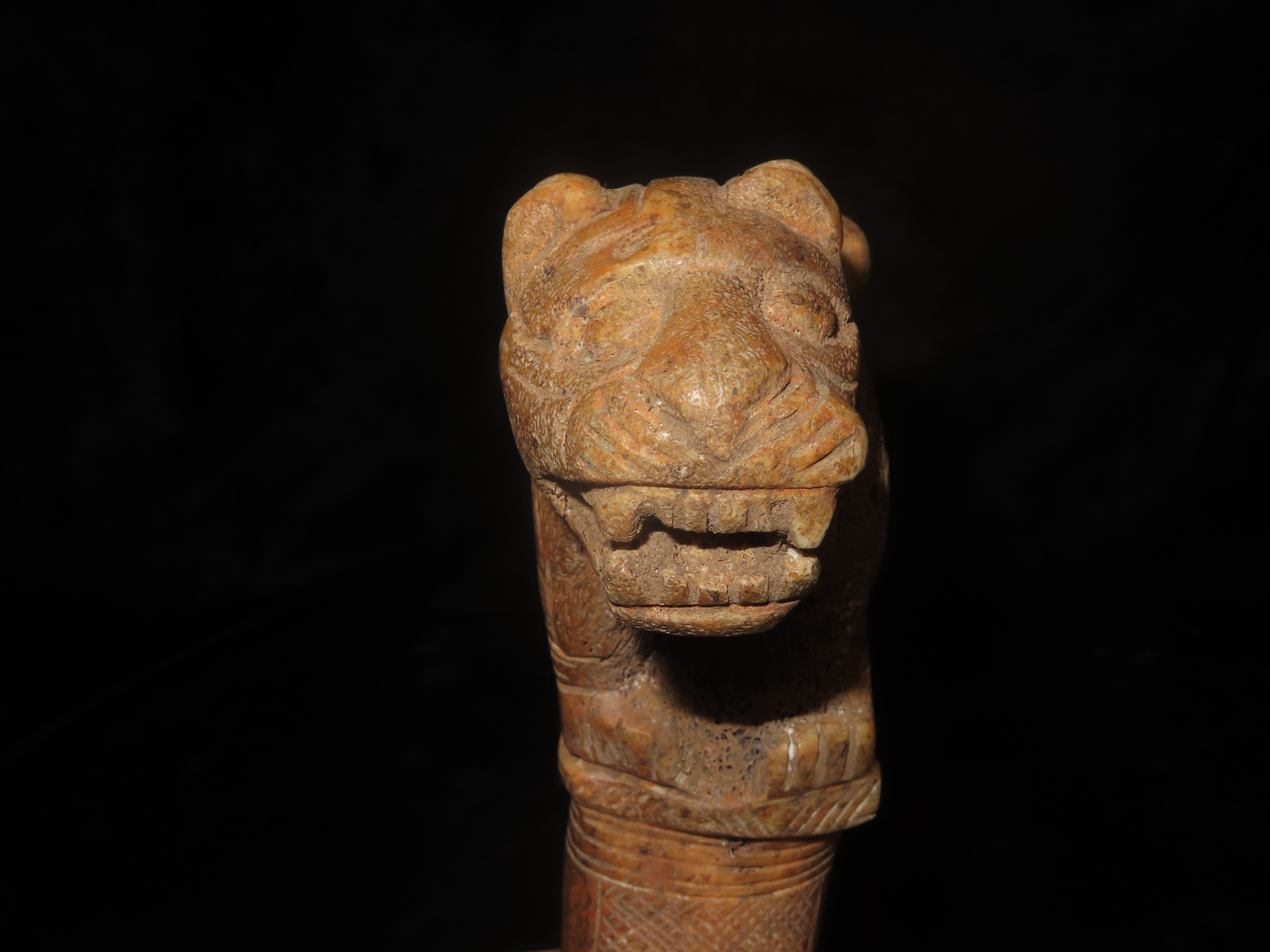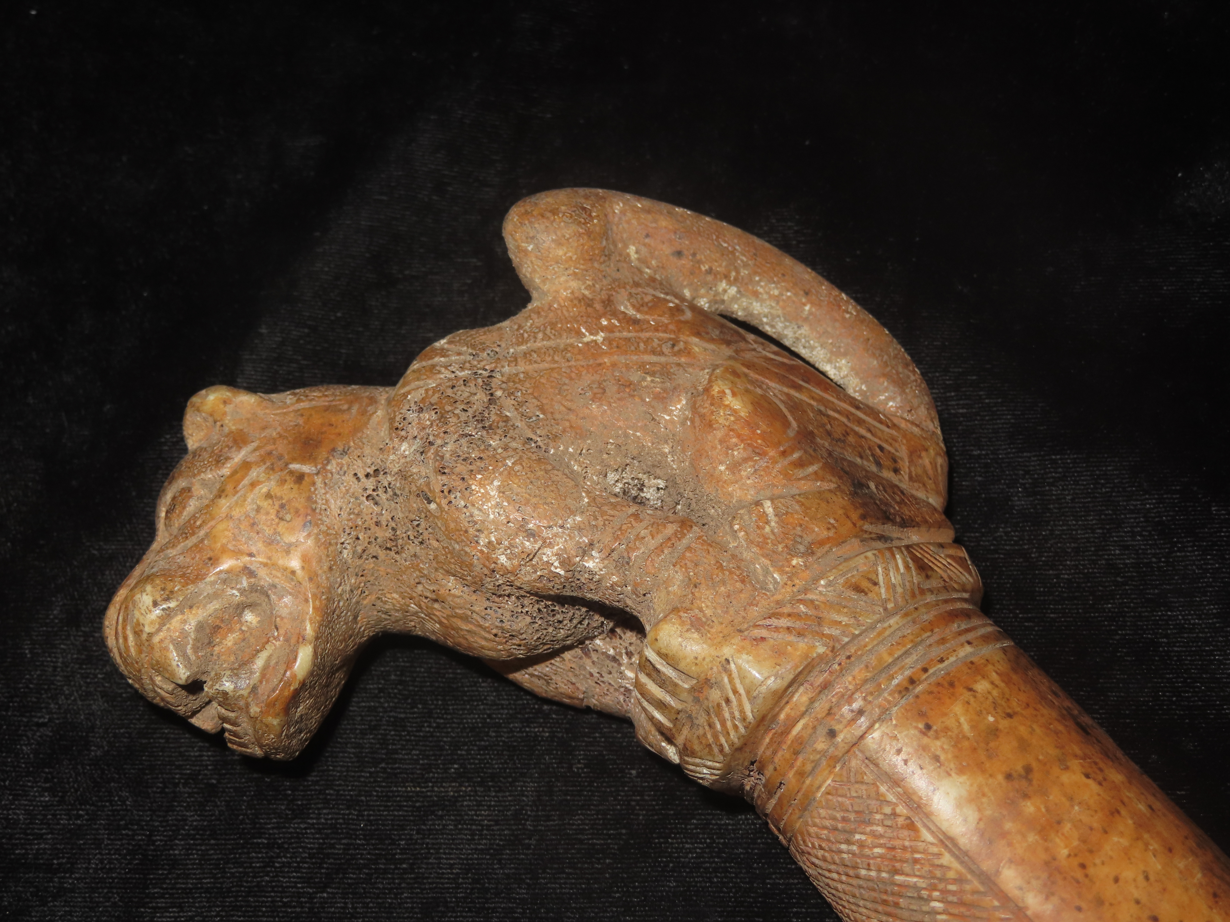 8″ X 5 1/4″ Pre Columbian Bone Scepter, Jaguar Effigy, Motley COA, Leithoff COA, Central America