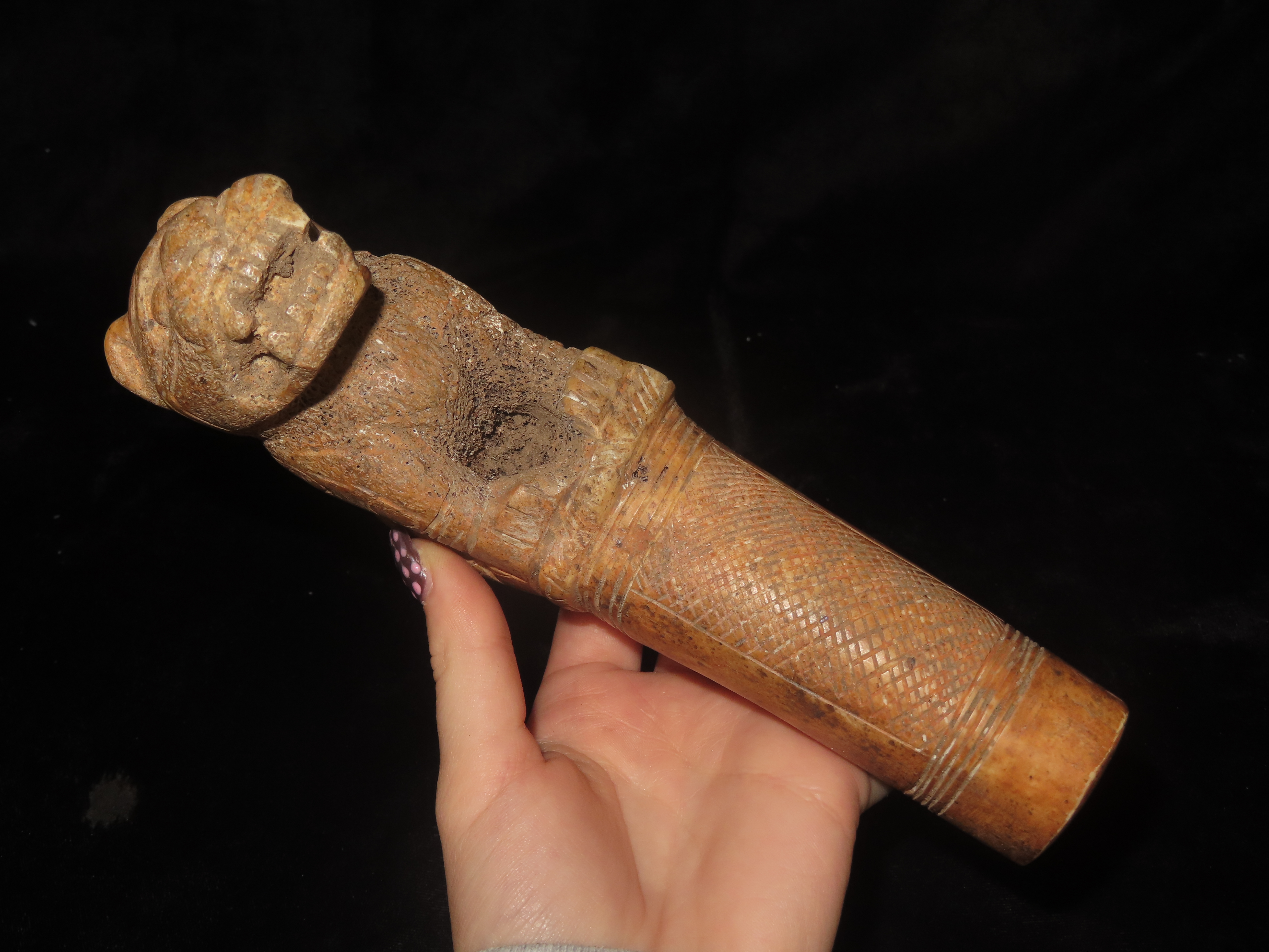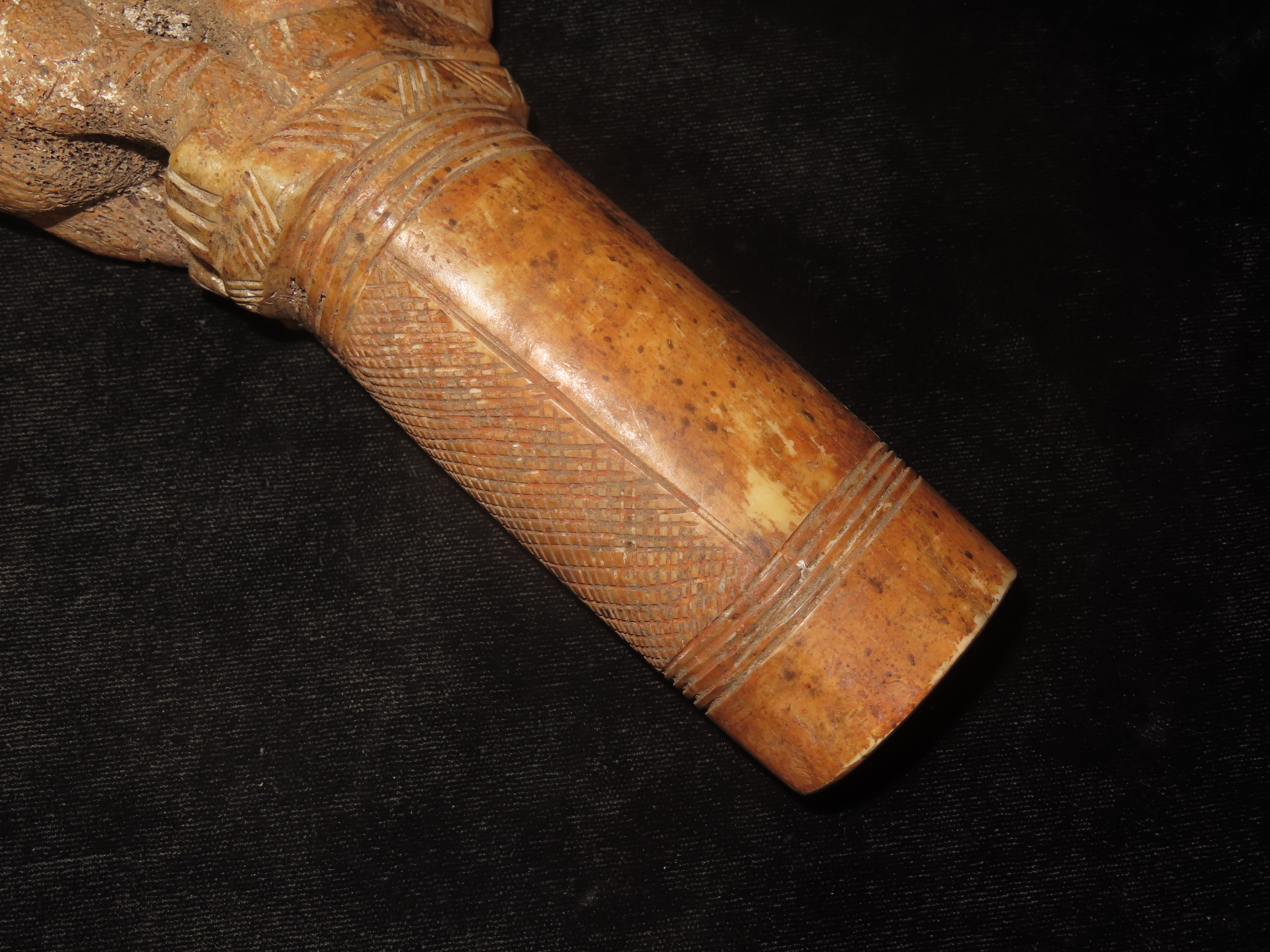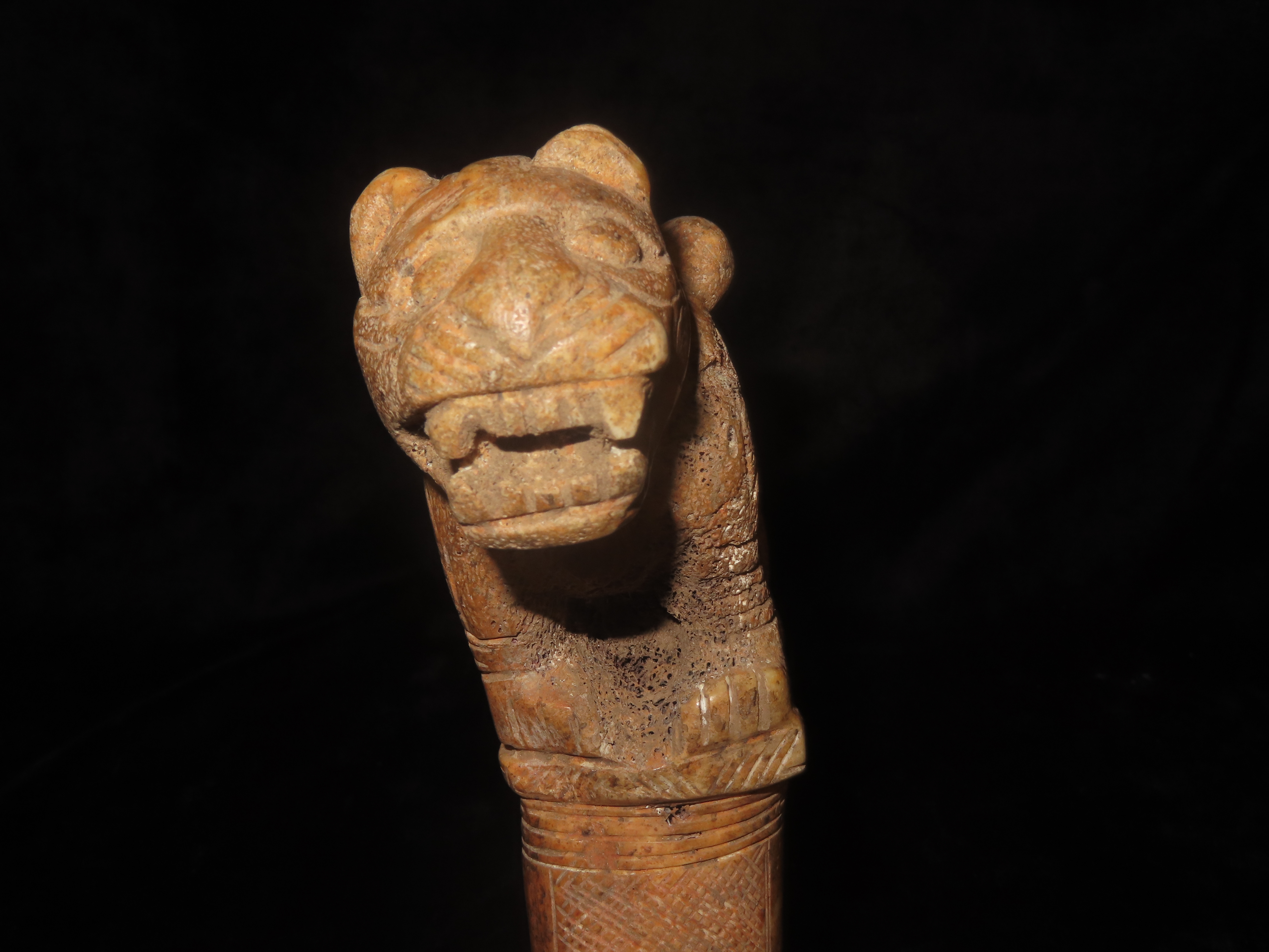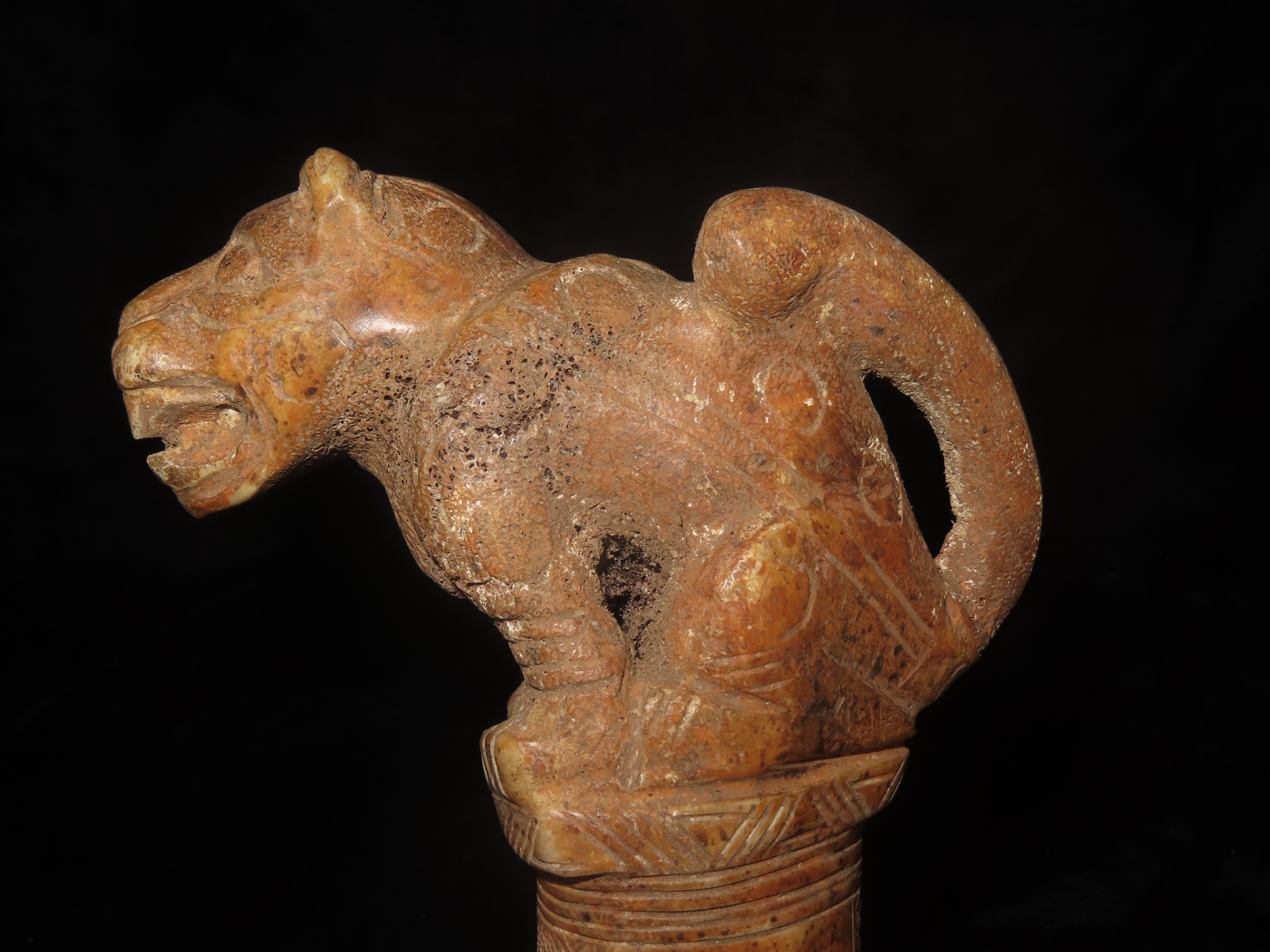 8″ X 5 1/4″ Pre Columbian Bone Scepter, Jaguar Effigy, Motley COA, Leithoff COA, Central America