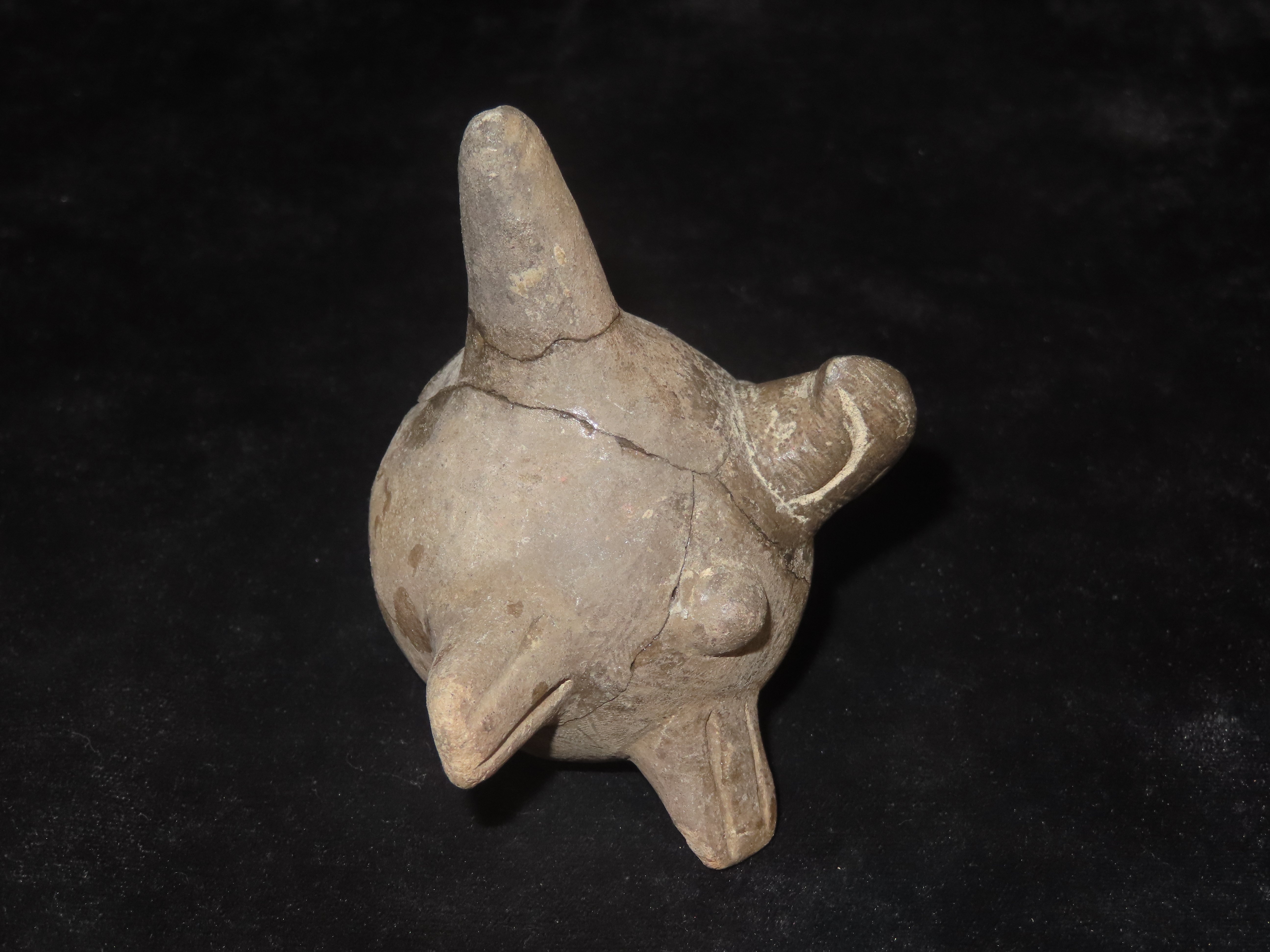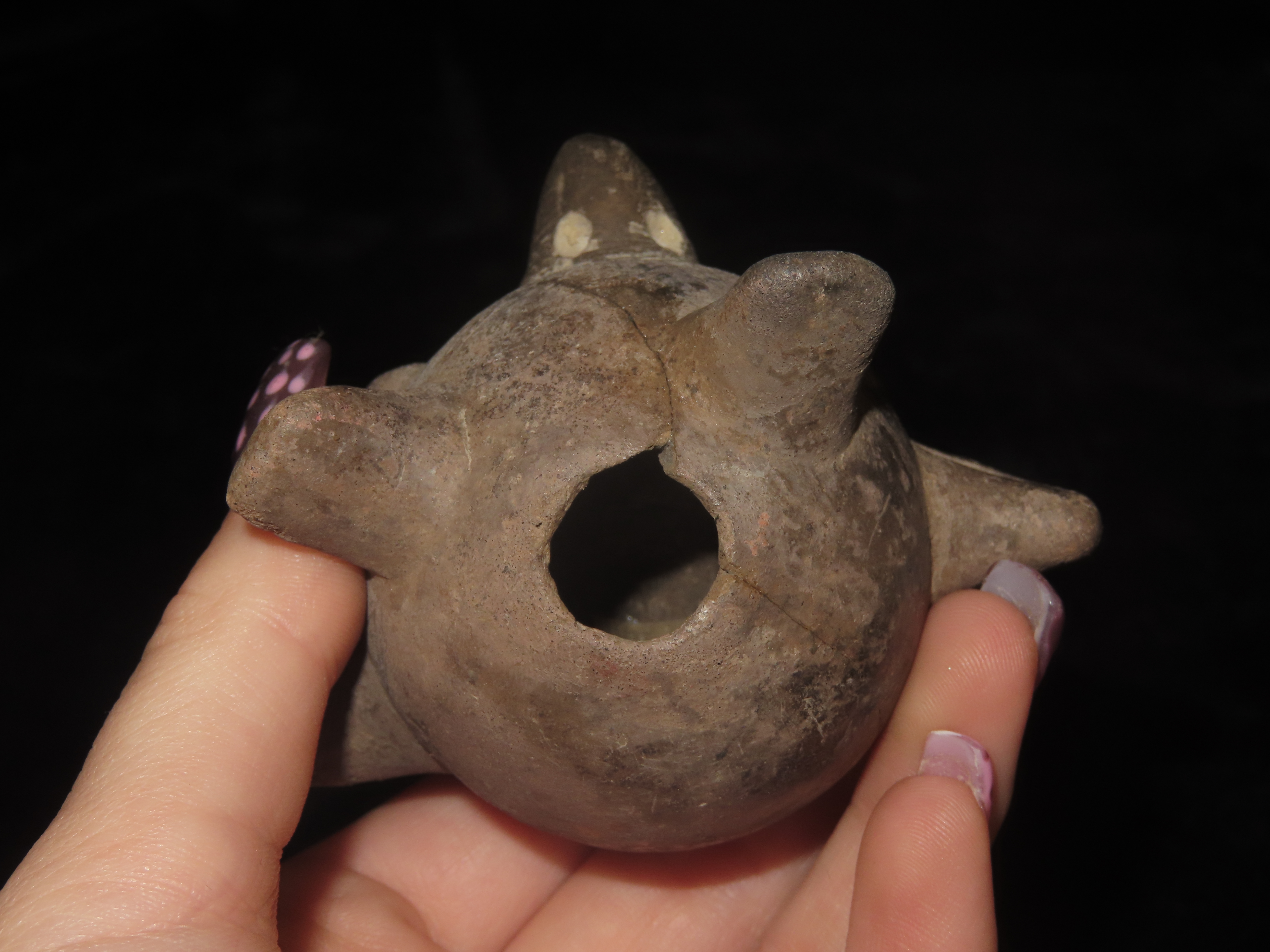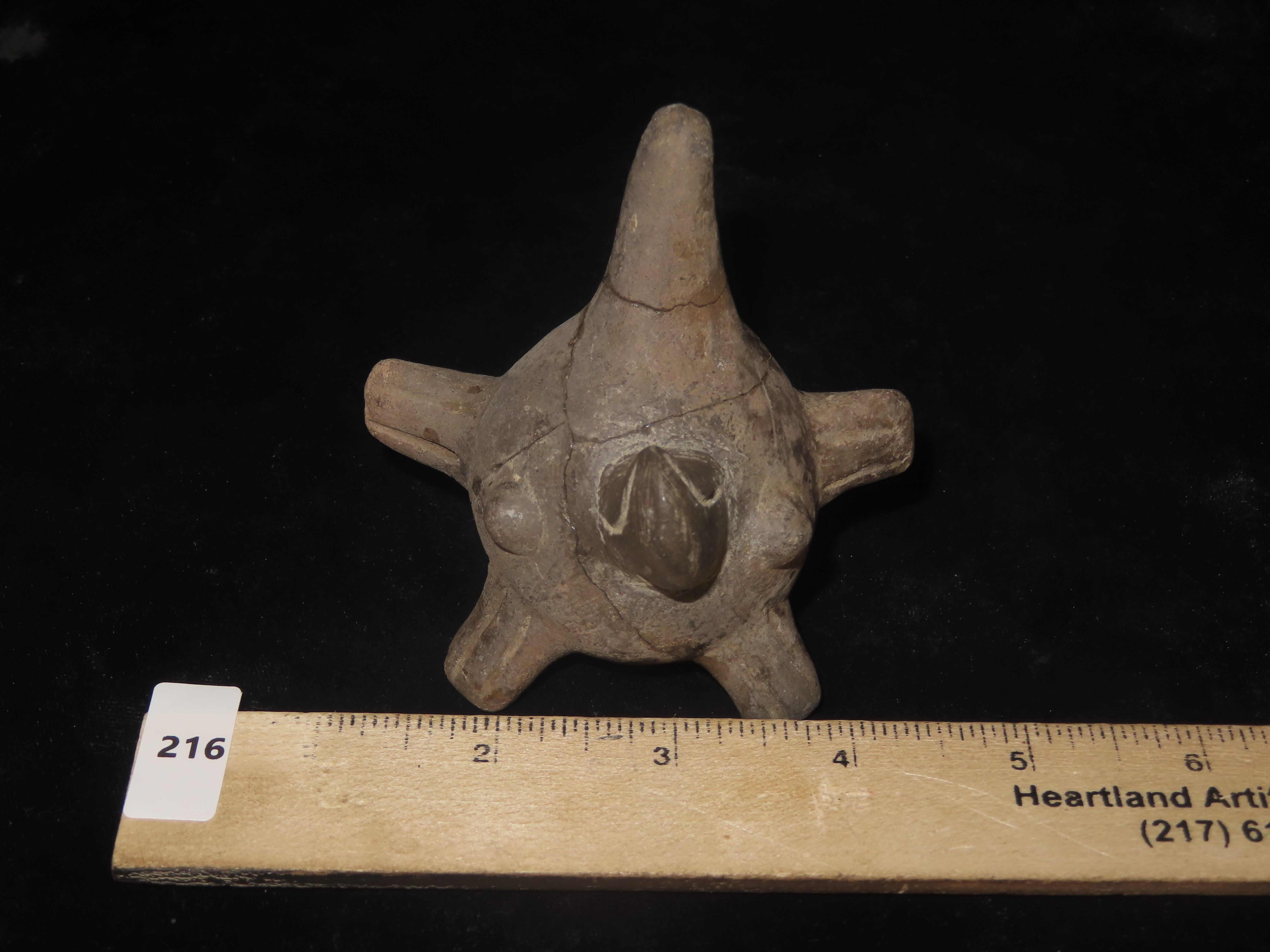 Amazing Pre Columbian Zoomorphic Harpy Eagle Pottery Effigy, Guatemala, 3 1/2″, broken and repaired. Relatively rare and elusive throughout its range, the harpy eagle is found from southern Mexico (incl. Chiapas, Oaxaca and the Yucatán states) and south through Central America, into South America to as far south as Argentina. They can still be seen by tourists and locals in Costa Rica and Panama. As their preferred habitat is rainforest, they nest and hunt predominantly in the emergent layer. The eagle is most common in Brazil, where it is found across the entire country.[30] With the exception of some areas of the aforementioned Panama and Costa Rica, the species is nearly extinct in Central America,
