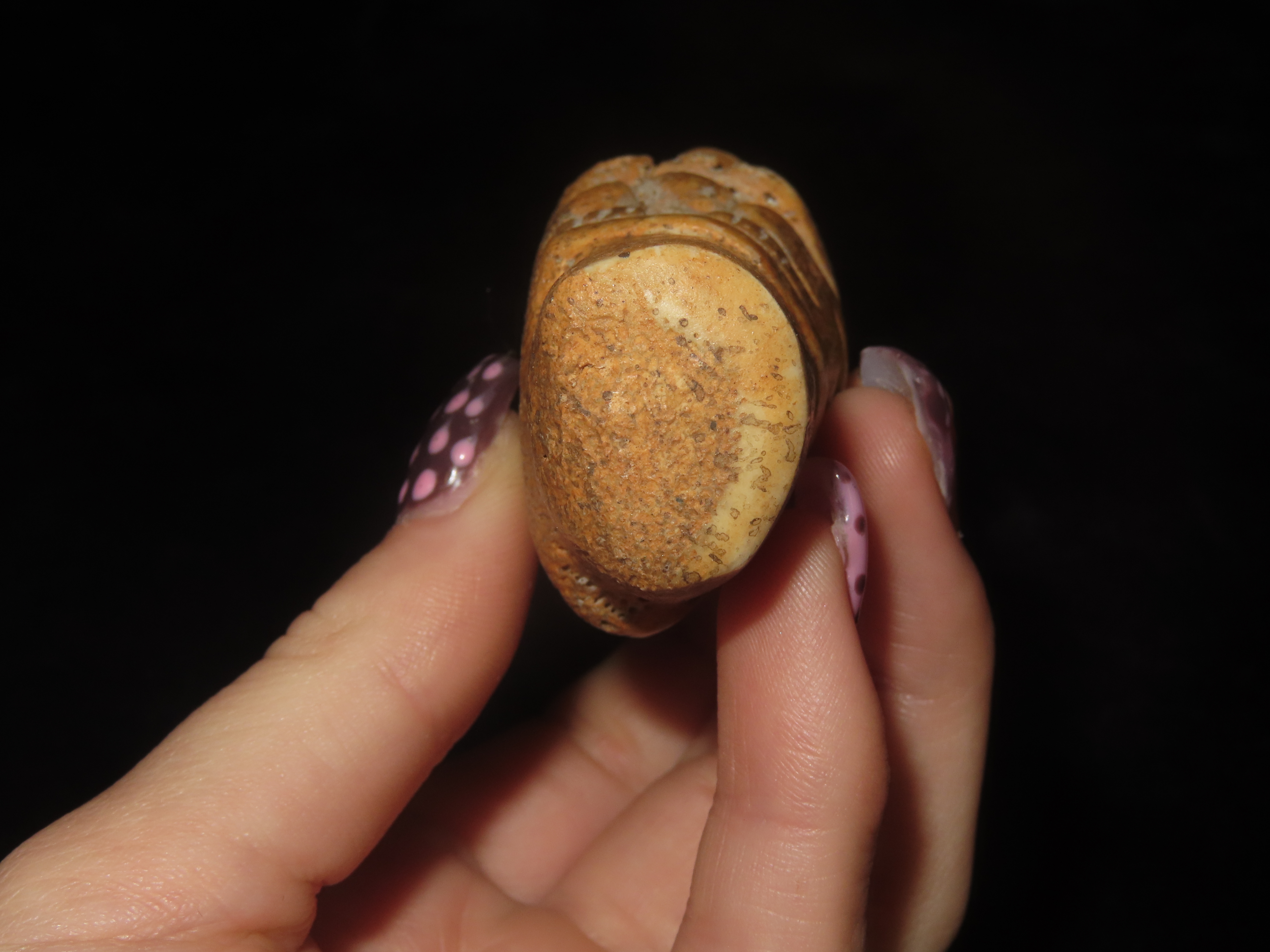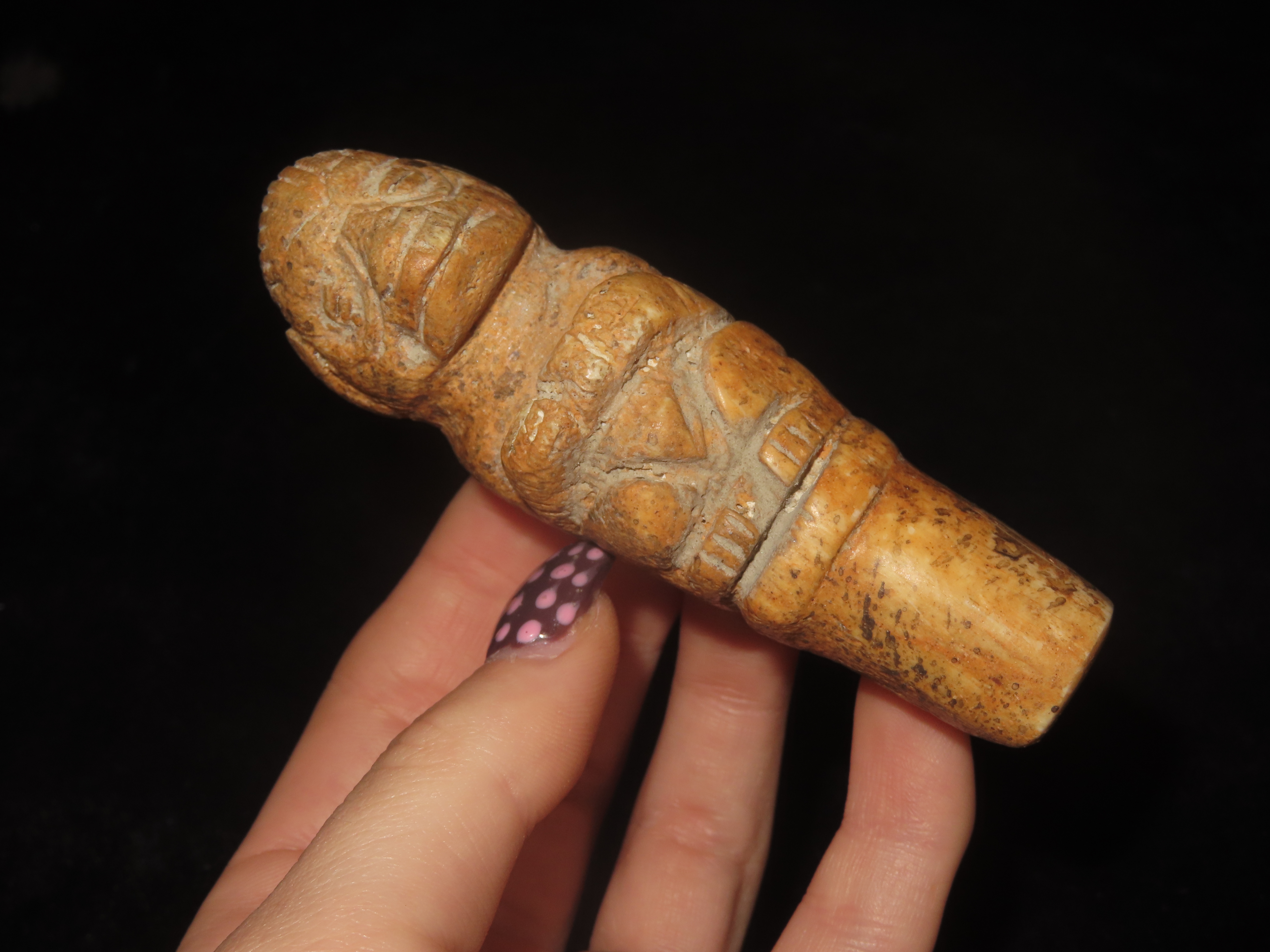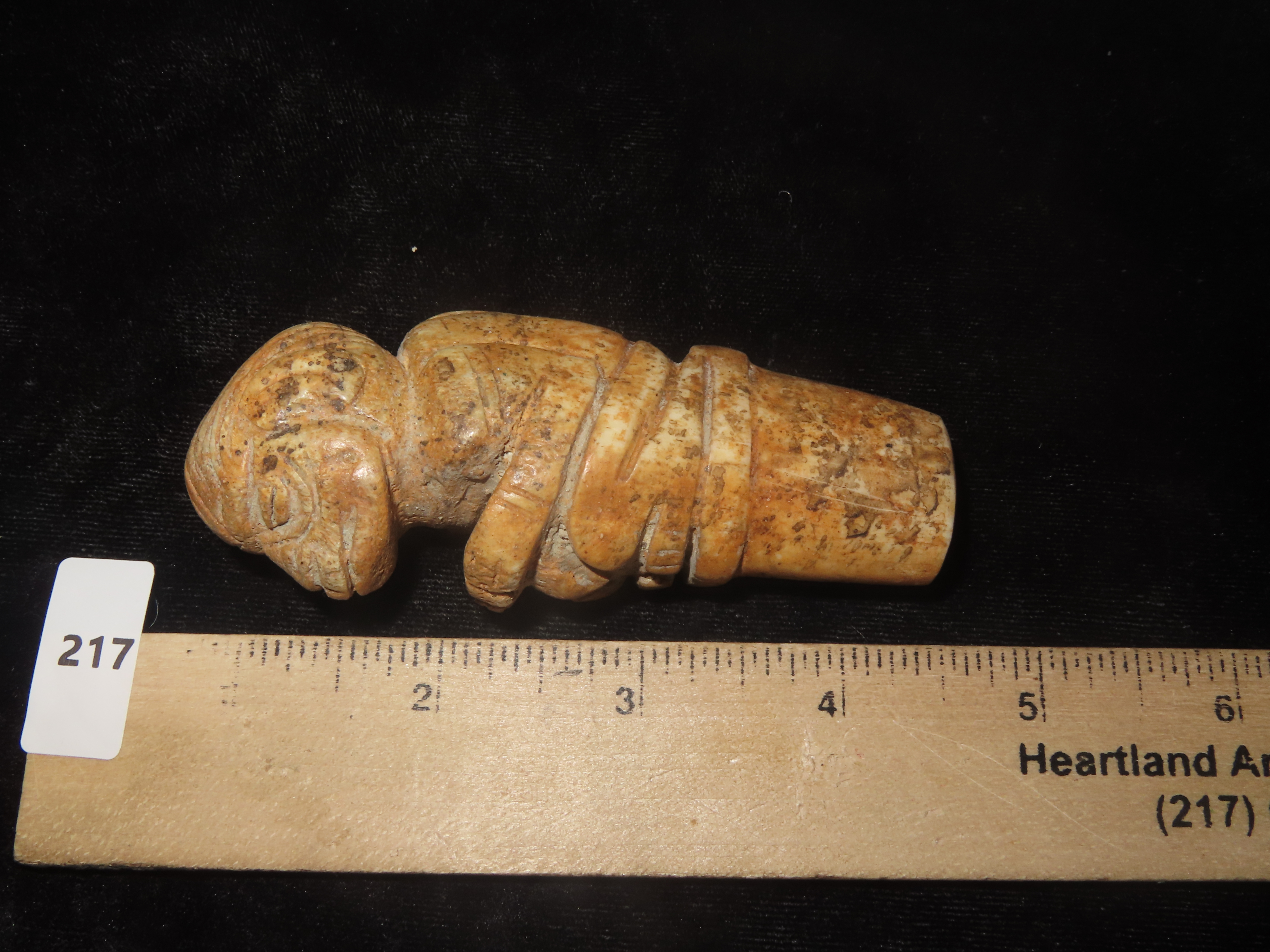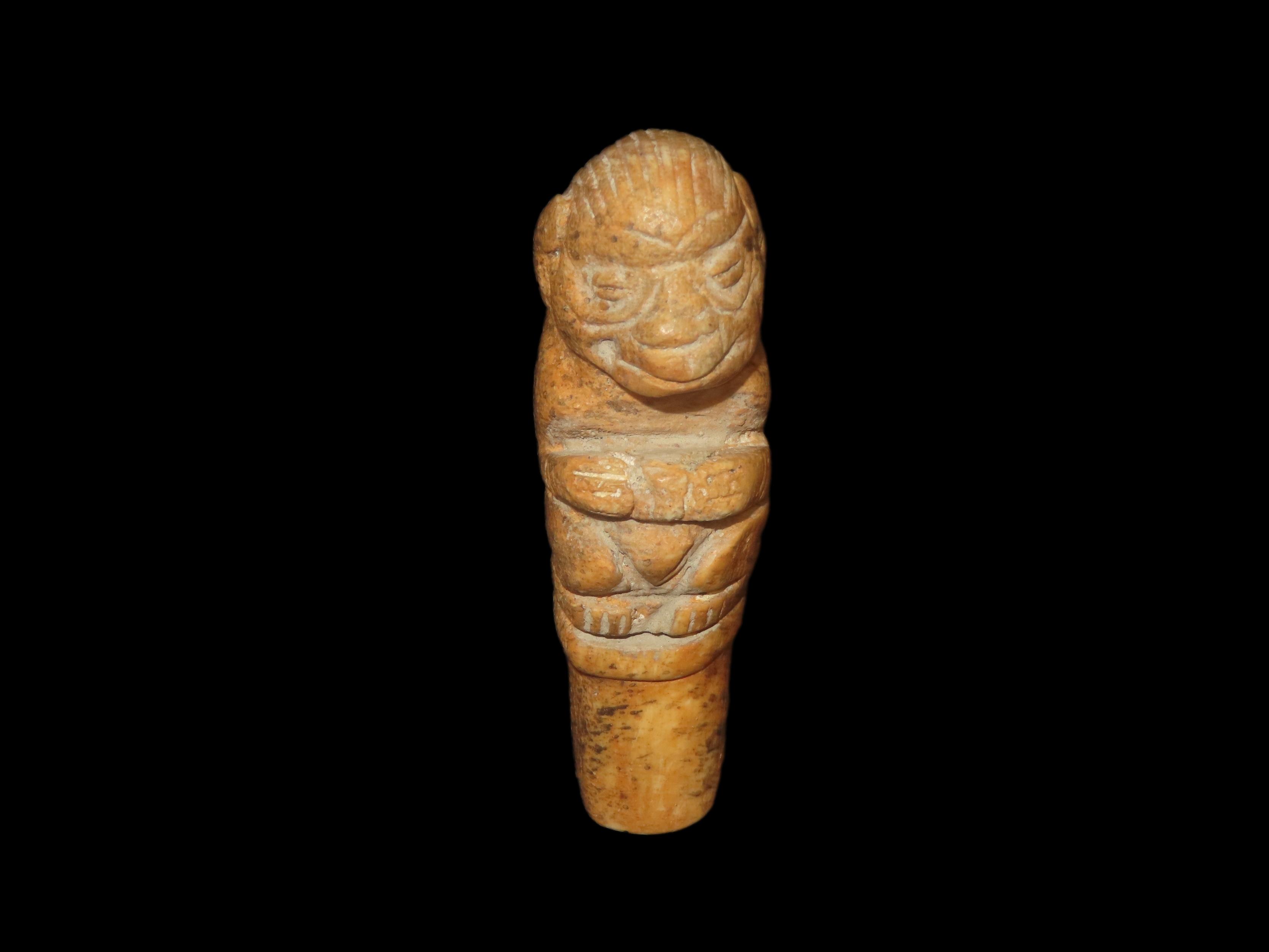 3 5/8″ x 1 1/2″ Pre-Columbian Tairona Monkey Effigy Carved Bone Scepter Finial, Motley COA, found in South America, Ex Steve Barras Collection