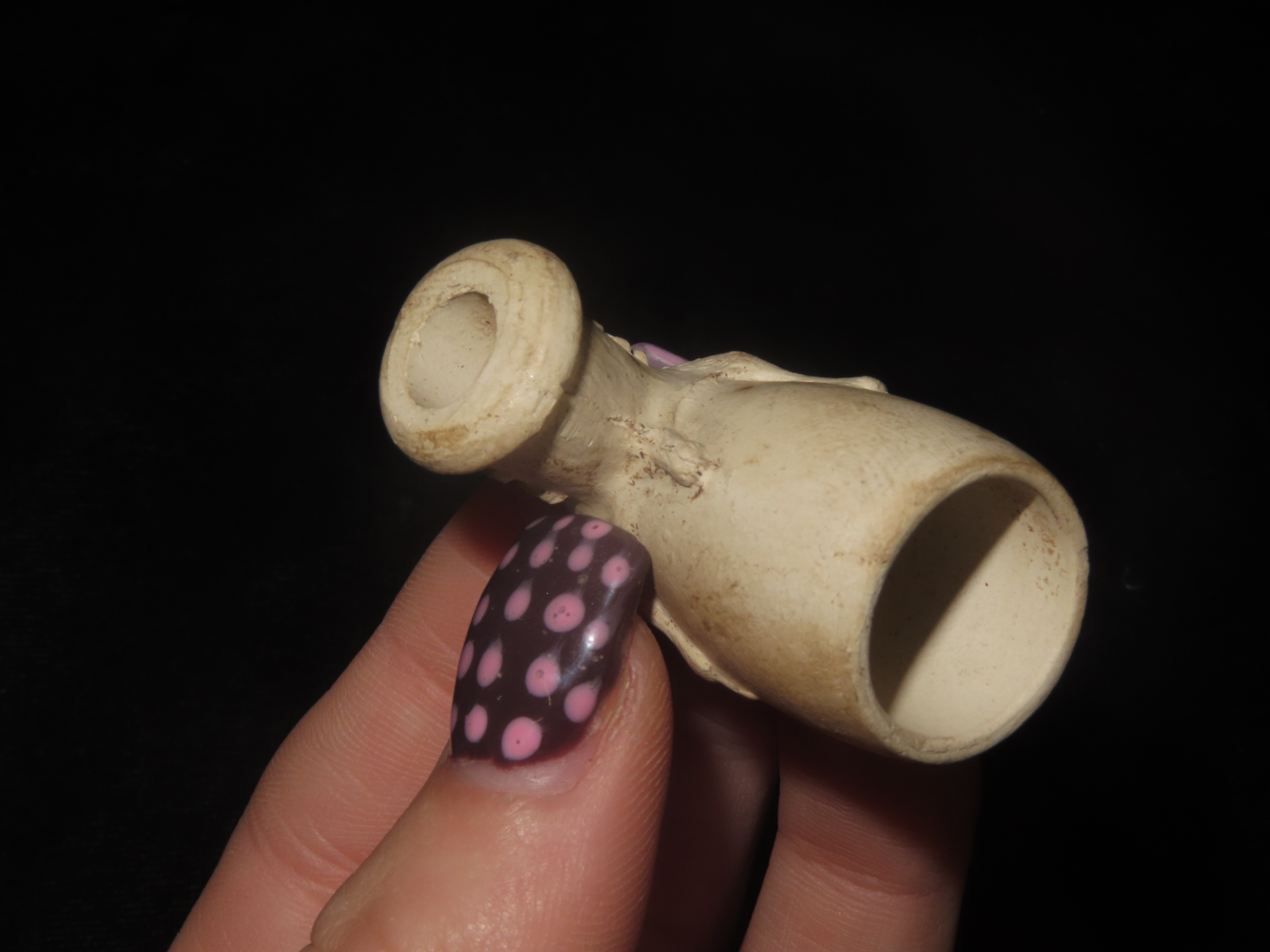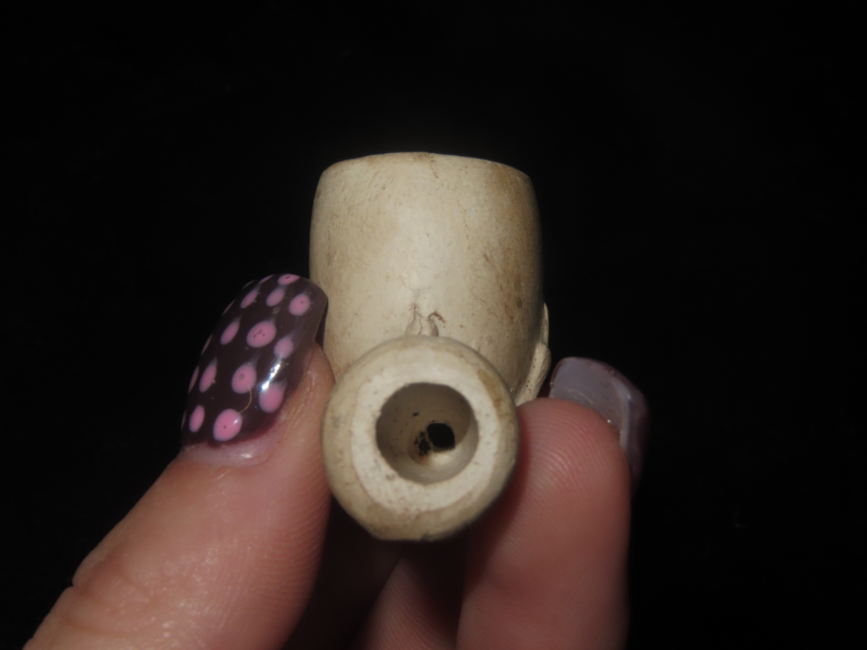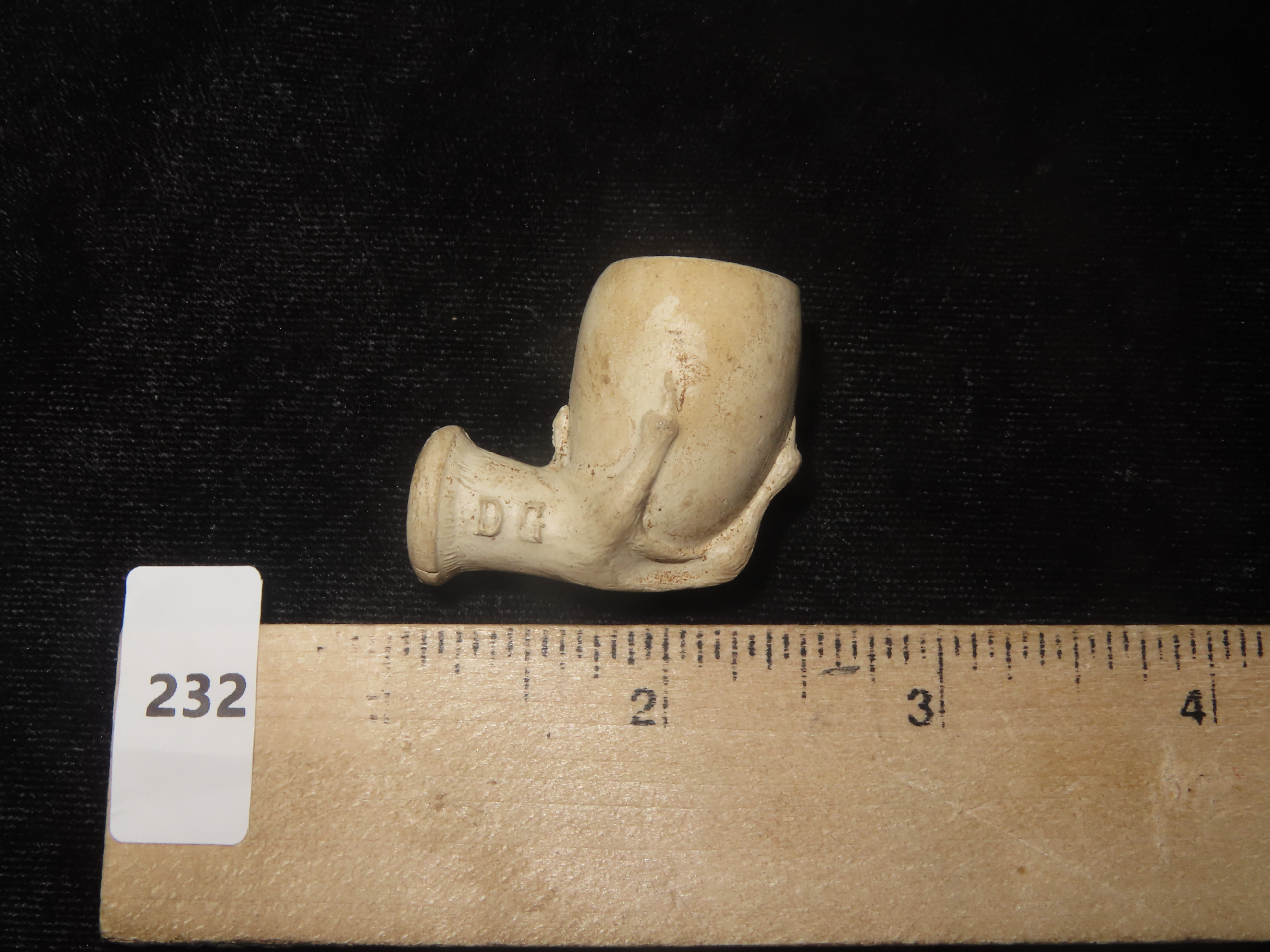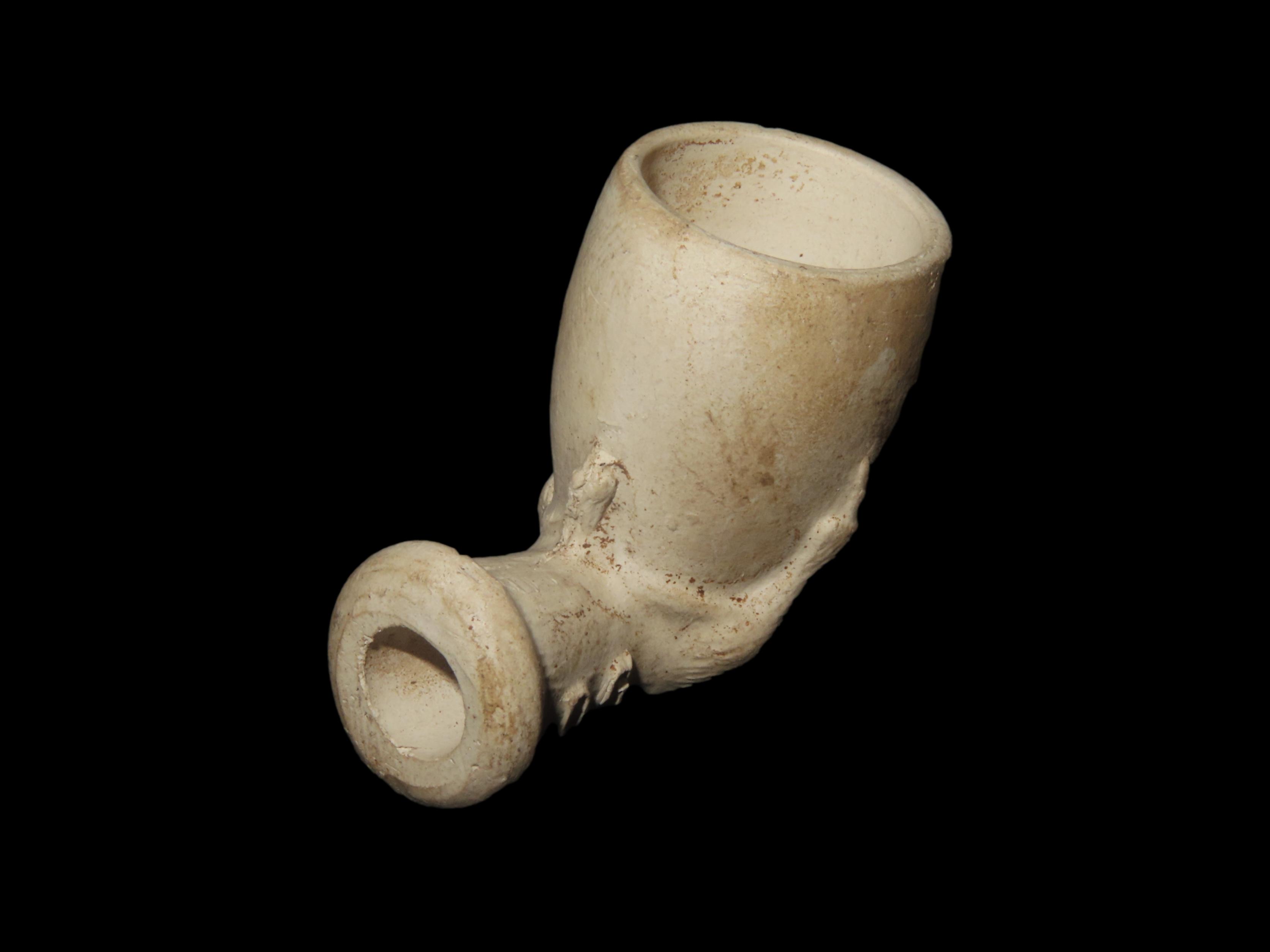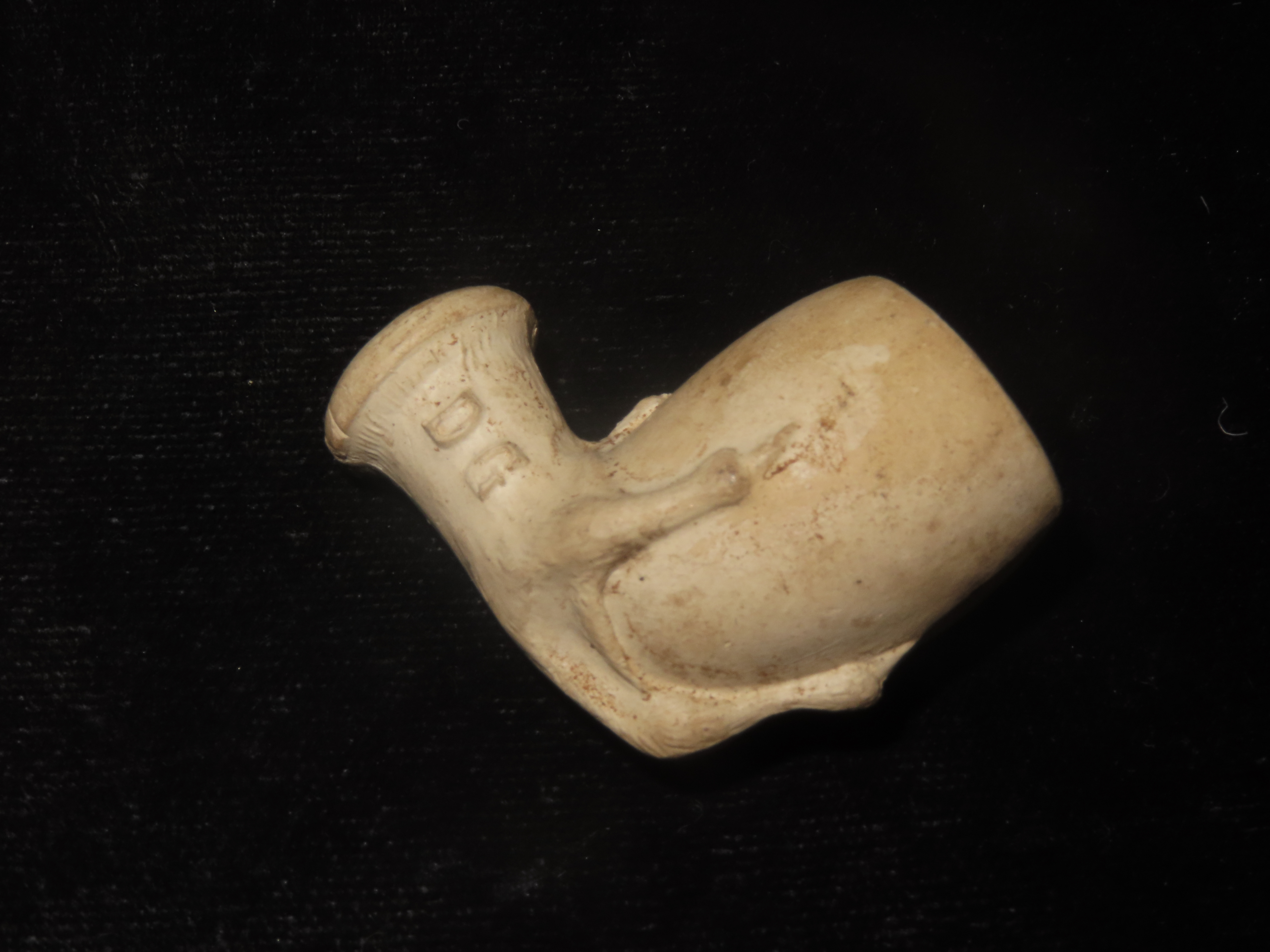 Early Kaolin Trade Pipe, Eagle Claw Style, Stamped 1585 DC