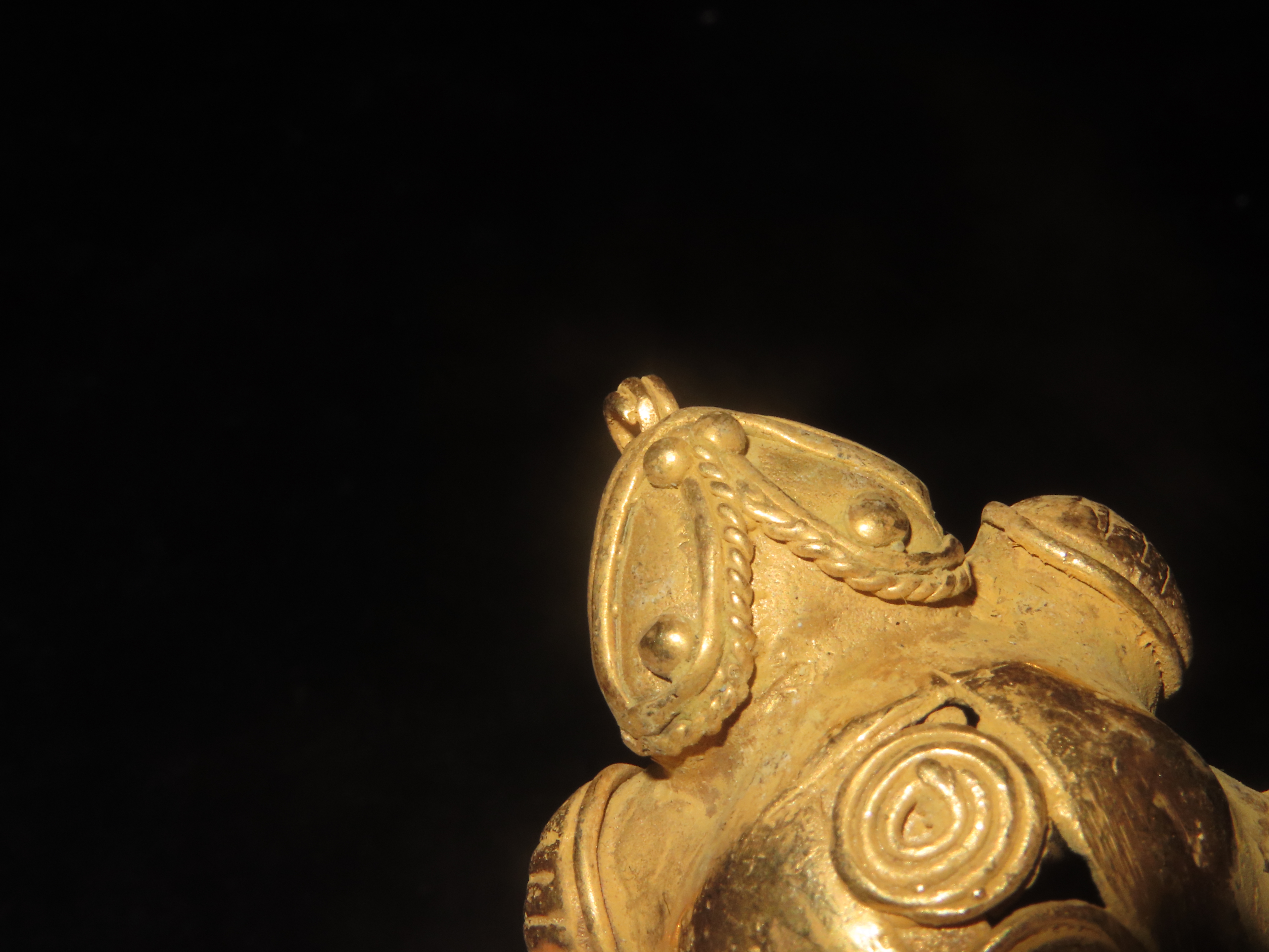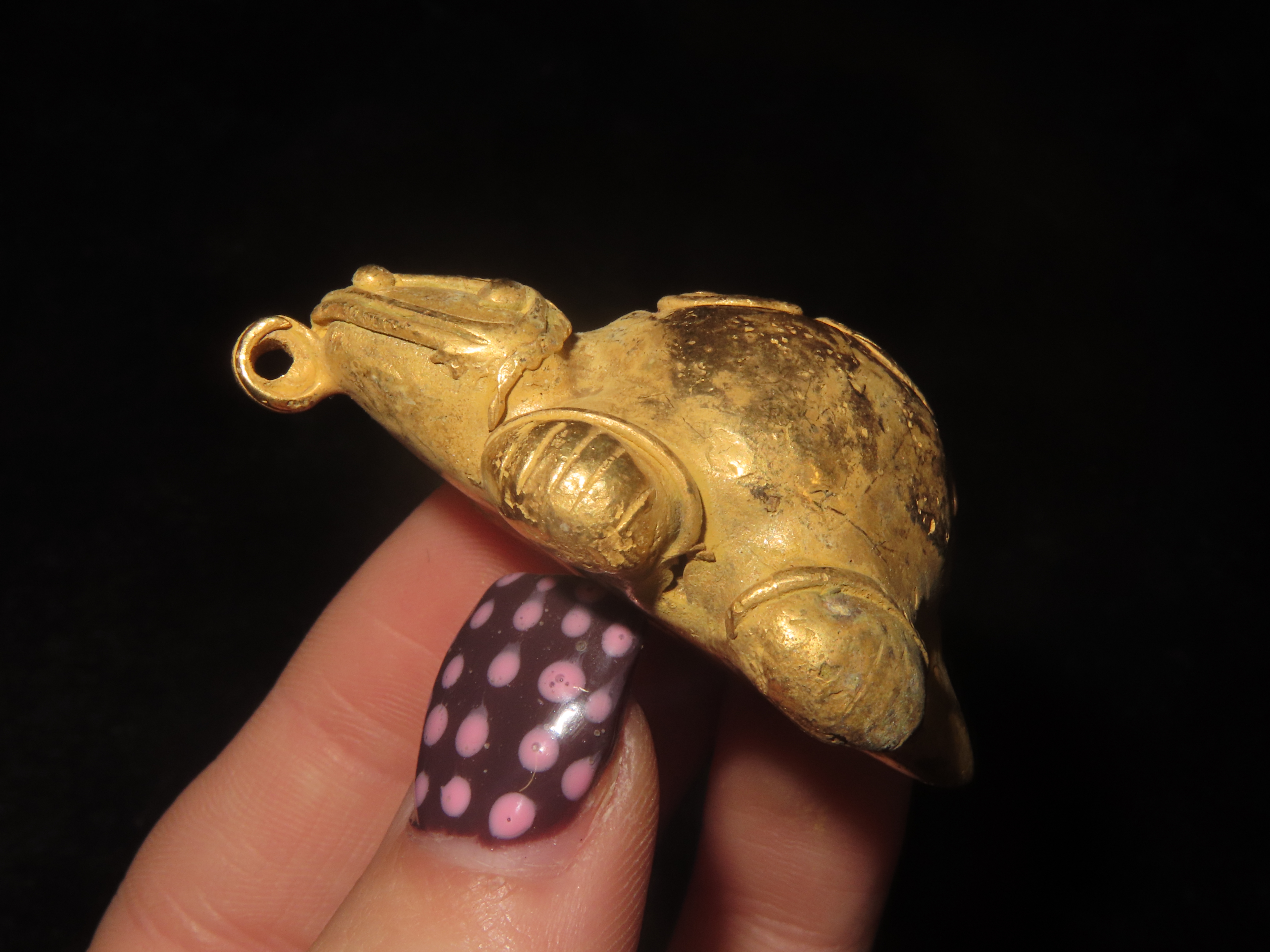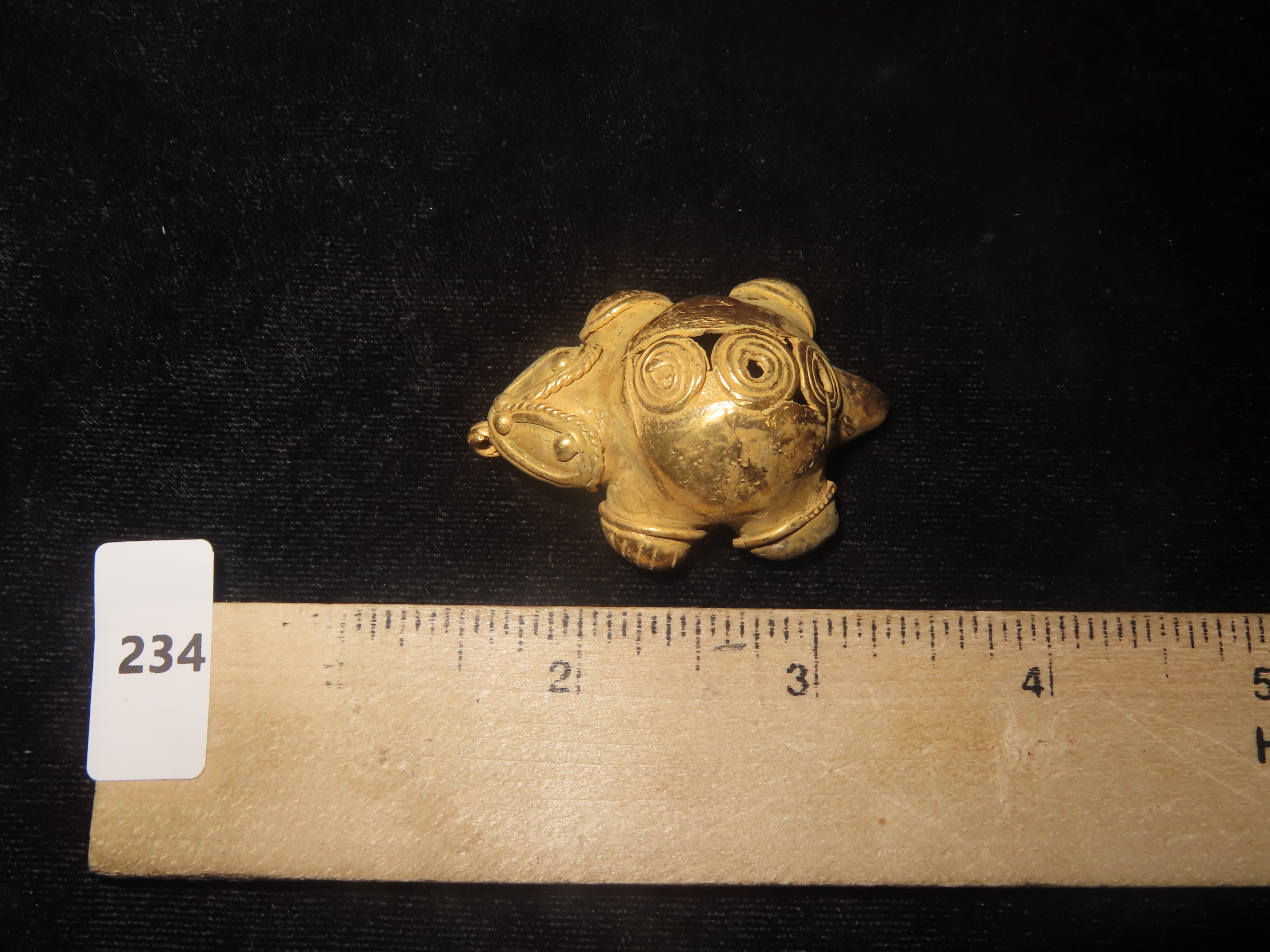 1 7/8″ Pre Columbian Tairona Tumbaga Walking Turtle Figurine Pendant, Gold/Copper Alloy