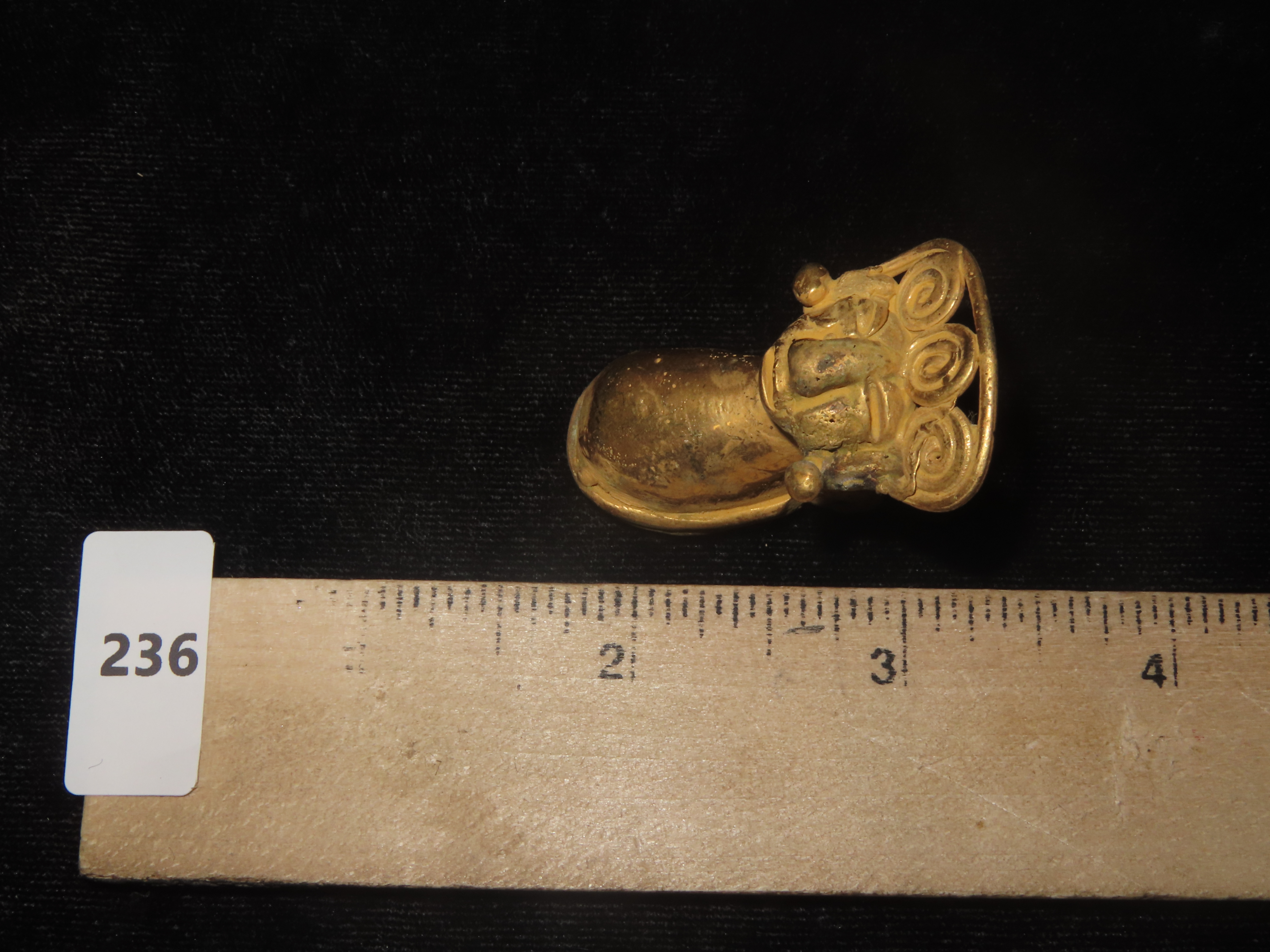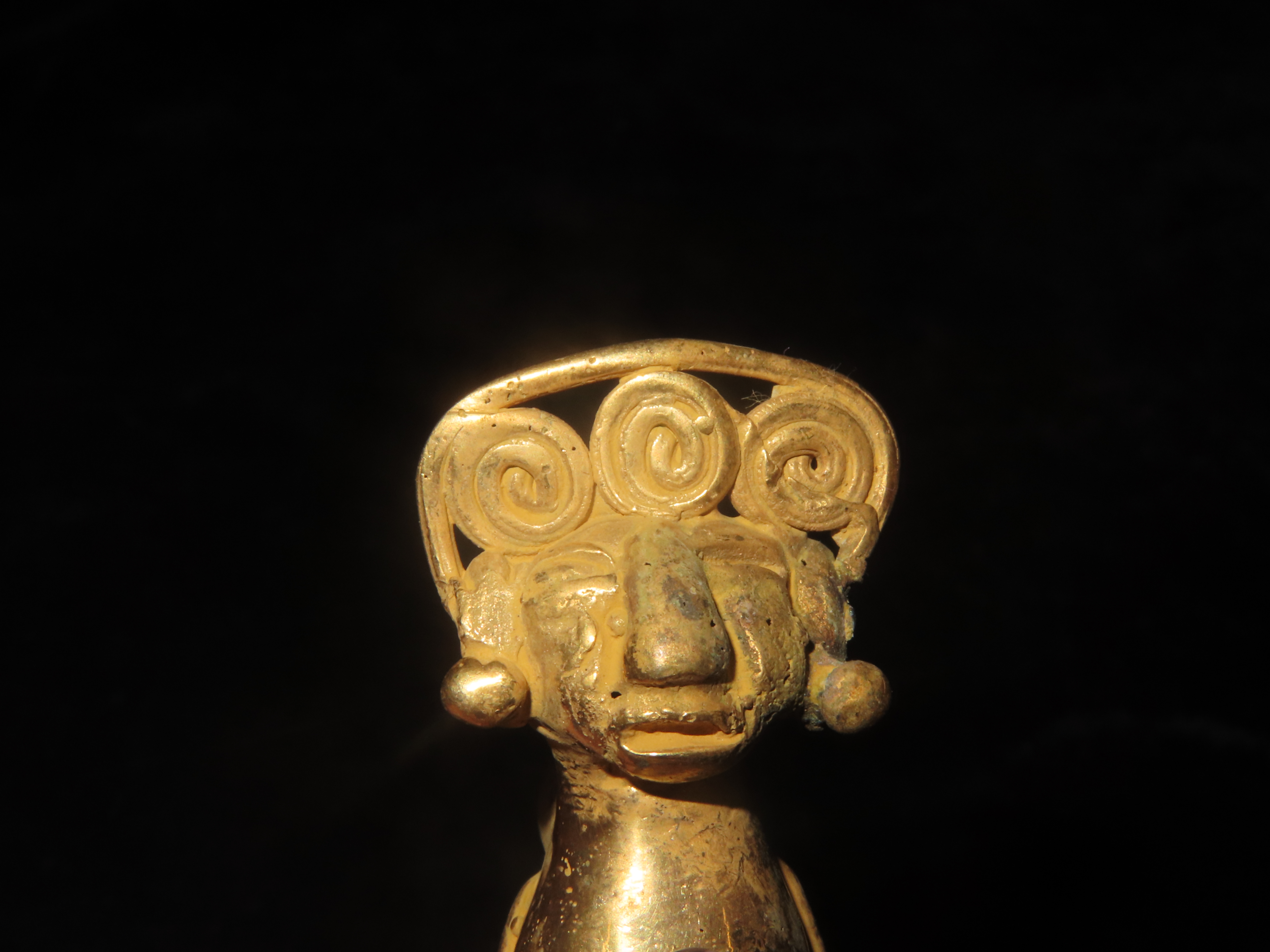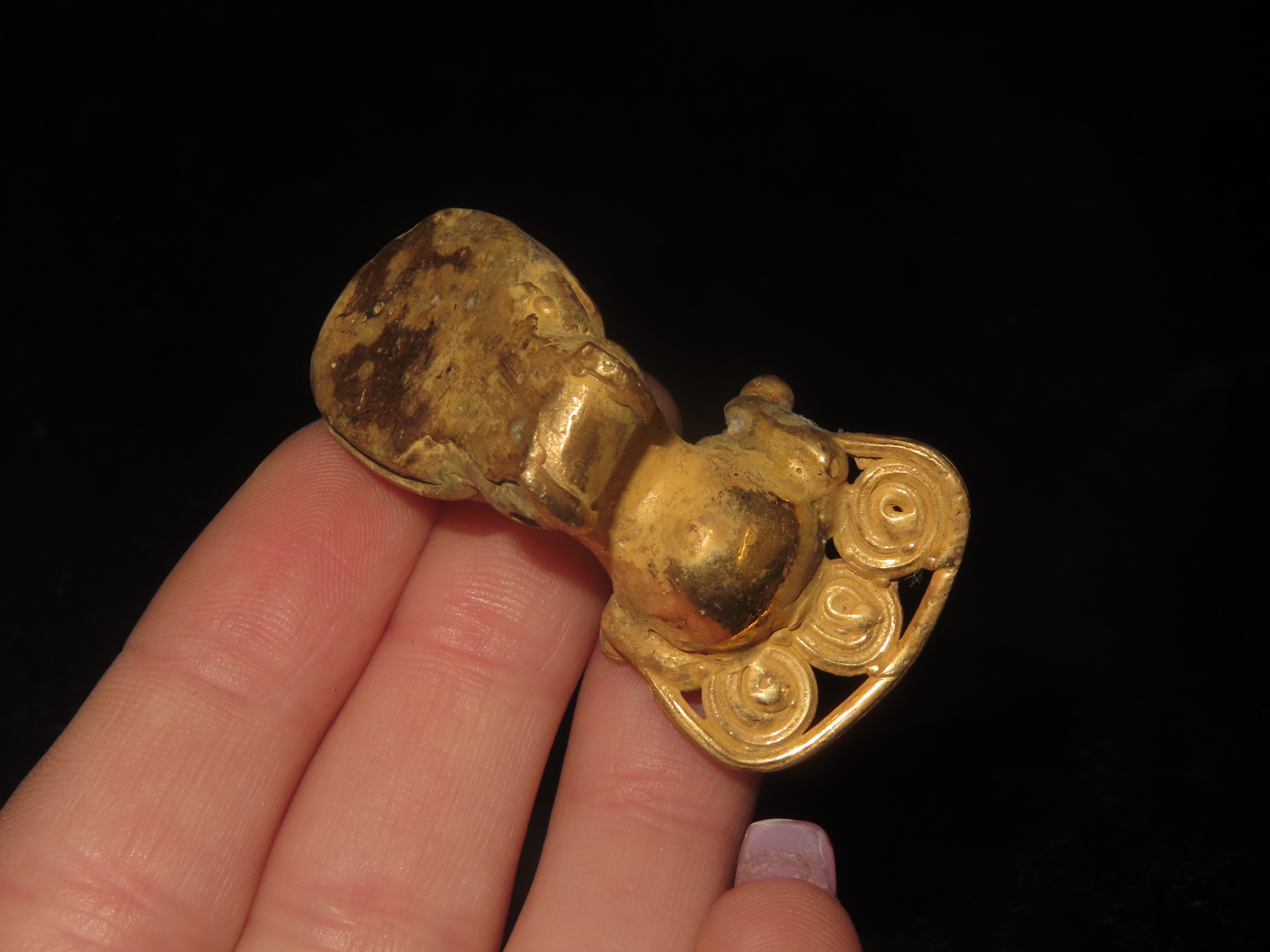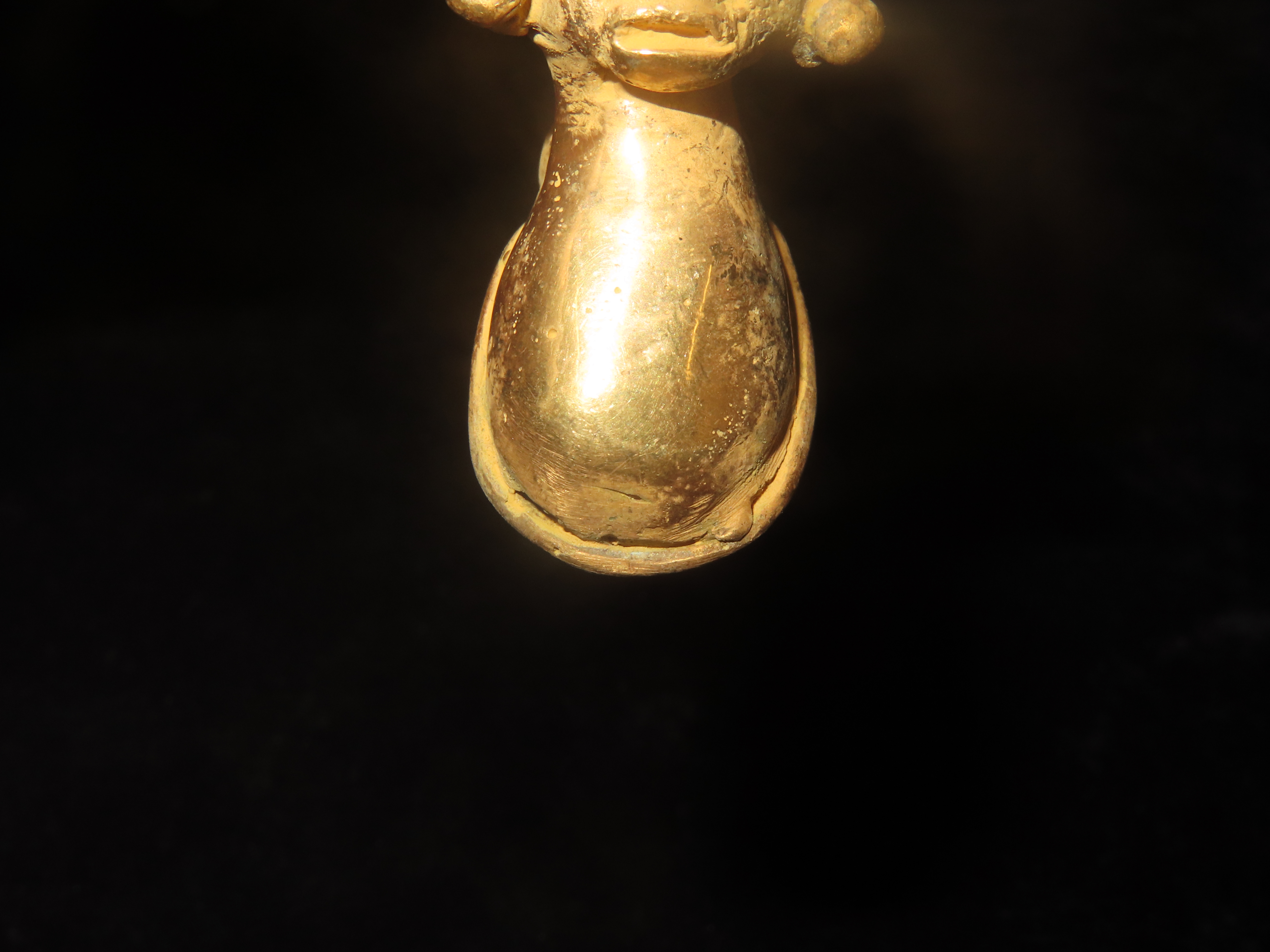 1 5/8″ Pre Columbian Tairona Tumbaga Human Effigy Figurine Pendant, Gold/Copper Alloy