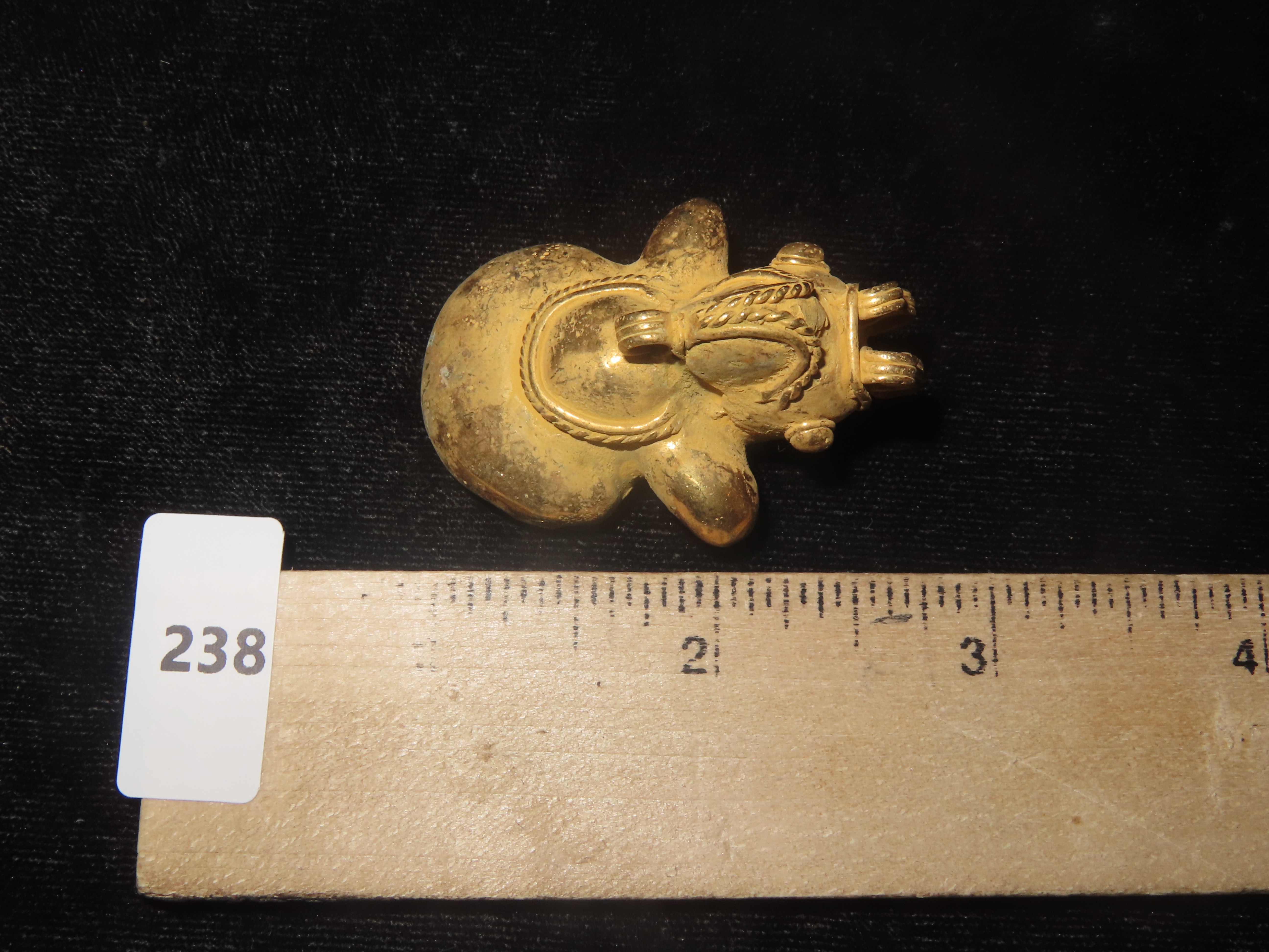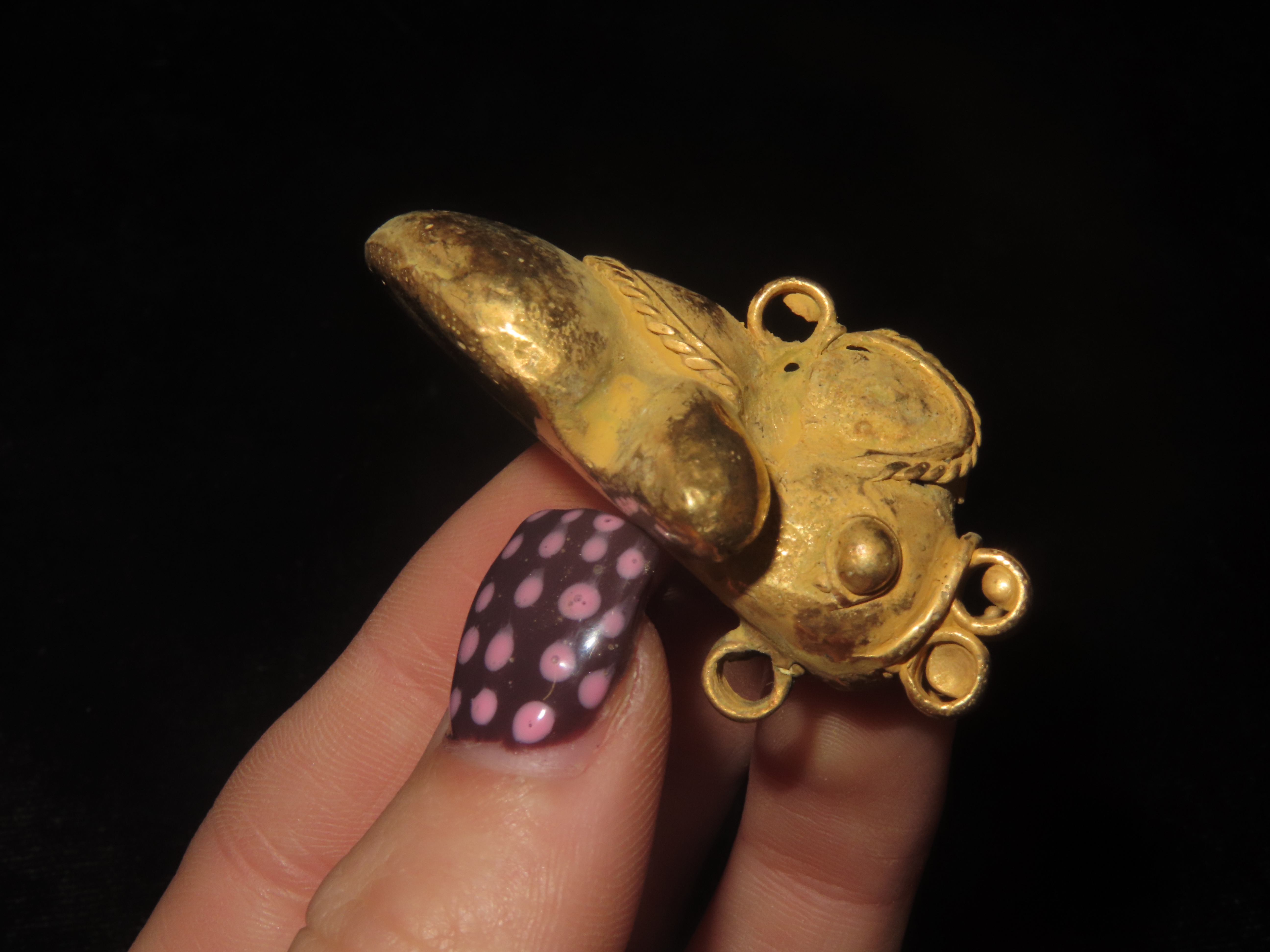 1 3?4″ Pre Columbian Tairona Tumbaga Flying Parrot Figurine Pendant, Gold/Copper Alloy