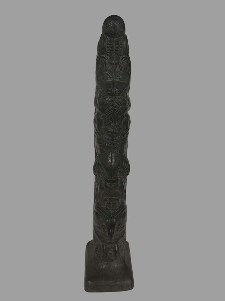 18 1/2″ Northwest Coast Totem Pole, George Wolf, Handcrafted in Canada, Ex Theodore Pappas Collection
