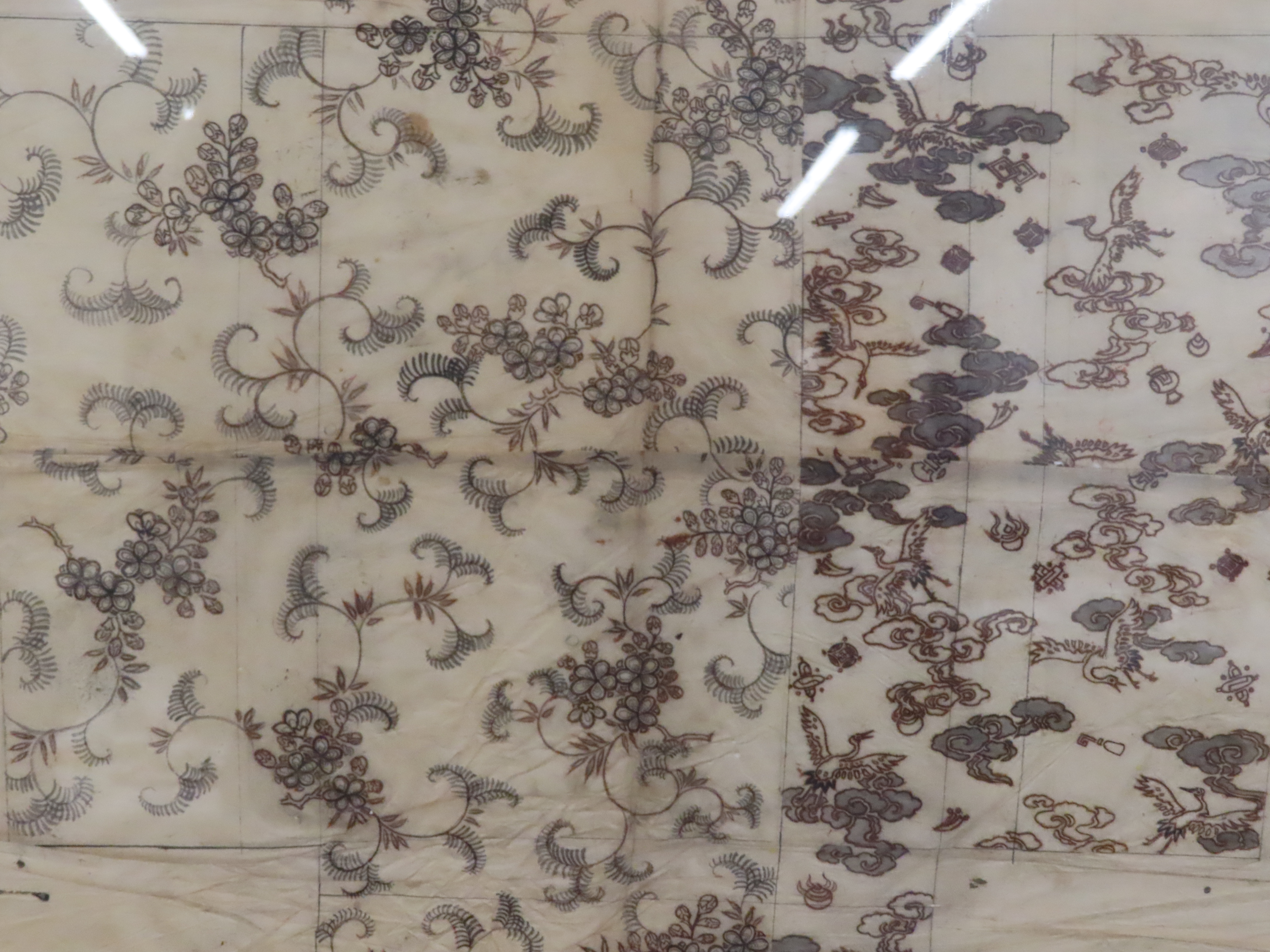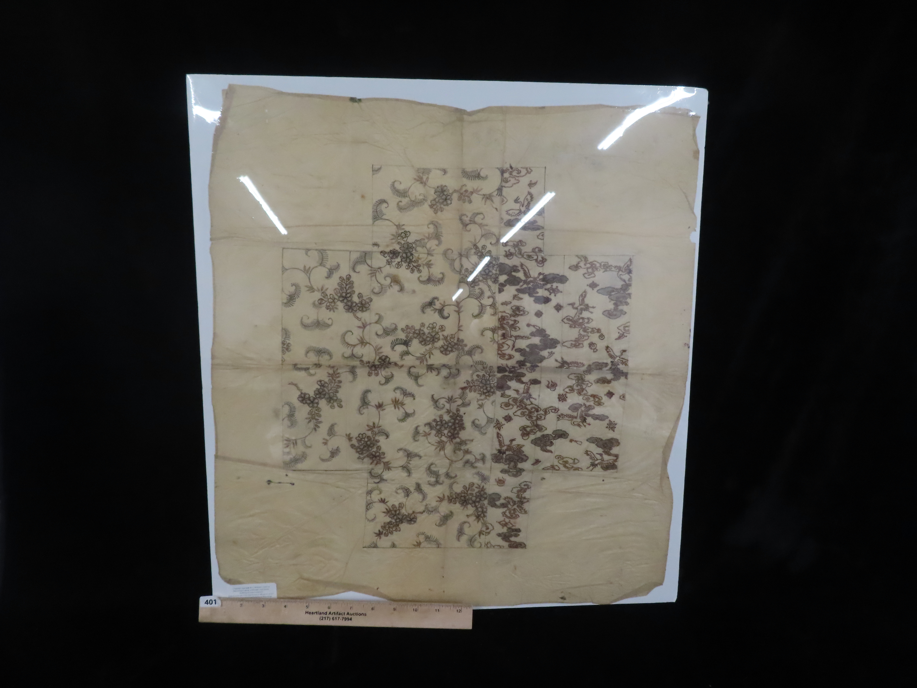 24″ X 22″ Original Japanese Art Depicting Series of Flowers and Storks, EX Richard Lane Collection, Deacquisitioned from the Honolulu Museum of Art