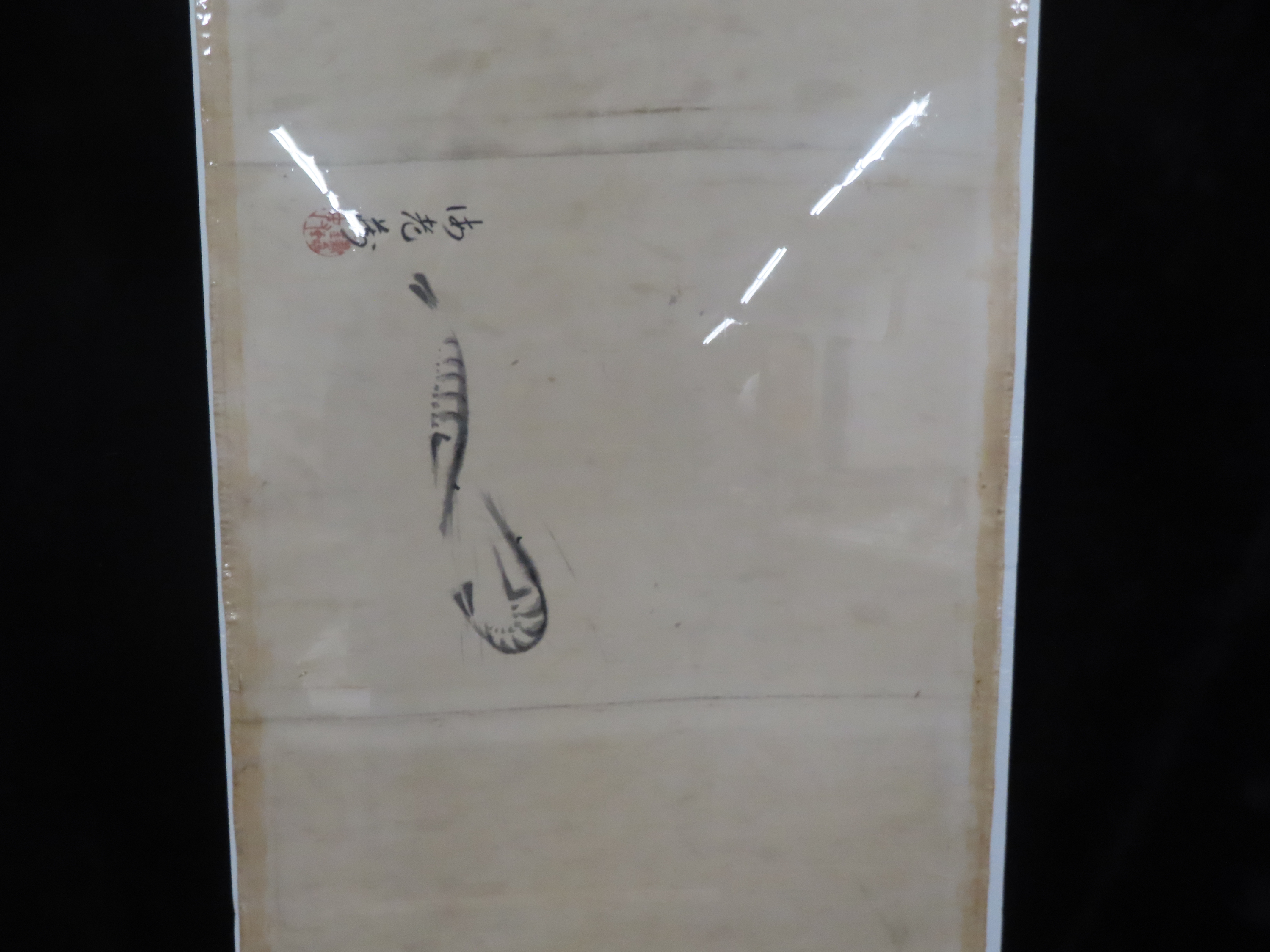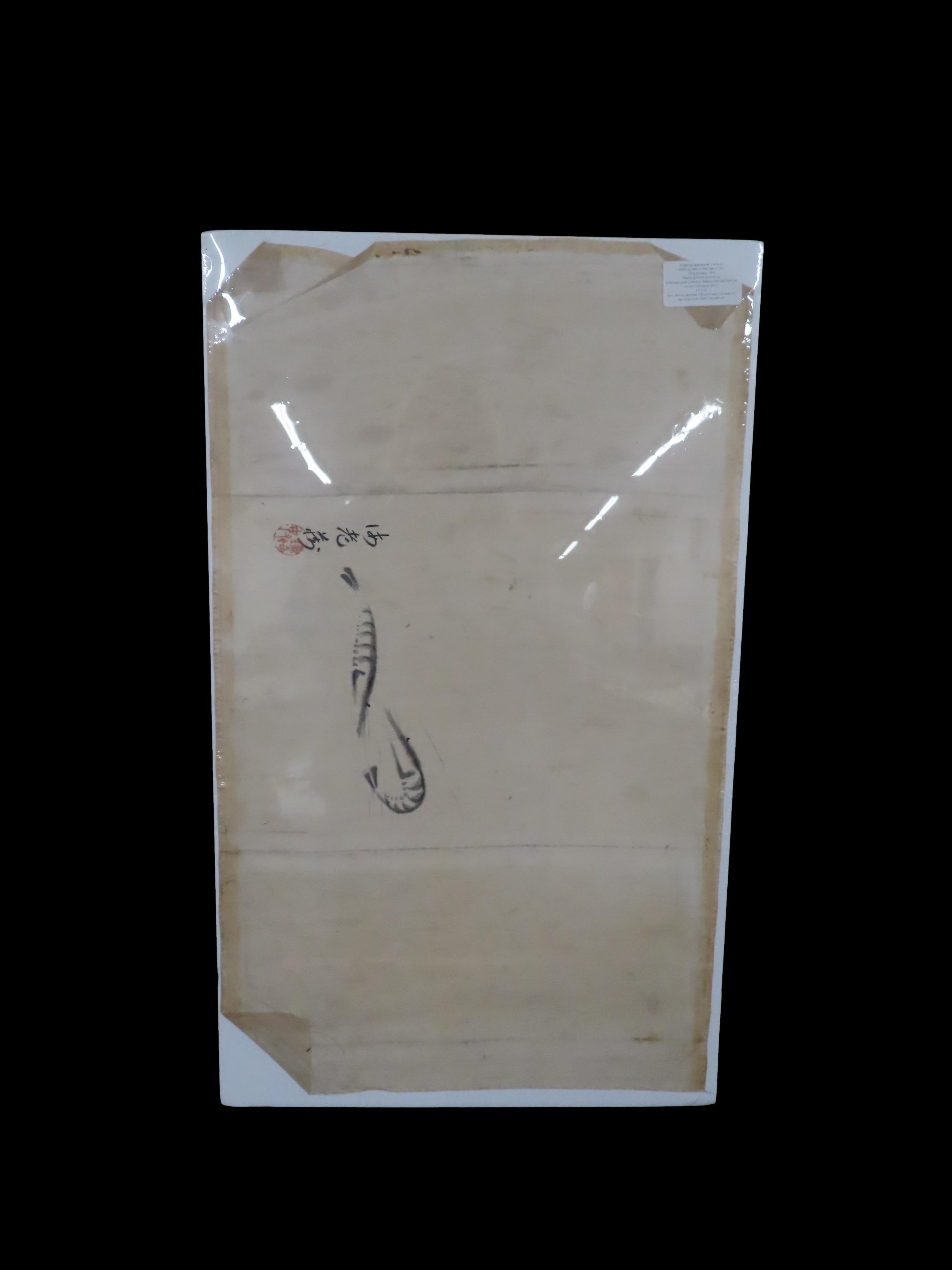 27″ X 16″ Original Japanese Art Depicting Shrimp Swimming, EX Richard Lane Collection, Deacquisitioned from the Honolulu Museum of Art