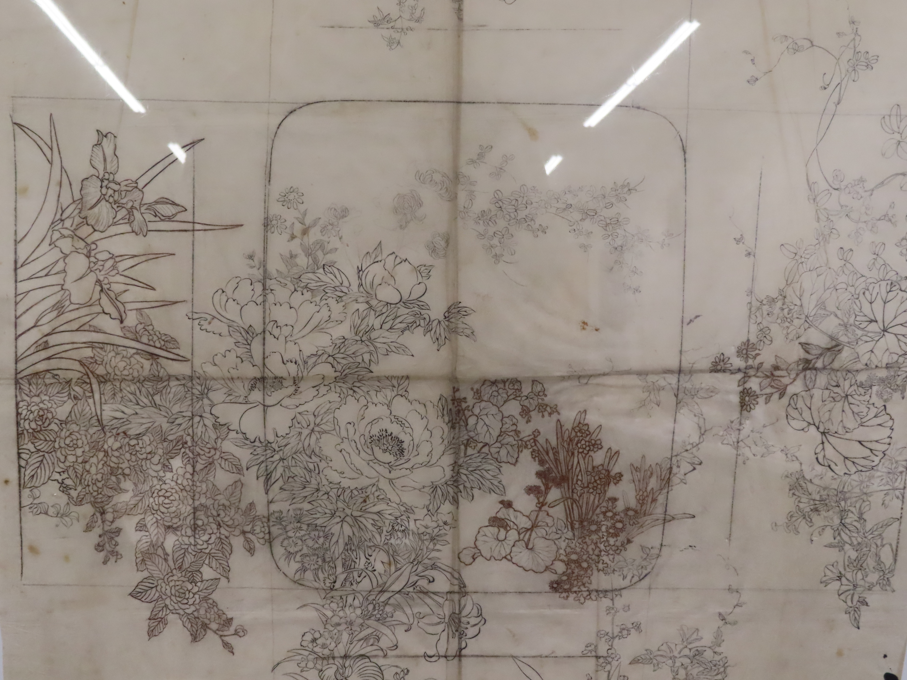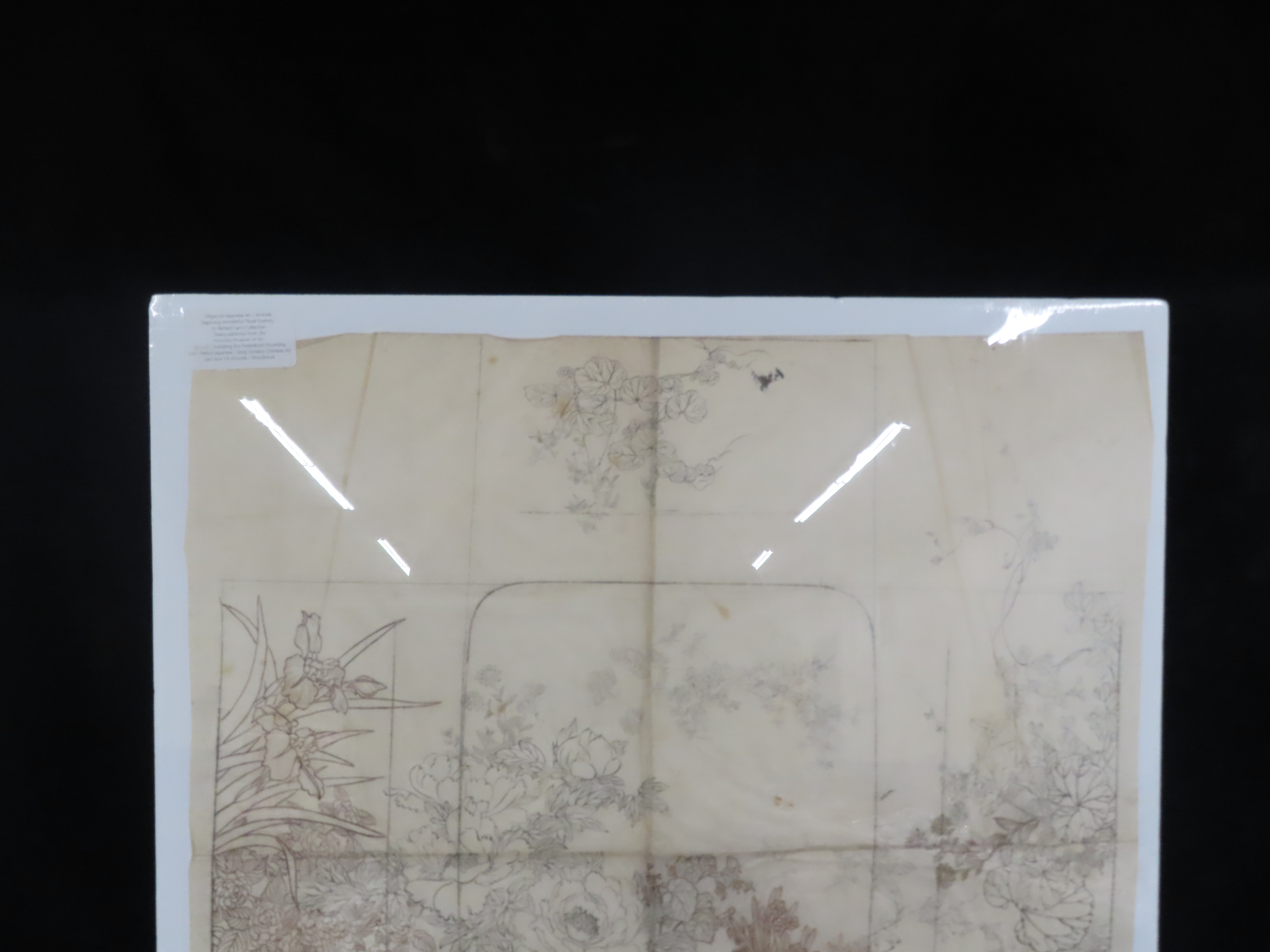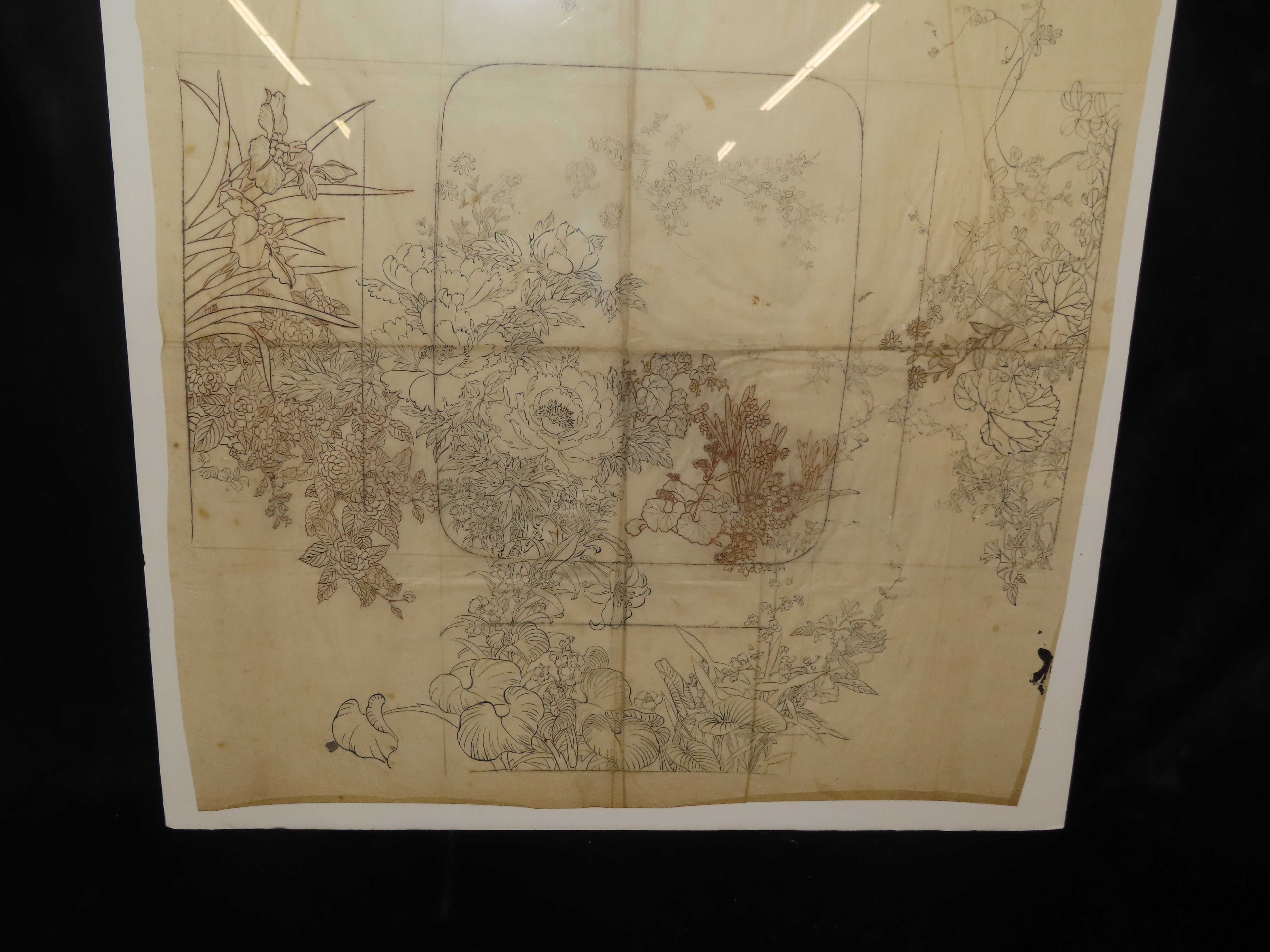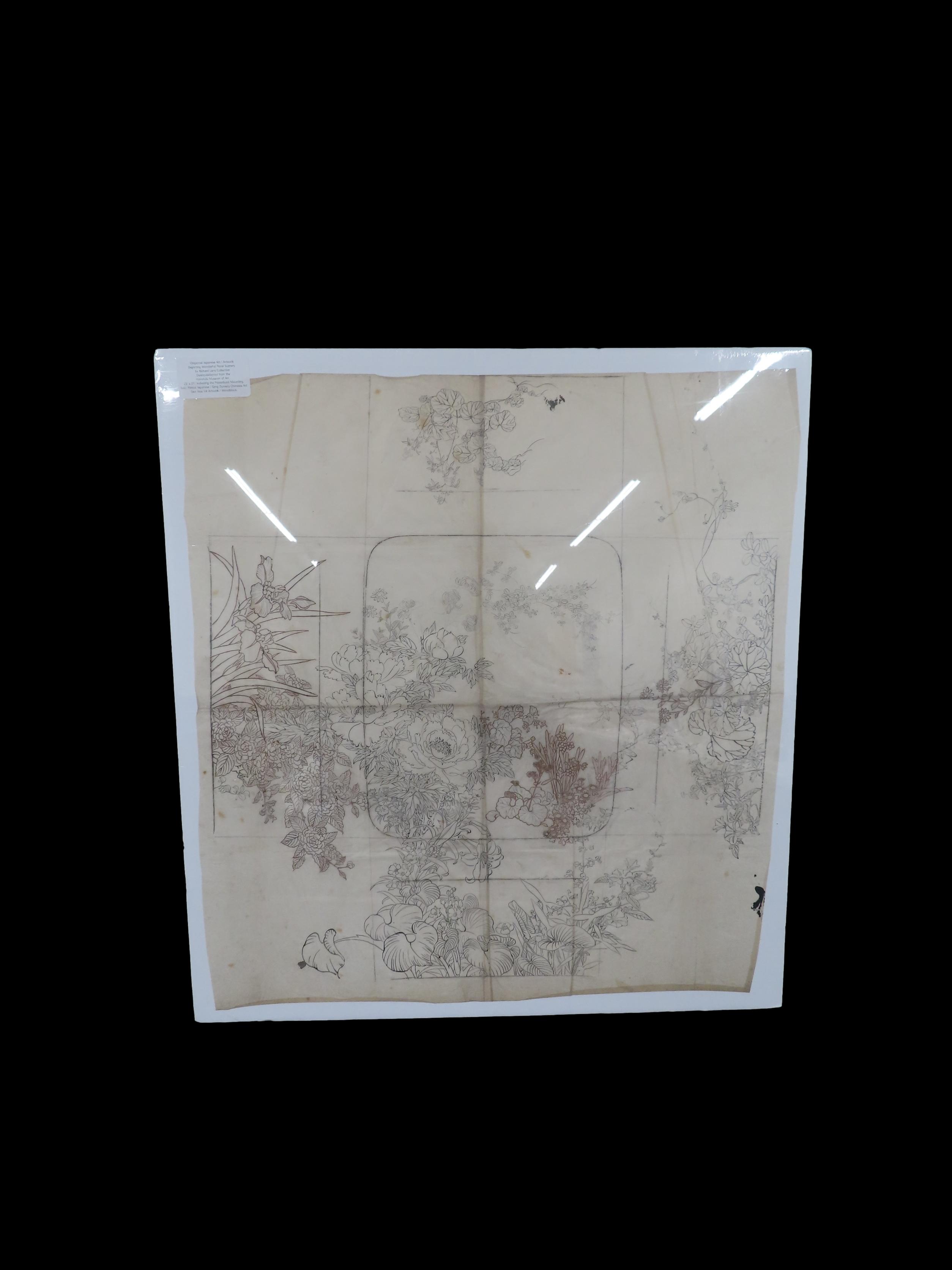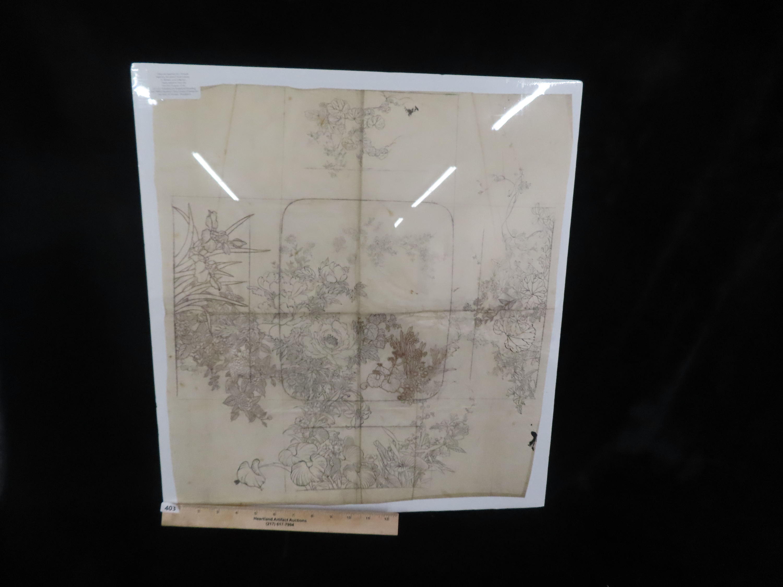 23″ X 21″ Original Japanese Art Depicting Wonderful Floral Scenery, EX Richard Lane Collection, Deacquisitioned from the Honolulu Museum of Art