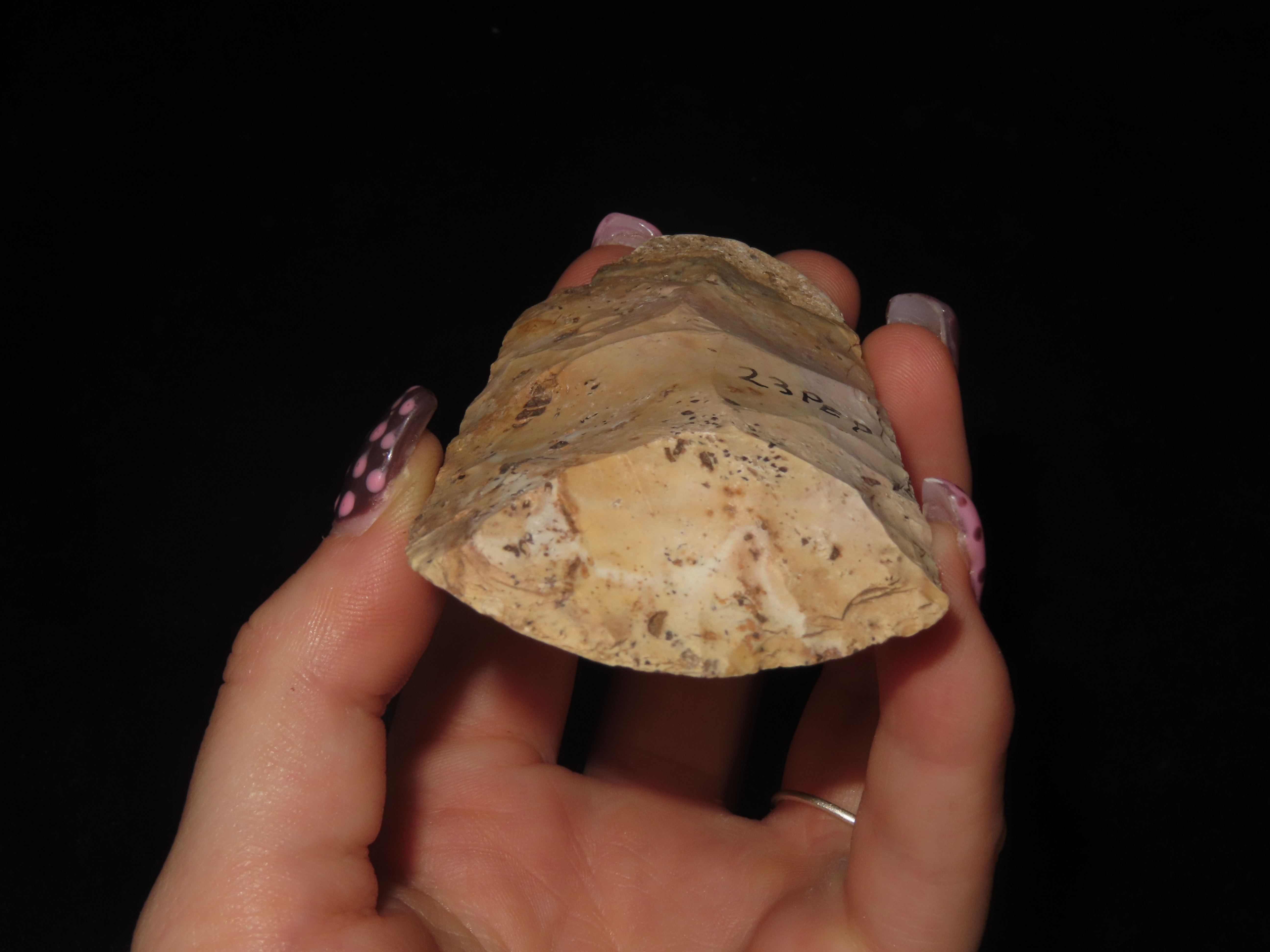 3 1/2″ Clear Fork Gouge, Uniface Colorful Chert, MO