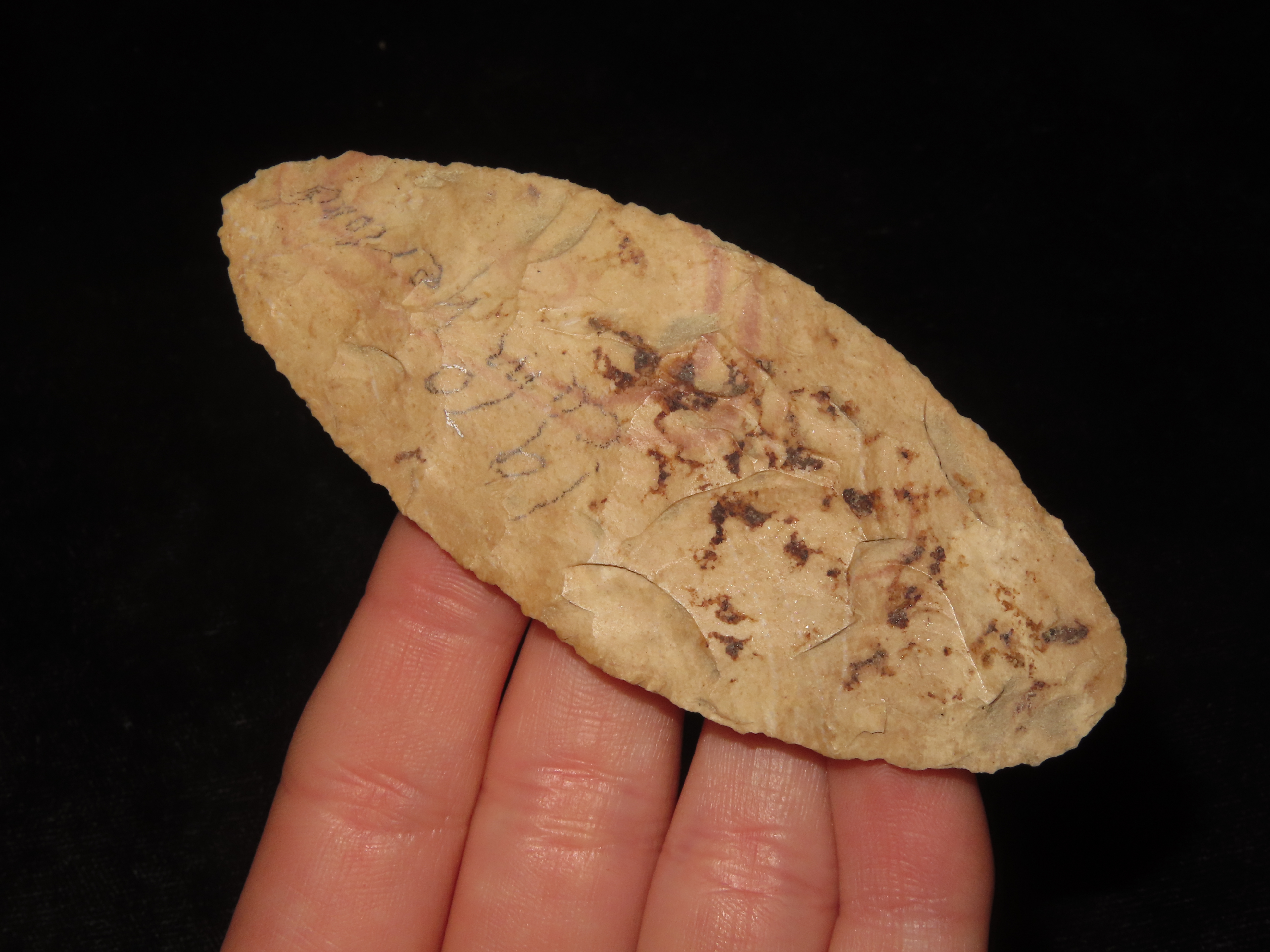 3 7/16″ Early Ovoid Knife, Buffalo River, Found by Al Baggett, Montgomery Co., TN