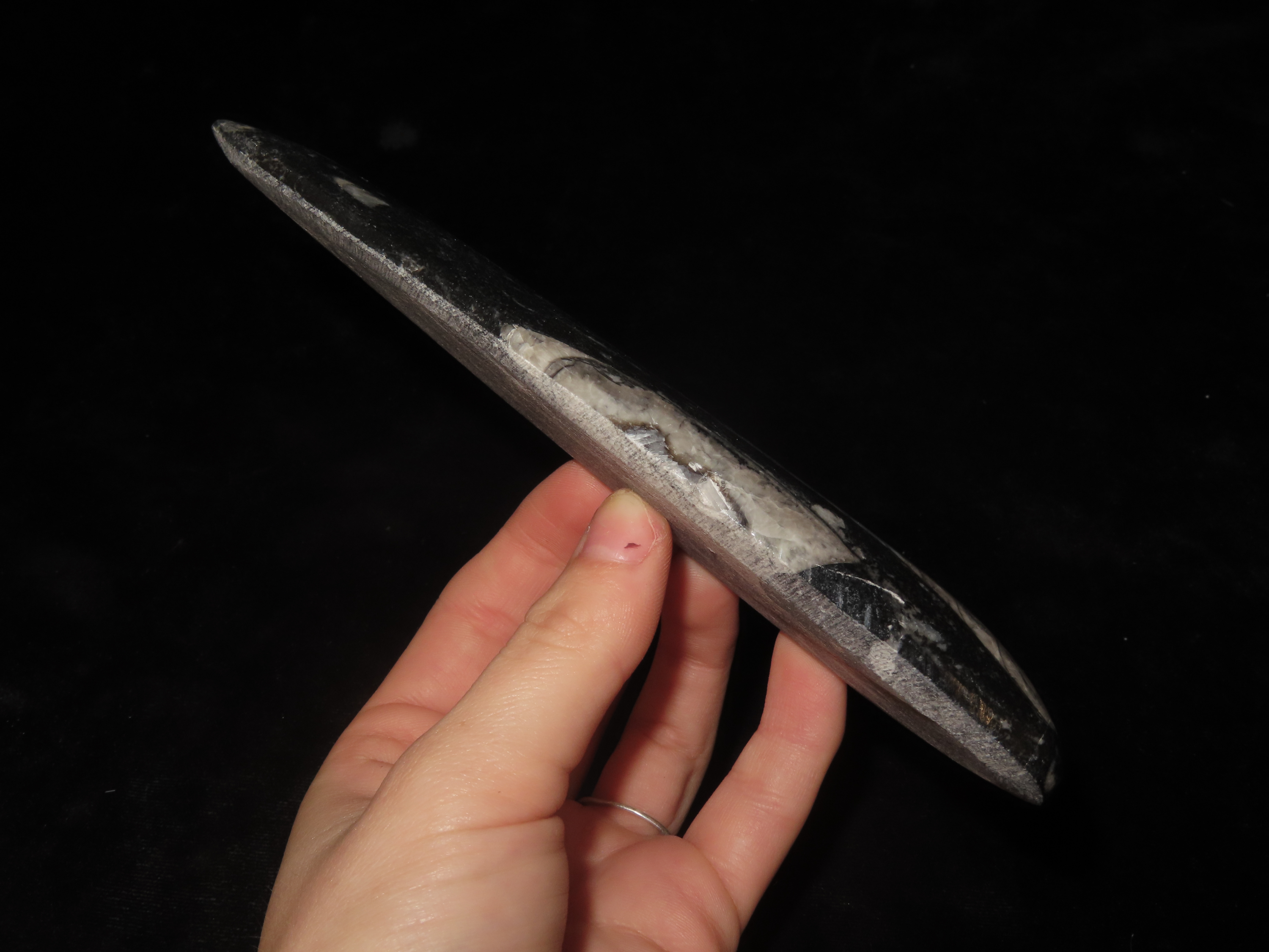 6 5/8″ 400 Million Years Old Polished Orthoceras Fossil, Devonian Period, Atlas Mountains of Morocco